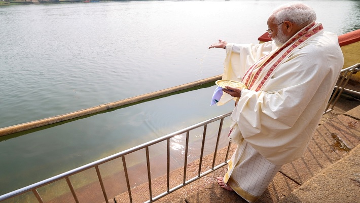 ಸಾಂಪ್ರದಾಯಿಕ ಮುಂಡು (ಪಂಚೆ) ಮತ್ತು ವೇಷ್ಟಿ (ಬಿಳಿ ಶಾಲು)ವಸ್ತ್ರ ತೊಟ್ಟು ಕೃಷ್ಣ ದೇಗುಲಕ್ಕೆ ಆಗಮಿಸಿದ ಪ್ರಧಾನಿ ಮೋದಿ, ಕೃಷ್ಣನಿಗೆ ಪ್ರಾರ್ಥನೆ ಸಲ್ಲಿಸಿ ಅಲ್ಲಿ ನಡೆಯುತ್ತಿದ್ದ ಸಾಮೂಹಿಕ ಮದುವೆ ಕಾರ್ಯಕ್ರಮದಲ್ಲಿ ನವವಧುಗಳಿಗೆ ಅಕ್ಷತೆ ಹಾಕಿ ಹರಸಿದರು.