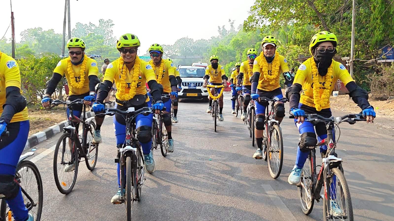 ಸೈಕ್ಲೋಥಾನ್ ತಂಡದಲ್ಲಿದ್ದ ಸಿಐಎಸ್ಎಫ್ ಸಿಬ್ಬಂದಿಯನ್ನು ಗೋಟ್ನೆಭಾಗ್ ಕ್ರಾಸ್ನಲ್ಲಿ ಮೀನುಗಾರ ಮಹಿಳೆಯರು ತಿಲಕವಿಟ್ಟು, ಪುಷ್ಪವೃಷ್ಟಿ ಮಾಡಿ ಸ್ವಾಗತಿಸಿದರು.