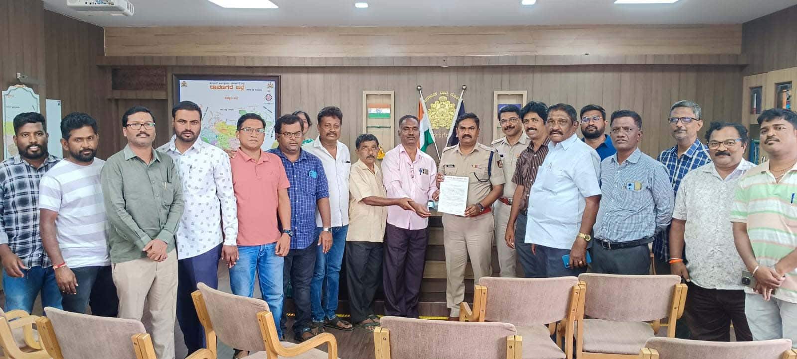 ಮಾಧ್ಯಮ ಪ್ರತಿನಿಧಿಗಳ ಮೇಲೆ ದುರ್ವರ್ತನೆ ತೋರಿದ್ದ ಎಎಸ್ಪಿ ಪರಮೇಶ್ವರ ಹೆಗಡೆ ಅವರ ನಡೆ ಖಂಡಿಸಿ ದಾವಣಗೆರೆಯಲ್ಲಿ ಎಸ್ಪಿ ಎಚ್.ಟಿ.ಶೇಖರ್ ಅವರಿಗೆ ಜಿಲ್ಲಾ ವರದಿಗಾರರ ಕೂಟದಿಂದ ಮನವಿ ಸಲ್ಲಿಸಿದರು.