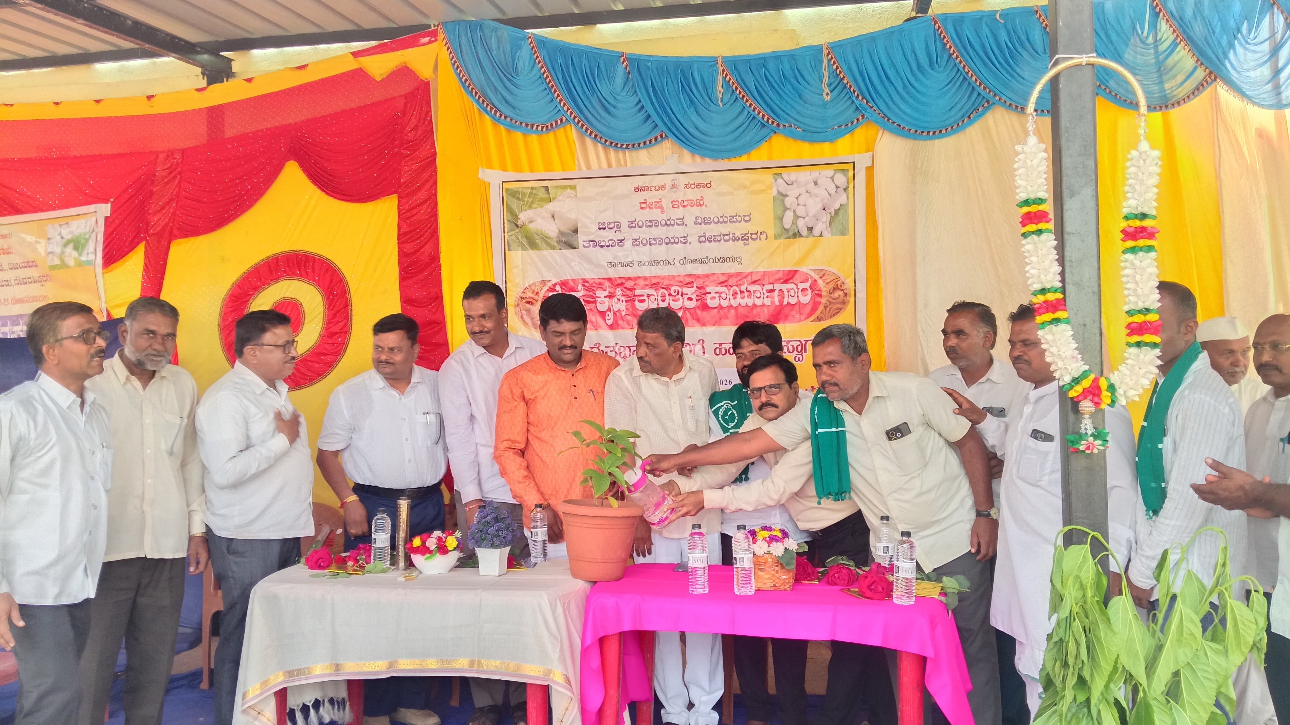 ದೇವರಹಿಪ್ಪರಗಿ ರೇಷ್ಮೆ ಇಲಾಖೆಯ ಪ್ರಭಾರಾಧಿಕಾರಿ ಬಿ.ಬಿ.ಪಾಟೀಲ ಪ್ರಾಸ್ತಾವಿಕವಾಗಿ ಮಾತನಾಡಿ, ಈ ಭಾಗದ ರೈತರಿಗೆ ರೇಷ್ಮೆ ಕೃಷಿಯಲ್ಲಿ ತಂತ್ರಜ್ಞಾನದ ಅರಿವು ಮೂಡಿಸುವ ಸಲುವಾಗಿ ತಂತ್ರಜ್ಞಾನ, ವಸ್ತು ಪ್ರದರ್ಶನಕ್ಕೆ ಇಂದು ಚಾಲನೆ ನೀಡಲಾಗಿದ್ದು, ಇದರ ಸದುಪಯೋಗ ರೈತರು ಪಡೆದುಕೊಳ್ಳಬೇಕು ಎಂದು ಮನವಿ ಮಾಡಿದರು.ಕರ್ನಾಟಕ ರಾಜ್ಯ ರೈತ ಸಂಘದ ಜಿಲ್ಲಾ ಉಪಾಧ್ಯಕ್ಷ ಸಾಹೇಬಗೌಡ ರೆಡ್ಡಿ ಕಾರ್ಯಕ್ರಮದ ಅಧ್ಯಕ್ಷತೆ ವಹಿಸಿದ್ದರು. ಮಲ್ಲಿಕಾರ್ಜುನ ಮಠ ಸಾನ್ನಿಧ್ಯ ವಹಿಸಿದ್ದರು. ಕಾರ್ಯಕ್ರಮದಲ್ಲಿ ಸಿಂದಗಿ ರೇಷ್ಮೆ ವಿಸ್ತೀರ್ಣಾಧಿಕಾರಿಗಳಾದ ಸುರೇಶ ಗೋಲಗೊಂಡ ನಿರೂಪಿಸಿ, ವಂದಿಸಿದರು.ಈ ಸಂದರ್ಭದಲ್ಲಿ ಪಿಕೆಪಿಎಸ್ ಅಧ್ಯಕ್ಷ ಸಂಗನಗೌಡ ಬಿರಾದಾರ, ಕರ್ನಾಟಕ ರಾಜ್ಯ ರೈತ ಸಂಘದ ರಾಜ್ಯ ಸಂಚಾಲಕರಾದ ಸಿದ್ದನಗೌಡ ಪಾಟೀಲ, ತಾಪಂ ಶಾಂತಗೌಡ ನ್ಯಾಮಣ್ಣವರ, ಚಿದಾನಂದ ಪೂಜಾರಿ, ಆರ್.ಬಿ.ಚೌದರಿ,ಶಿವಶರಣ ಅವರಾದಿ, ಸಂಗನಗೌಡ ತೆಗ್ಗಿನಮನಿ, ಅಶೋಕ ಸುಳೇಬಾವಿ ಸೇರಿದಂತೆ ಸುತ್ತಮುತ್ತಲಿನ ಗ್ರಾಮದ ರೈತರು ಭಾಗವಹಿಸಿದ್ದರು.ರೇಷ್ಮೆ ಬೆಳೆ ಹಣದ ಹೊಳೆಯಾಗಿದ್ದು, ರಾಮನಗರಕ್ಕಿಂತಲೂ ನಮ್ಮ ರೇಷ್ಮೆಗೆ ಒಳ್ಳೆ ಬೆಲೆ ಇದೆ. ತಾಂತ್ರಿಕ ಯುಗದಲ್ಲಿ ರೈತರು ತಂತ್ರಜ್ಞಾನ ಬಳಸಿಕೊಂಡು ಕಬ್ಬು, ದ್ರಾಕ್ಷಿ, ರೇಷ್ಮೆ ಸೇರಿದಂತೆ ಹಲವಾರು ಬೆಳೆಗಳು ರೈತರು ಬೆಳೆದು ಸ್ವಾವಲಂಬಿ ಬದುಕು ಕಟ್ಟಿಕೊಂಡಿದ್ದಾರೆ. ಈ ಭಾಗದ ರೈತರು ಕೃಷಿಕ್ಷೇತ್ರದಲ್ಲಿ ಸಾಧನೆಗೈದ ಸಾಧಕರನ್ನು ಕ್ಷೇತ್ರಕ್ಕೆ ಆಹ್ವಾನಿಸುವ ಮೂಲಕ ಕಾರ್ಯಗಾರ ಹಮ್ಮಿಕೊಳ್ಳೋಣ.
