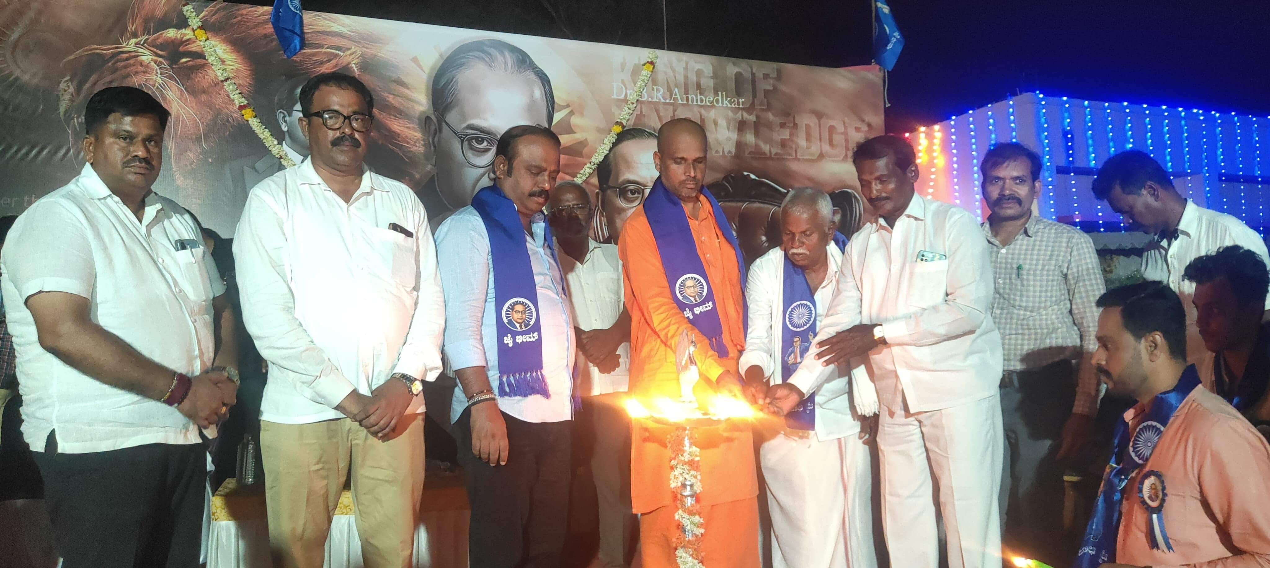 ಬಾಬಾ ಸಾಹೇಬ್ ಡಾ.ಬಿ.ಆರ್.ಅಂಬೇಡ್ಕರ್ ಶೋಷಿತರ ಮತ್ತು ಅಸ್ಪೃಶ್ಯರ ದನಿಯಾಗಿ ಅವರಿಗೆ ಸ್ವಾಭಿಮಾನದ ಬದುಕಿನ ದಾರಿ ತೋರಿದ ಧೀಮಂತ ನಾಯಕರು. ದಮನಿತರ ನಡುವೆ ಸಾಮಾನ್ಯ ವ್ಯಕ್ತಿಯಾಗಿ ಹುಟ್ಟಿ, ತಮ್ಮ ಅಸಾಮಾನ್ಯ ಪ್ರತಿಭೆ, ಅಧ್ಯಯನಶೀಲತೆ ಮತ್ತು ದೂರದೃಷ್ಟಿತ್ವದಿಂದ ಮಹಾನ್ ಶಕ್ತಿಯಾಗಿ ಬೆಳೆದರು ಎಂದರು.ಮೈಸೂರಿನ ಉರಿಲಿಂಗಿಪೆದ್ದಿ ಮಠದ ಪೀಠಾಧ್ಯಕ್ಷ ಶ್ರೀಜ್ಞಾನ ಪ್ರಕಾಶ್ ಸ್ವಾಮೀಜಿ ಮಾತನಾಡಿ, ದೇಶಕ್ಕೆ ಸಂವಿಧಾನ ಮೂಲಕ ಭದ್ರ ಬುನಾದಿ ಹಾಕಿಕೊಟ್ಟ ವಿಶ್ವದ ಜ್ಞಾನಸೂರ್ಯ ಡಾ.ಬಿ.ಆರ್. ಅಂಬೇಡ್ಕರ್ ತೋರಿದ ಮಾರ್ಗದಲ್ಲಿ ಸಾಗಿ, ಉತ್ತಮ ಶಿಕ್ಷಣ ಪಡೆದು ಅನ್ಯಾಯದ ವಿರುದ್ಧ ಹೋರಾಟ ನಡೆಸಿ ವೆಲ್ಲರೂ ಸಂಘಟಿತರಾಗಿ ಜೀವನ ಸಾಗಿಸೋಣ ಎಂದರು.
