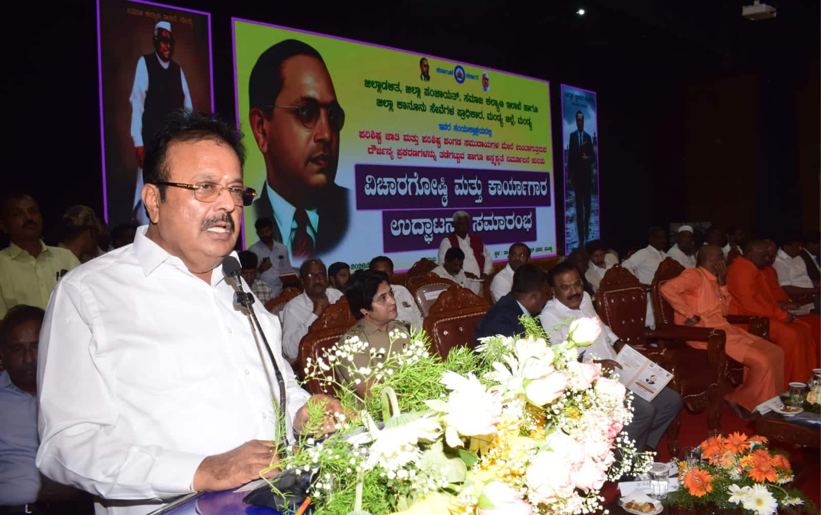 ವೇದಿಕೆಯಲ್ಲಿ ಮಂಡ್ಯ ಕ್ಷೇತ್ರದ ಶಾಸಕ ಎಂ.ರವಿಕುಮಾರ್, ಶ್ರೀ ಆದಿಚುಂಚನಗಿರಿ ಮಹಾಸಂಸ್ಥಾನ ಮಠದ ಶ್ರೀ ಸತ್ಯಕೀರ್ತಿ ಮಹಾಸ್ವಾಮೀಜಿ, ಚಿತ್ರದುರ್ಗದ ಶ್ರೀ ಶಿವಶರಣ ಮಾದರಚನ್ನಯ್ಯ ಸ್ವಾಮೀಜಿ, ಕಲಬುರಗಿಯ ಕೋಡ್ಲಾ ಶ್ರೀ ಉರಿಲಿಂಗ ಪೆದ್ದೀಶ್ವರ ಮಹಾಸಂಸ್ಥಾನ ಮಠದ ಶ್ರೀ ಜ್ಞಾನ ಪ್ರಕಾಶ ಸ್ವಾಮೀಜಿ ದಿವ್ಯ ಸಾನ್ನಿಧ್ಯ ವಹಿಸಿದರು.ಜಿಲ್ಲಾ ಪೊಲೀಸ್ ವರಿಷ್ಠಾಧಿಕಾರಿ ಡಾ.ವಿ.ಜೆ.ಶೋಭಾರಾಣಿ, ಜಿಲ್ಲಾ ಕಾನೂನು ಸೇವೆಗಳ ಪ್ರಾಧಿಕಾರದ ಸದಸ್ಯ ಕಾರ್ಯದರ್ಶಿ ಎಂ. ಆನಂದ್, ಮೈಷುಗರ್ ಅಧ್ಯಕ್ಷ ಸಿ.ಡಿ.ಗಂಗಾಧರ್, ಮುಡಾ ಅಧ್ಯಕ್ಷ ಬಿ.ಪಿ.ಪ್ರಕಾಶ್, ರಾಜ್ಯ ಸಣ್ಣ ಕೈಗಾರಿಕೆಗಳ ಅಭಿವೃದ್ಧಿ ನಿಗಮದ ಉಪಾಧ್ಯಕ್ಷೆ ವಿಜಯಲಕ್ಷ್ಮೀ ರಘುನಂದನ್ ಹಾಗೂ ಜಿಲ್ಲಾ ಮಟ್ಟದ ಅಧಿಕಾರಿಗಳು ಉಪಸ್ಥಿತರಿದ್ದರು.