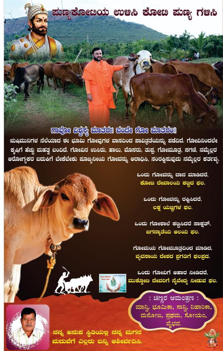 ಗೋ ಮಾತೆ ಕುರಿತು ಜನರಿಗೆ ಮತ್ತಷ್ಟು ಮಾಹಿತಿ ನೀಡುವ ನಿಟ್ಟಿನಲ್ಲಿ ಇಲ್ಲೊಂದು ಕುಟುಂಬ ಮದುವೆ ಆಮಂತ್ರಣ ಪತ್ರಿಕೆಯಲ್ಲಿ ಮಾಹಿತಿ ಮುದ್ರಿಸುವ ಮೂಲಕ ಗಮನಸೆಳೆದಿದೆ.