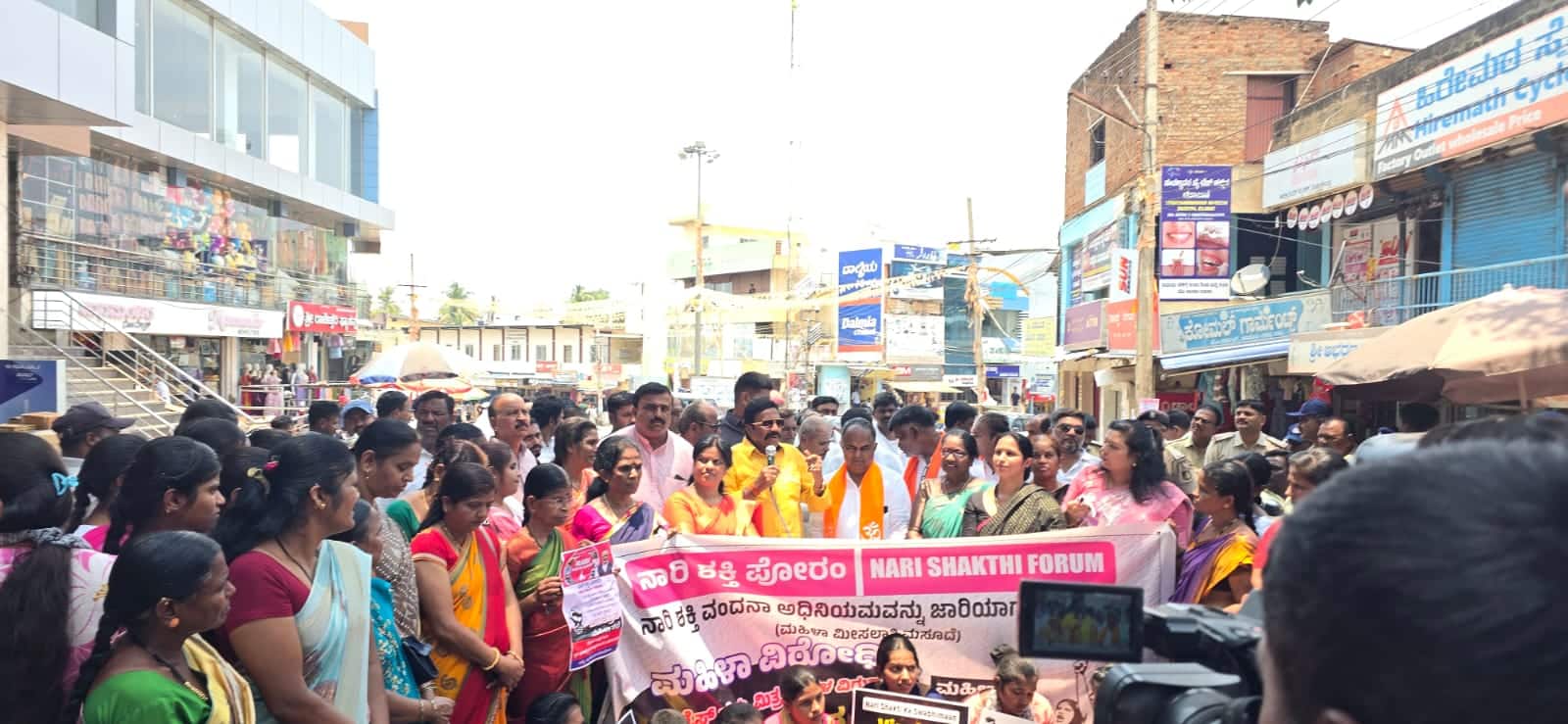 ನಗರದ ಪುರಸಿದ್ದೇಶ್ವರ ದೇವಸ್ಥಾನದಿಂದ ಪ್ರತಿಭಟನಾ ಪಾದಯಾತ್ರೆ ನಡೆಸಿದ ಬಿಜೆಪಿ ಮಹಿಳಾ ಕಾರ್ಯಕರ್ತೆಯರು ಜೆ.ಪಿ. ವೃತ್ತದವರೆಗೆ ಸಂಚರಿಸಿ ಸಮಾವೇಶಗೊಂಡರು. ಈ ವೇಳೆ ರಾಜ್ಯ ಕಾಂಗ್ರೆಸ್ ಸರ್ಕಾರದ ಮಹಿಳಾ ವಿರೋಧಿ ಧೋರಣೆ ಹಾಗೂ ಕೇಂದ್ರದಲ್ಲಿ ಕಾಂಗ್ರೆಸ್ ಮತ್ತು ಇಂಡಿಯಾ ಒಕ್ಕೂಟದ ಬೆಂಬಲಿತ ಪಕ್ಷಗಳ ವಿರುದ್ದ ಘೋಷಣೆ ಕೂಗಿ ಆಕ್ರೋಶ ವ್ಯಕ್ತಪಡಿಸಿದರು. ಬಿಜೆಪಿ ಜಿಲ್ಲಾಧ್ಯಕ್ಷರು, ಮಾಜಿ ಸಚಿವರು, ಮಾಜಿ ಶಾಸಕರು ಸೇರಿದಂತೆ ವಿವಿಧ ಮೋರ್ಚಾಗಳ ಮುಖಂಡರು ನಾರಿಶಕ್ತಿ ಪೋರಂ ಹೋರಾಟಕ್ಕೆ ಬೆಂಬಲ ಸೂಚಿಸಿದರು. ಈ ವೇಳೆ ಮಾಜಿ ಸಚಿವ ಬಿ.ಸಿ. ಪಾಟೀಲ ಮಾತನಾಡಿ, ಕೇಂದ್ರ ಸರ್ಕಾರ ರಾಜಕಾರಣದಲ್ಲಿ ಮಹಿಳಾ ಮೀಸಲಾತಿ ಅಂಗೀಕಾರ ಮಾಡಲು ಹೊರಟರೆ ಕಾಂಗ್ರೆಸ್ ಸೇರಿದಂತೆ ಇಂಡಿ ಕೂಟವು ವಿರೋಧ ವ್ಯಕ್ತಪಡಿಸುವ ಮೂಲಕ ದೇಶದ ಮಹಿಳೆಯರಿಗೆ ಮಹಾಮೋಸ ಮಾಡಿವೆ. ಇಂಡಿಯಾ ಒಕ್ಕೂಟವು ಕ್ರೆಡಿಟ್ಗೋಸ್ಕರ ಮೀಸಲು ಅಂಗೀಕಾರ ಮಾಡಿಸಲಿಲ್ಲ. ಗೃಹಲಕ್ಷ್ಮಿ ಕೊಟ್ಟ ತಕ್ಷಣ ಮಹಿಳೆಯರು ಮುಂದೆ ಬರಲ್ಲ. ಸಾಮಾಜಿಕ, ಶೈಕ್ಷಣಿಕ, ರಾಜಕೀಯವಾಗಿ ಮಹಿಳೆಯರಿಗೆ ಶಕ್ತಿ ಕೊಡಬೇಕೆಂದು ಆಗ್ರಹಿಸಿದರು.ಕಾಂಗ್ರೆಸ್ನವರು ಮಹಿಳಾ ವಿರೋಧಿ ಧೋರಣೆ ಅನುಸರಿಸುತ್ತಾರೆ. ಮಹಿಳೆಯರ ಹಕ್ಕುಗಳನ್ನು ಕಸಿಯುವ ಯತ್ನ ಮಾಡುತ್ತಿದ್ದಾರೆ. ರಾಜ್ಯ ಕಾಂಗ್ರೆಸ್ ಸರ್ಕಾರಕ್ಕೆ ಮಹಿಳೆಯರ ಹಕ್ಕು ಕೊಡುವಲ್ಲಿ ಆಸಕ್ತಿ ಇಲ್ಲ. ಹಾಗಾಗಿ ದೇಶದ ಪ್ರಧಾನಿ ಏನೇ ಒಳ್ಳೆಯ ಕೆಲಸ ಮಾಡಿದರೂ ವಿರೋಧ ಮಾಡುವುದೇ ತಮ್ಮ ಪ್ರವೃತ್ತಿಯನ್ನಾಗಿ ಮಾಡಿಕೊಂಡಿದ್ದಾರೆ. ಮೋದಿಯವರು ಮಹಿಳಾ ಸ್ವಾತಂತ್ರ್ಯ ರಕ್ಷಣೆ ಮಾಡುತ್ತಿದ್ದಾರೆ. ಮುಂದೊಂದು ದಿನ ಮಹಿಳಾ ಮೀಸಲಾತಿ ಜಾರಿಗೆ ಮಾಡಿಯೇ ಮಾಡುತ್ತಾರೆ ಎಂದರು.ರಾಜ್ಯ ಮಹಿಳಾ ಮೋರ್ಚಾ ಪ್ರಧಾನ ಕಾರ್ಯದರ್ಶಿ ಶೋಭಾ ನಿಸ್ಸೀಮಗೌಡ್ರ ಮಾತನಾಡಿ, ಭಾರತದಲ್ಲಿ ಮಹಿಳೆಯರಿಗೆ ಪೂಜ್ಯನೀಯ ಸ್ಥಾನಮಾನ ಕೊಡಲಾಗಿದೆ. ಅಂತಹ ಮಹಿಳೆಯರಿಗೆ ರಾಜಕಾರಣದಲ್ಲಿ ಅವಕಾಶ ನೀಡಬೇಕಾದರೆ, ದುಷ್ಟ ಕಾಂಗ್ರೆಸ್ ಒಕ್ಕೂಟದವರು ವಿರೋಧ ಮಾಡುತ್ತಿದ್ದಾರೆ. ಕರ್ನಾಟಕ ಸೇರಿ ದೇಶದ ಮಹಿಳೆಯರಿಗೆ ಅನ್ಯಾಯ ಮಾಡಿದ್ದಾರೆ. ಕೇವಲ ಮಹಿಳೆಯರ ವೋಟ್ ಬ್ಯಾಂಕಿಗೋಸ್ಕರ ಗ್ಯಾರಂಟಿ ಕೊಟ್ಟು, ಸುಮ್ಮನೆ ಕೂರಿಸಿದ್ದಾರೆ. ಇಂತಹ ಕಾಂಗ್ರೆಸ್ನವರ ಮನಸ್ಥಿತಿಯನ್ನು ಖಂಡಿಸುತ್ತೇವೆ. ರಾಜಕಾರಣದಲ್ಲಿ ಬೆಳೆಯಲಿಕ್ಕೆ ಅವಕಾಶ ನೀಡದಿರುವುದನ್ನು ಖಂಡಿಸುತ್ತೇವೆ ಎಂದರು.ಪ್ರತಿಭಟನೆಯಲ್ಲಿ ಮಾಜಿ ಶಾಸಕ ಶಿವರಾಜ ಸಜ್ಜನರ, ಮುಖಂಡ ಗವಿಸಿದ್ದಪ್ಪ ದ್ಯಾಮಣ್ಣವರ, ಮಹಿಳಾ ಮೋರ್ಚಾ ಜಿಲ್ಲಾಧ್ಯಕ್ಷೆ ಬಸಮ್ಮ ಅಬಲೂರ, ಯಲ್ಲಮ್ಮ ಚಲವಾದಿ, ರೇಷ್ಮಾ ಮೇಲಗಿರಿ ಮಾತನಾಡಿದರು.ಈ ವೇಳೆ ಪಕ್ಷದ ಜಿಲ್ಲಾಧ್ಯಕ್ಷ ವಿರೂಪಾಕ್ಷಪ್ಪ ಬಳ್ಳಾರಿ, ಜಿಲ್ಲಾ ಪ್ರಧಾನ ಕಾರ್ಯದರ್ಶಿಗಳಾದ ನಂಜುಂಡೇಶ ಕಳ್ಳೇರ, ಸಂತೋಷ ಆಲದಕಟ್ಟಿ, ನೀಲಪ್ಪ ಚಾವಡಿ, ಮಹಿಳಾ ಮೋರ್ಚಾ ಪ್ರಧಾನ ಕಾರ್ಯದರ್ಶಿ ವಿದ್ಯಾ ಶೆಟ್ಟಿ, ಜಿಲ್ಲಾ ಉಪಾಧ್ಯಕ್ಷ ವೆಂಕಟೇಶ ನಾರಾಯಣಿ, ಯುವ ಮೋರ್ಚಾ ಅಧ್ಯಕ್ಷ ಕಿರಣ ಕೋಣನವರ, ವಕ್ತಾರ ನಿರಂಜನ ಹೆರೂರ, ವಿಜಯಕುಮಾರ ಚಿನ್ನಿಕಟ್ಟಿ, ಕಿರಣ ಕೊಳ್ಳಿ, ರೋಹಿಣಿ ಪಾಟೀಲ ಸೇರಿದಂತೆ ಪಕ್ಷದ ವಿವಿಧ ಮೋರ್ಚಾಗಳ ಕಾರ್ಯಕರ್ತರು, ಪದಾಧಿಕಾರಿಗಳು ಪಾಲ್ಗೊಂಡಿದ್ದರು.ದೇಶದ ಪ್ರಧಾನಿ ನರೇಂದ್ರ ಮೋದಿಯವರು ವಿಶೇಷ ಅಧಿವೇಶನ ನಡೆಸುವ ಮೂಲಕ ಮಹಿಳೆಯರಿಗೆ ಶೇ. 33ರಷ್ಟು ಮೀಸಲಾತಿ ಅನುಷ್ಠಾನಗೊಳಿಸಲು ಮುಂ