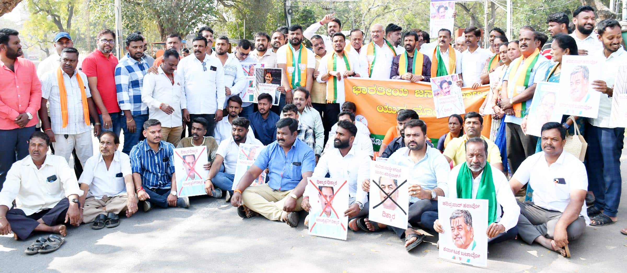 ದಲಿತ ರಾಜ್ಯಪಾಲರನ್ನು ಅವಮಾನಿಸಿದ ರಾಜ್ಯ ಸರ್ಕಾರಕ್ಕೆ ಧಿಕ್ಕಾರ, ದಲಿತ ವಿರೋಧಿ ಕಾಂಗ್ರೆಸ್ ಗೆ ಧಿಕ್ಕಾರ, ರೌಡಿ ಕೊತ್ವಾಲ್ ಶಿಷ್ಯ ಹರಿಪ್ರಸಾದ್ ಗೆ ಧಿಕ್ಕಾರ, ಕಾಂಗ್ರೆಸ್ ಗೂಂಡಾಗಳಿಗೆ ಧಿಕ್ಕಾರ, ಹರಿಪ್ರಸಾದ್ ಹಠಾವೋ ಕರ್ನಾಟಕ ಬಚಾವೋ ಸೇರಿದಂತೆ ವಿವಿಧ ಘೋಷಣೆಗಳನ್ನು ಕೂಗಿ ಅವರು ಆಕ್ರೋಶ ವ್ಯಕ್ತಪಡಿಸಿದರು.