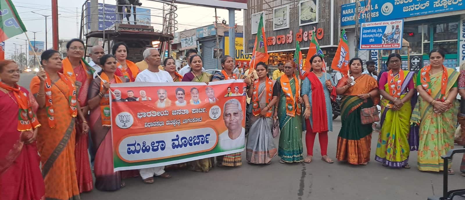 ನಗರದ ಬಸವೇಶ್ವರ ವೃತ್ತದಲ್ಲಿ ಶನಿವಾರ ಸಂಜೆ ಭಾರತೀಯ ಜನತಾ ಪಾರ್ಟಿ ಬಾಗಲಕೋಟೆ ಮತಕ್ಷೇತ್ರದ ಮಹಿಳಾ ಮೋರ್ಚಾ ಹಮ್ಮಿಕೊಂಡ ನಾರಿ ಶಕ್ತಿ ವಂದನಾ ಅಧಿನಿಯಮ ಸೋಲಿಗೆ ಕಾರಣವಾದ ಕಾಂಗ್ರೆಸ್ ವಿರುದ್ಧ ನಡೆದ ಪ್ರತಿಭಟನೆಯಲ್ಲಿ ಭಾಗವಹಿಸಿ ಮಾತನಾಡಿದರು.