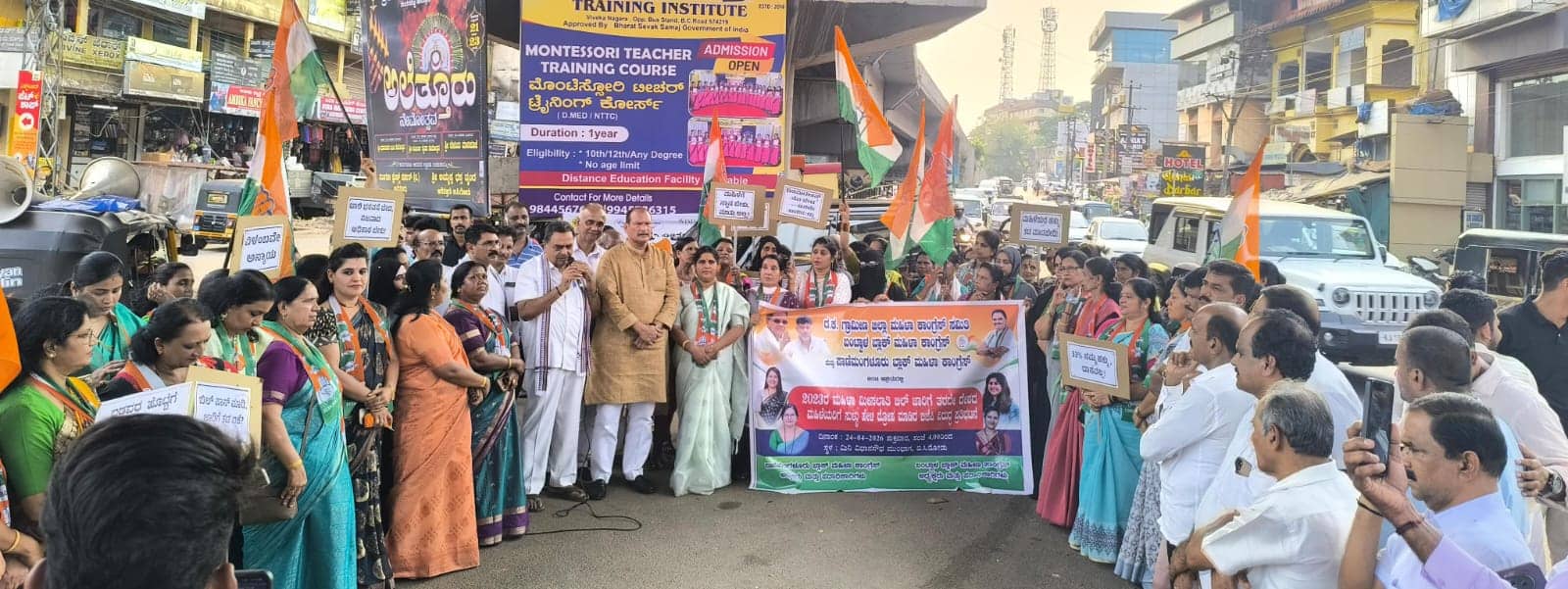 ಬಿ.ಸಿ.ರೋಡ್ ನಲ್ಲಿ ದಕ್ಷಿಣ ಕನ್ನಡ ಜಿಲ್ಲಾ ಮಹಿಳಾ ಕಾಂಗ್ರೆಸ್ ಸಮಿತಿ, ಬಂಟ್ವಾಳ ಬ್ಲಾಕ್ ಮಹಿಳಾ ಕಾಂಗ್ರೆಸ್ ಮತ್ತು ಪಾಣೆಮಂಗಳೂರು ಬ್ಲಾಕ್ ಮಹಿಳಾ ಕಾಂಗ್ರೆಸ್ ವತಿಯಿಂದ ಪ್ರತಿಭಟನೆ ನಡೆಯಿತು.