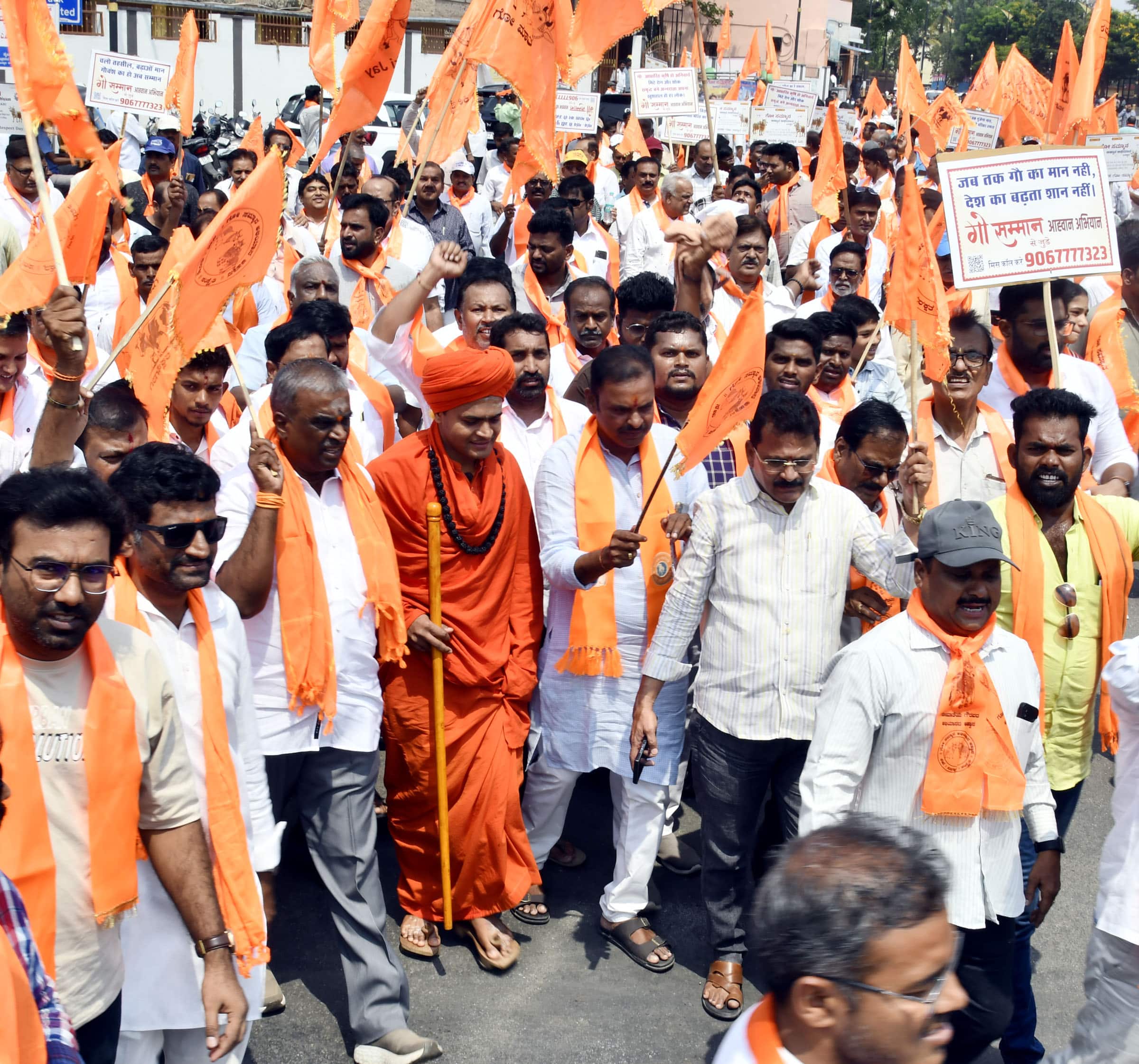 ಮಾಜಿ ಶಾಸಕ ಜಿ.ಸೋಮಶೇಖರ ರೆಡ್ಡಿ, ಬಿಜೆಪಿ ಜಿಲ್ಲಾಧ್ಯಕ್ಷ ಅನಿಲ್ ಕುಮಾರ್ ಮೋಕಾ, ಎಚ್.ಹನುಮಂತಪ್ಪ, ಕೆ.ಎಸ್. ದಿವಾಕರ್, ಶ್ರೇಷ್ಠ ಇಂಟರ್ನ್ಯಾಷನಲ್ ಸ್ಕೂಲ್ ನ ಸ್ಥಾಪಕ ಬ್ರಹ್ಮಯ್ಯ ನಾಯ್ಡು, ಬಳ್ಳಾರಿಯ ಶೃಂಗೇರಿ ಶಾರದಾ ಮಠದ ಧರ್ಮದರ್ಶಿ ಬಿಕೆಬಿಎನ್ ಮೂರ್ತಿ, ಸೂರಜ್ ಮಾಲ್ ಅತಿಥಿಗಳಾಗಿ ಭಾಗವಹಿಸಿದ್ದರು. ಶರಣು, ಕಣೇಕಲ್ ಎರಿಸ್ವಾಮಿ ಹಾಗೂ ಮಹೇಶಗೌಡ ಕಾರ್ಯಕ್ರಮ ನಿರ್ವಹಿಸಿದರು. ಬಳಿಕ ಜರುಗಿದ ಮೆರವಣಿಗೆಗೆ ಸೋಮಸಮುದ್ರದ ಕೊಟ್ಟೂರುಸ್ವಾಮಿ ಮಠದ ಸಿದ್ಧಲಿಂಗಯ್ಯ ಸ್ವಾಮೀಜಿ ಗೋಪೂಜೆ ಮಾಡುವ ಮೂಲಕ ಚಾಲನೆ ನೀಡಿದರು. ನಗರದ ಪ್ರಮುಖ ಬೀದಿಗಳ ಮೂಲಕ ಹೊರಟ ಮೆರವಣಿಗೆಯಲ್ಲಿ ಬಿಜೆಪಿಯ ನೂರಾರು ಕಾರ್ಯಕರ್ತರು ಹಾಗೂ ಗೋ ಸಂರಕ್ಷಣಾ ಸಮಿತಿಯ ಸದಸ್ಯರು ಭಾಗವಹಿಸಿದ್ದರು.
