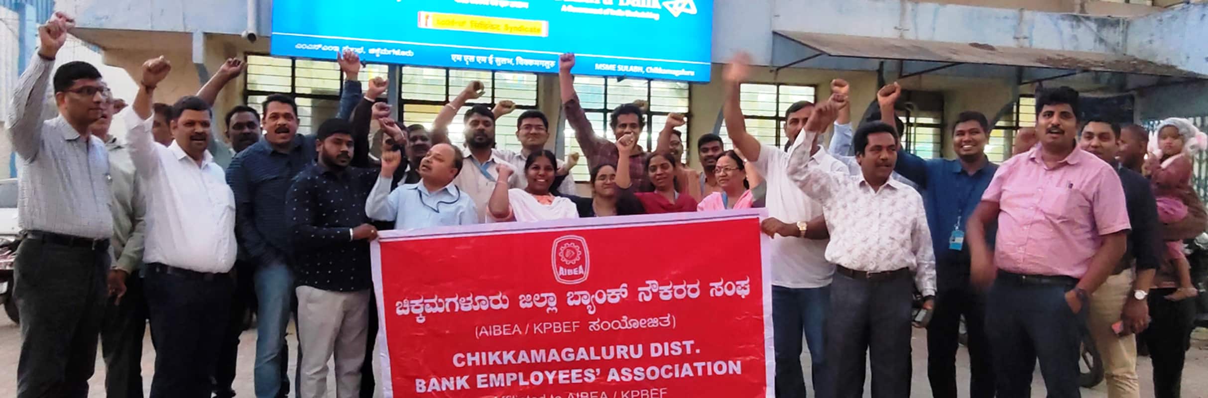 ಚಿಕ್ಕಮಗಳೂರು: ರಾಷ್ಟ್ರೀಕೃತ ಹಾಗೂ ಖಾಸಗಿ ಬ್ಯಾಂಕ್ ನೌಕರರಿಗೆ ವಾರದಲ್ಲಿ ಐದು ದಿನ ಮಾತ್ರ ಕೆಲಸ ನಿರ್ವಹಿಸಿಕೊಂಡು ಉಳಿದ ಎರಡು ದಿನಗಳು ರಜೆ ನೀಡಬೇಕು ಎಂದು ಆಗ್ರಹಿಸಿ ಜಿಲ್ಲಾ ಬ್ಯಾಂಕ್ ನೌಕರರ ಸಂಘದ ಮುಖಂಡರುಗಳು ನಗರದ ಕೆನರಾ ಬ್ಯಾಂಕ್ ಮುಖ್ಯ ಕಚೇರಿ ಆವರಣದಲ್ಲಿ ಶುಕ್ರವಾರ ಸಾಂಕೇತಿಕವಾಗಿ ಪ್ರತಿಭಟನೆ ನಡೆಸಿದರು.
