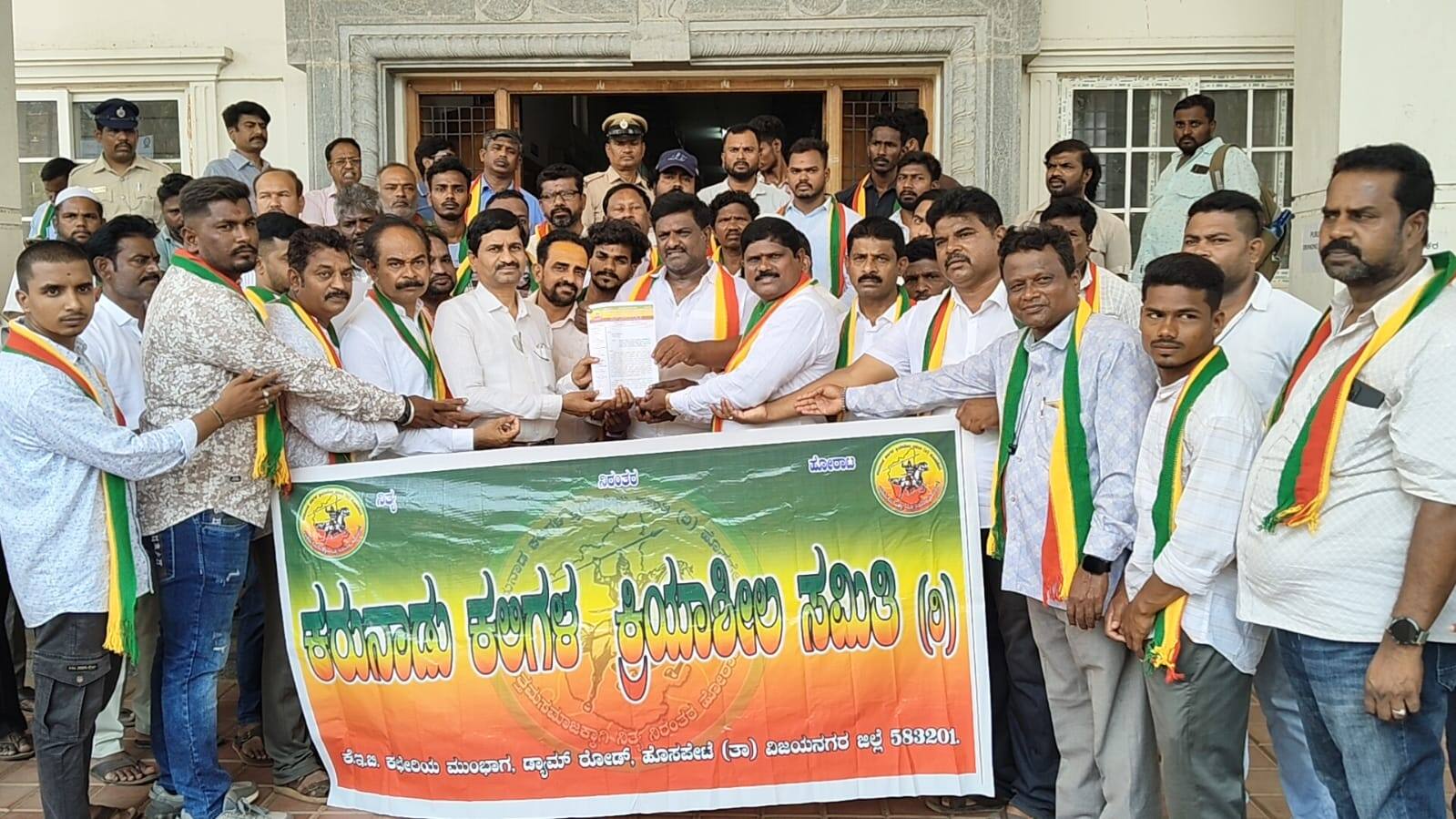 ಹೊಸಪೇಟೆ: ರಾಷ್ಟ್ರೀಯ ಹೆದ್ದಾರಿ 50ರಲ್ಲಿ ಸತತವಾಗಿ ಸಂಭವಿಸುತ್ತಿರುವ ಅಪಘಾತಗಳನ್ನು ತಡೆಗಟ್ಟಲು ಅಗತ್ಯ ಕ್ರಮ ಕೈಗೊಳ್ಳಬೇಕು. ಕುಂಟುತ್ತ ಸಾಗಿರುವ ಹೆದ್ದಾರಿ ಕಾಮಗಾರಿಯನ್ನು ತ್ವರಿತವಾಗಿ ಪೂರ್ಣಗೊಳಿಸಬೇಕು ಎಂದು ಒತ್ತಾಯಿಸಿ ಕರುನಾಡ ಕಲಿಗಳ ಕ್ರಿಯಾಶೀಲ ಸಮಿತಿ ಸದಸ್ಯರು ಸೋಮವಾರ ಜಿಲ್ಲಾಧಿಕಾರಿ ಕಚೇರಿ ಎದುರು ಪ್ರತಿಭಟನೆ ನಡೆಸಿದರು.