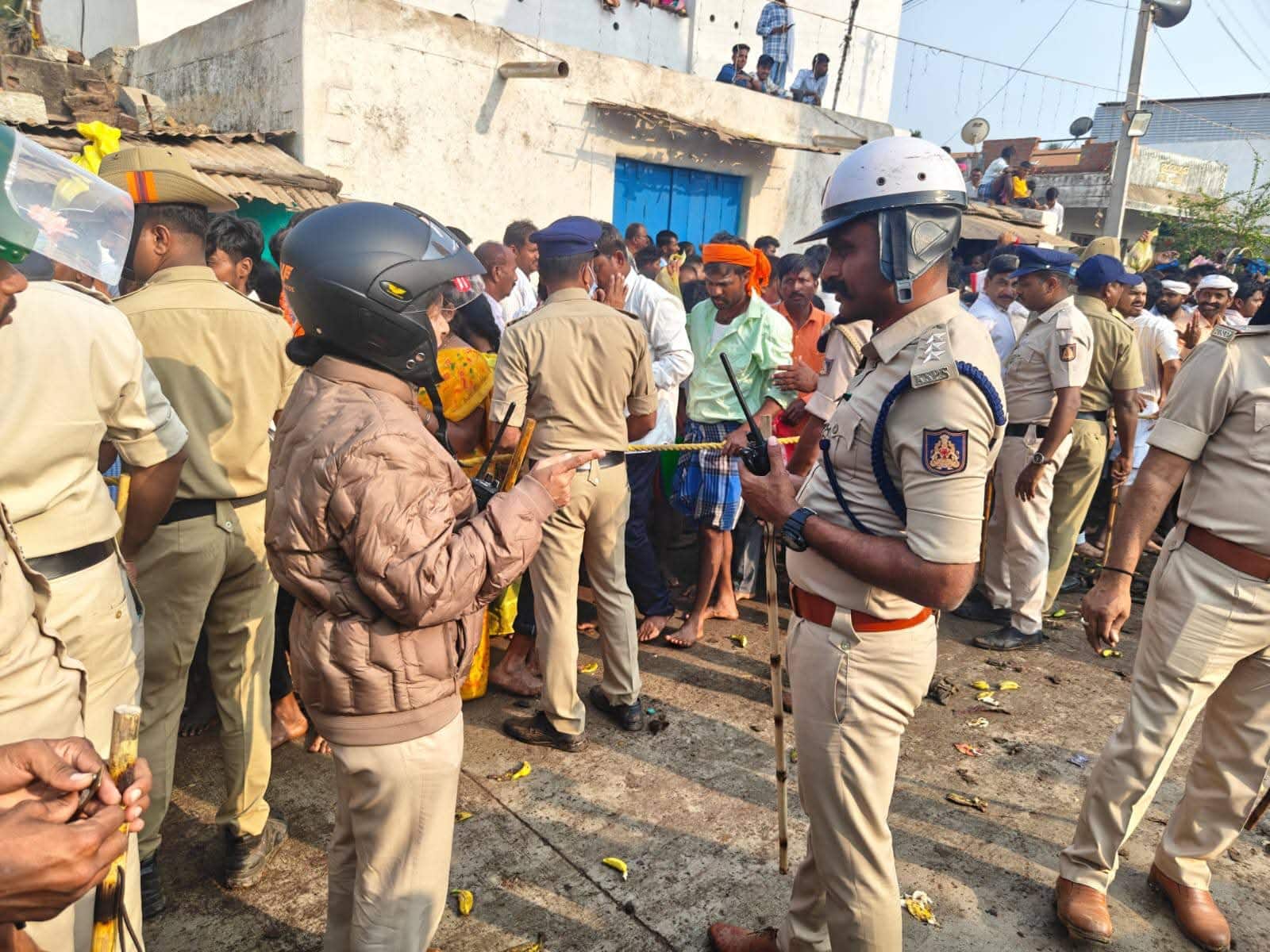 ದೇವಸ್ಥಾನದಲ್ಲಿ ದೇವರ ದರ್ಶನಕ್ಕೆ ಬಂದಿದ್ದ, ಭಕ್ತರ ನೂಕು ನುಗ್ಗಲು ತಪ್ಪಿಸಲು ಒಂದೇ ನೇರ ಮಾರ್ಗ ವ್ಯವಸ್ಥೆ ಮಾಡಿದ್ದರಿಂದ ಎಲ್ಲ ಭಕ್ತರು ಸಮಾಧಾನದಿಂದ ದರ್ಶನ ಪಡೆದು ಪುನೀತರಾದರು.