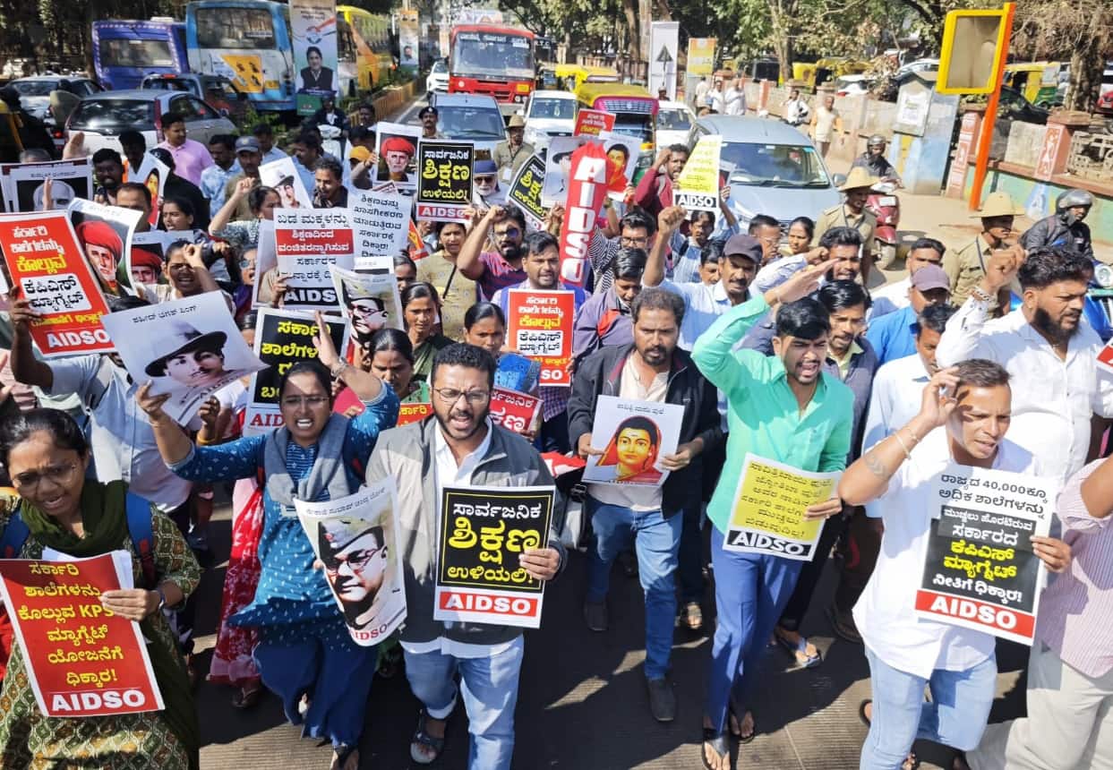 ಒಂದೇ ಒಂದು ಸರ್ಕಾರಿ ಶಾಲೆ ಮುಚ್ಚಬಾರದೆಂದು ಆಗ್ರಹಿಸಿ ನಗರದ ರಾಣಿ ಚನ್ನಮ್ಮ ವೃತ್ತದ ಬಳಿ ವಿವಿಧ ಹಳ್ಳಿಗಳ ಪೋಷಕರು ಹಾಗೂ ವಿದ್ಯಾರ್ಥಿಗಳೊಂದಿಗೆ ಆಗ್ರಹಿಸಿ ಪ್ರತಿಭಟಿಸಿದರು. ರಾಜ್ಯದಲ್ಲಿ ಕರ್ನಾಟಕ ಪಬ್ಲಿಕ್ ಶಾಲೆ (ಕೆಪಿಎಸ್) ಮ್ಯಾಗ್ನೆಟ್ ಯೋಜನೆಯ ಮೂಲಕ ಸಾವಿರಾರು ಸರ್ಕಾರಿ ಶಾಲೆಗಳನ್ನು ಮುಚ್ಚುವ ಮತ್ತು ವಿಲೀನಗೊಳಿಸುವ ರಾಜ್ಯ ಸರ್ಕಾರದ ನಡೆಯನ್ನು ಆಲ್ ಇಂಡಿಯಾ ಡೆಮಾಕ್ರಟಿಕ್ ಸ್ಟೂಡೆಂಟ್ಸ್ ಆರ್ಗನೈಸೇಶನ್ನ ಕರ್ನಾಟಕ ರಾಜ್ಯ ಸಮಿತಿಯು ತೀವ್ರ ವಿರೋಧ ವ್ಯಕ್ತಪಡಿಸಿದೆ.
