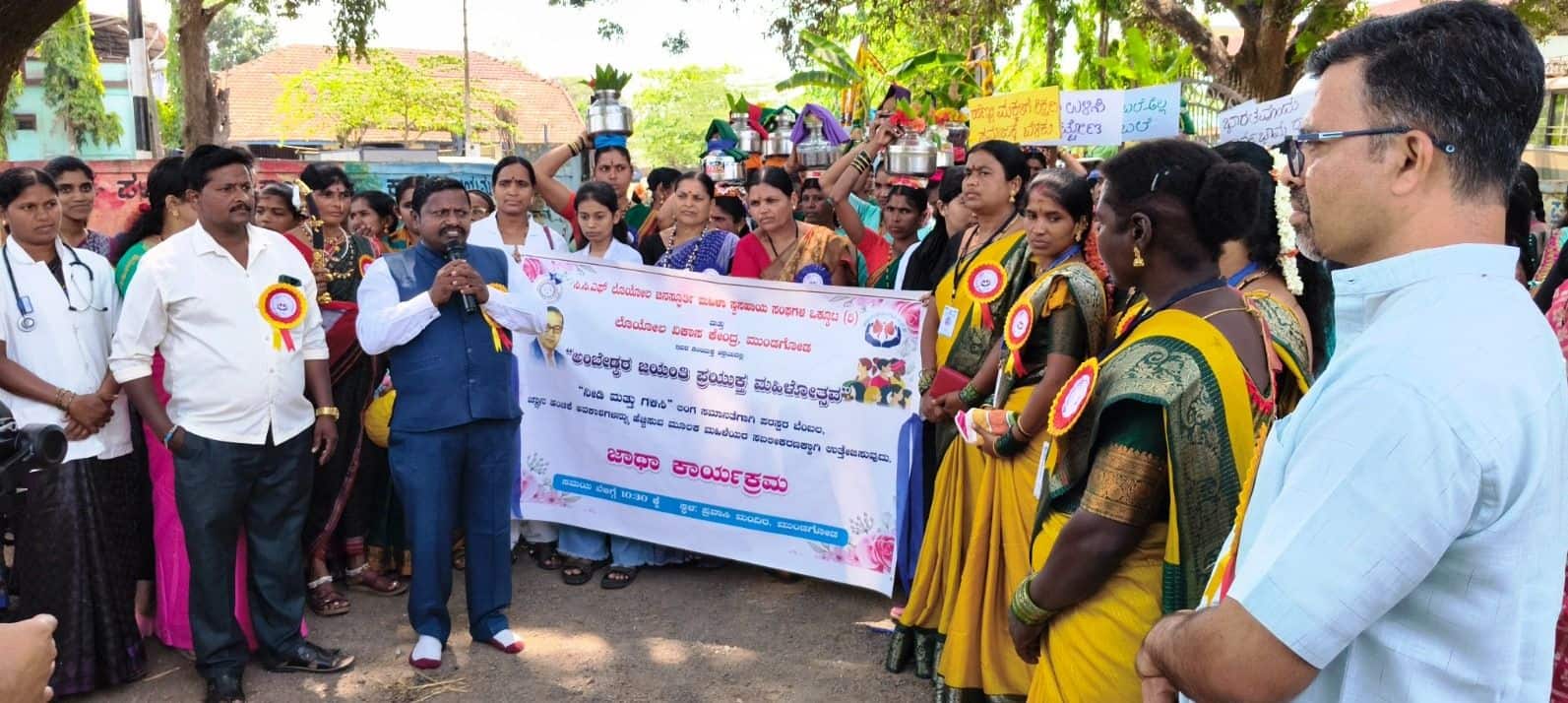 ಸಂವಿಧಾನ ಜಾಗೃತಿ ಜಾಥಾ: ಜಾಥಾದಲ್ಲಿ ಮಹಿಳೆಯರು ಸ್ವಾತಂತ್ರ್ಯ ಹೋರಾಟಗಾರ್ತಿಯರು, ವೈದ್ಯೆ, ಶಿಕ್ಷಕಿ, ವಕೀಲರು, ರಾಜಕೀಯ ಕ್ಷೇತ್ರದ ಮಹಿಳೆಯರಂತೆ ವೇಷಭೂಷಣ ಧರಿಸಿ ಸ್ತಬ್ಧಚಿತ್ರ ಪ್ರದರ್ಶನ ನೀಡಿದರು. ಡಾ. ಅಂಬೇಡ್ಕರ್ ಹಾಗೂ ಸಂವಿಧಾನ ಭಾವಚಿತ್ರಗಳೊಂದಿಗೆ ಟ್ರ್ಯಾಕ್ಟರ್ಗಳಲ್ಲಿ ಮೆರವಣಿಗೆ ನಡೆಸಿ, ಪಟ್ಟಣದ ಪ್ರಮುಖ ಬೀದಿಗಳಲ್ಲಿ ಸಂಚರಿಸಲಾಯಿತು. ಶಿವಾಜಿ ವೃತ್ತದ ಬಳಿ ಮಾನವ ಸರಪಳಿ ನಿರ್ಮಿಸಿ ಸಂವಿಧಾನ, ಮಹಿಳಾ ಹಕ್ಕುಗಳು ಹಾಗೂ ಸಮಾನತೆ ಕುರಿತು ಘೋಷಣೆ ಕೂಗಿ, ಸಾರ್ವಜನಿಕರಲ್ಲಿ ಜಾಗೃತಿ ಮೂಡಿಸಲಾಯಿತು.