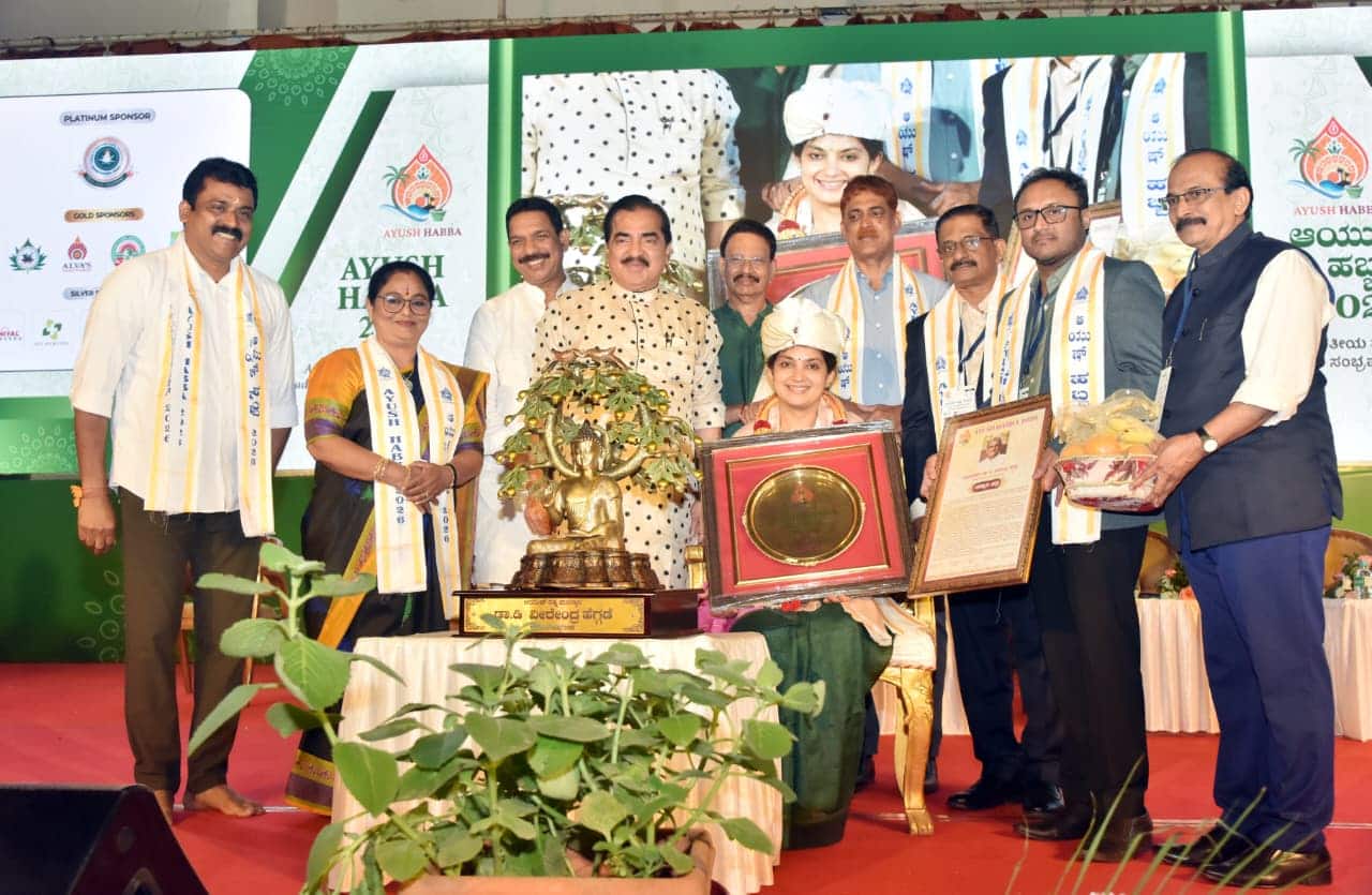 ಮಾಜಿ ಸಂಸದ ನಳಿನ್ ಕುಮಾರ್ ಕಟೀಲು ಮಾತನಾಡಿ, ಇತ್ತೀಚಿನ ದಿನಗಳಲ್ಲಿ ಎಂಜಿನಿಯರಿಂಗ್ ಕಾಲೇಜು ಸೀಟ್ಗಳು ಖಾಲಿ ಉಳಿಯುತ್ತಿದ್ದರೆ, ಆಯುರ್ವೇದ ವೈದ್ಯಕೀಯ ಸೀಟುಗಳು ಭರ್ತಿಯಾಗುತ್ತಿವೆ. ಕೇಂದ್ರ ಸರ್ಕಾರ ಆಯುಷ್ ಸಚಿವಾಲಯ ಆರಂಭಿಸಿ ಆಯುಷ್ ವೈದ್ಯ ಪದ್ಧತಿಗೆ ಉತ್ತೇಜನ ನೀಡಿದೆ. 3 ಸಾವಿರ ಕೋಟಿ ರು. ಬಜೆಟ್ ನಿಗದಿಪಡಿಸುವ ಮೂಲಕ ಆಯುಷ್ಗೆ ದೊಡ್ಡ ಉತ್ತೇಜನ ನೀಡುತ್ತಿದೆ ಎಂದರು.ಧರ್ಮಸ್ಥಳ ಧರ್ಮಾಧಿಕಾರಿ ಡಾ.ಡಿ. ವೀರೇಂದ್ರ ಹೆಗ್ಗಡೆ ಅವರಿಗೆ ಆಯುಷ್ ರತ್ನ ಪುರಸ್ಕಾರ, ಮೂಡುಬಿದಿರೆ ಆಳ್ವಾಸ್ ಶಿಕ್ಷಣ ಪ್ರತಿಷ್ಠಾನ ಅಧ್ಯಕ್ಷ ಡಾ.ಎಂ. ಮೋಹನ ಆಳ್ವ ಅವರಿಗೆ ಆಯುಷ್ ವಿಭೂಷಣ ಪುರಸ್ಕಾರ ಪ್ರದಾನ ಮಾಡಲಾಯಿತು. ಡಾ. ಡಿ. ವೀರೇಂದ್ರ ಹೆಗ್ಗಡೆ ಪರವಾಗಿ ಅವರ ಪುತ್ರಿ ಶ್ರದ್ಧಾ ಅಮಿತ್ ಅವರು ಪ್ರಶಸ್ತಿ ಸ್ವೀಕರಿಸಿದರು.ಈ ವೇಳೆ ಮಾತನಾಡಿದ ಶ್ರದ್ಧಾ ಅಮಿತ್, ಎಲ್ಲರೂ ಆಯುರ್ವೇದ, ನ್ಯಾಚುರೋಪತಿ ಅಳವಡಿಸಿಕೊಂಡು ಜೀವನ ನಡೆಸಬೇಕಿದೆ ಎಂದರು.