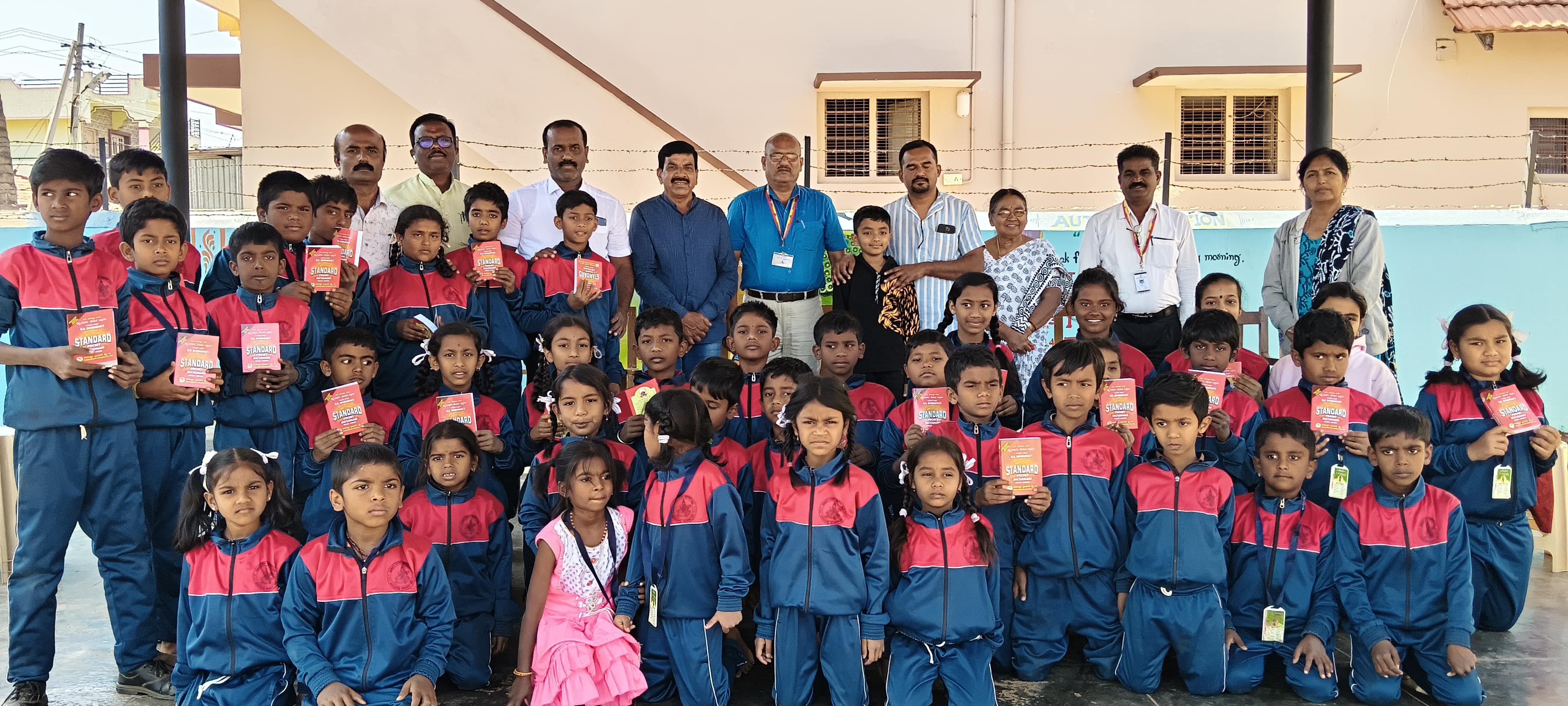 ಪಟ್ಟಣದ ಹಾರೋಹಳ್ಳಿ ಗ್ರಾಮದ ಸರ್ಕಾರಿ ಹಿರಿಯ ಪ್ರಾಥಮಿಕ ಶಾಲೆಯಲ್ಲಿ ಸಮಾಜ ಸೇವಕ, ವೈದ್ಯರಾದ ಡಾ.ಕೆ.ವೈ.ಶ್ರೀನಿವಾಸ್ ಅವರ ಸವಿ ನೆನಪಿಗಾಗಿ ಶಾಲಾ ಮಕ್ಕಳಿಗೆ ಇಂಗ್ಲಿಷ್ ನಿಘಂಟು ವಿತರಿಸಿ ಮಾತನಾಡಿದರು.