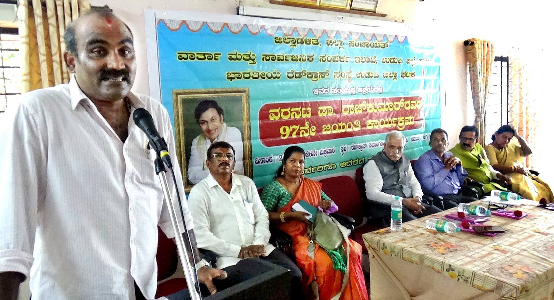 ಭಾರತೀಯ ರೆಡ್ಕ್ರಾಸ್ ರಾಜ್ಯ ಸಭಾಪತಿ ಬಸರೂರು ರಾಜೀವ್ ಶೆಟ್ಟಿ ಅಧ್ಯಕ್ಷತೆ ವಹಿಸಿದ್ದರು. ಚಲನಚಿತ್ರ ಕಲಾವಿದೆ ಪ್ರತಿಮಾ ನಾಯಕ್ ಅವರು ಡಾ.ರಾಜ್ಕುಮಾರ್ ಅವರ ಜೀವನ ಮತ್ತು ನಟನೆ ಕುರಿತು ಉಪನ್ಯಾಸ ನೀಡಿದರು. ಜಿಲ್ಲಾ ವಾರ್ತಾಧಿಕಾರಿ ಮಂಜುನಾಥ್ ಬಿ. ಸ್ವಾಗತಿಸಿ ಪ್ರಾಸ್ತಾವಿಕವಾಗಿ ಮಾತನಾಡಿದರು.ಡಾ.ಜಿ.ಶಂಕರ್ ಮಹಿಳಾ ಪ್ರಥಮ ದರ್ಜೆ ಕಾಲೇಜಿನ ವಿದ್ಯಾರ್ಥಿನಿಯರಾದ ದಿಶಾ ಮತ್ತು ದಿಯಾ ಡಾ. ರಾಜ್ ಕುಮಾರ್ ಅವರ ಚಿತ್ರಗೀತೆಗಳನ್ನು ಹಾಡಿದರು. ಲಯನ್ಸ್ ಮಿಡ್ಟೌನ್ ಅಧ್ಯಕ್ಷ ಪುರುಷೋತ್ತಮ್ ನಾಯಕ್, ಡಾ.ಜಿ ಶಂಕರ್ ಮಹಿಳಾ ಪ್ರಥಮ ದರ್ಜೆ ಕಾಲೇಜಿನ ಪ್ರಾಂಶುಪಾಲೆ ಡಾ.ನಿಕೇತನ, ವಾರ್ತಾ ಇಲಾಖೆಯ ಸಿಬ್ಬಂದಿ, ರೆಡ್ಕ್ರಾಸ್ ಹಾಗೂ ಡಿ.ಡಿ.ಆರ್.ಸಿ ಸಿಬ್ಬಂದಿ, ವಿವಿಧ ಕಾಲೇಜುಗಳ ವಿದ್ಯಾರ್ಥಿಗಳು ಹಾಗೂ ಮತ್ತಿತರರಿದ್ದರು.ರೆಡ್ಕ್ರಾಸ್ ಸಂಸ್ಥೆ ಉಡುಪಿ ಘಟಕದ ಕಾರ್ಯದರ್ಶಿ ಗಣನಾಥ್ ಶೆಟ್ಟಿ ಎಕ್ಕಾರ್ ನಿರೂಪಿಸಿ, ಖಜಾಂಚಿ ರಮಾದೇವಿ ವಂದಿಸಿದರು.