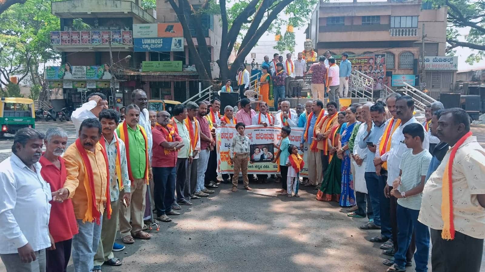 ಬಳಿಕ ಮಾತನಾಡಿದ ಮುಖಂಡರು, ಡಾ.ರಾಜ್ಕುಮಾರ್ ಅವರು ಕನ್ನಡದ ಅಸ್ಮಿತೆಯ ಸಂಕೇತ. ಪಾತ್ರಗಳ ಮೂಲಕ ಸಾಮಾಜಿಕ ಸಂದೇಶವನ್ನು ನಿರಂತರವಾಗಿ ನೀಡಿದ ಅವರು, ಎಲ್ಲ ವರ್ಗಗಳು, ಎಲ್ಲ ವಯೋಮಿತಿಯ ಜನತೆಗೆ ಮಾದರಿ ಆಲೋಚನೆಗಳನ್ನು ಬಿತ್ತಿದರು. ಕನ್ನಡ ಚಳವಳಿ, ಹೋರಾಟ, ಭಾಷಾ ಅಸ್ಮಿತೆ, ನಾಡು-ನುಡಿಯ ಚಿಂತನೆಗಳಿಗೆ ಡಾ.ರಾಜ್ಕುಮಾರ್ ಅನ್ವರ್ಥ ಎಂಬಂತೆ ತನ್ನ ಬದುಕನ್ನು ರೂಪಿಸಿಕೊಂಡಿದ್ದರು. ಅವರಿಗೆ ಮರಣೋತ್ತರವಾಗಿ ಭಾರತರತ್ನ ಪುರಸ್ಕಾರ ದೊರೆಯಬೇಕು. ಇದಕ್ಕಾಗಿ ಸಹಿ ಸಂಗ್ರಹ ಅಭಿಯಾನವನ್ನು ನಡೆಸಿ ರಾಜ್ಯ ಹಾಗೂ ಕೇಂದ್ರ ಸರ್ಕಾರಗಳಿಗೆ ಹಕ್ಕೊತ್ತಾಯ ಸಲ್ಲಿಸಲಾಗುವುದು ಎಂದು ತಿಳಿಸಿದರು.