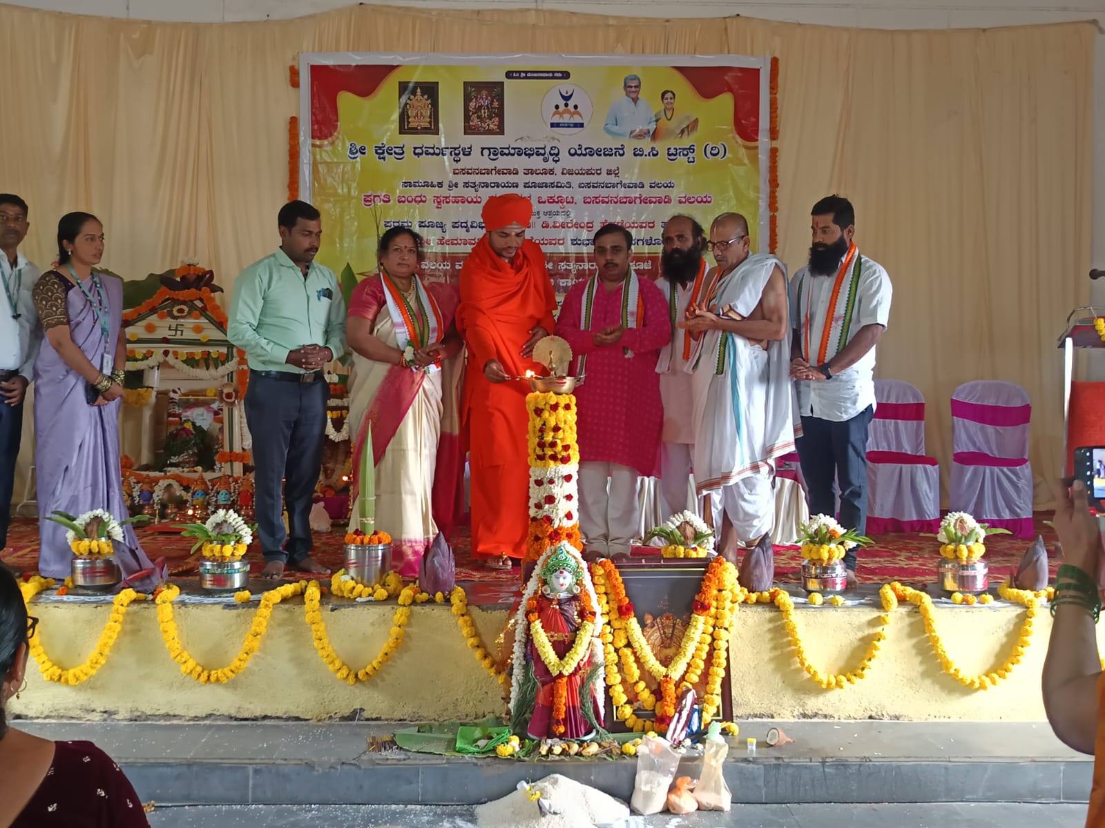 ವಿಶ್ವ ಹಿಂದೂ ಪರಿಷತ್ ಬಜರಂಗದಳದ ಅಧ್ಯಕ್ಷ ಮಹೇಶ ಸಾಲವಾಡಗಿ ಹಾಗೂ ಜನಜಾಗೃತಿಯ ವೇದಿಕೆ ಸದಸ್ಯ ಪರಶುರಾಮ ಜಮಖಂಡಿ ಮಾತನಾಡಿ, ಧರ್ಮಸ್ಥಳ ಸಂಸ್ಥೆಯು ಗ್ರಾಮೀಣ ಅಭಿವೃದ್ಧಿಯಲ್ಲಿ ವಿಶೇಷ ಕಾರ್ಯಗಳನ್ನು ಮಾಡುತ್ತಿರುವುದು ನಾವೆಲ್ಲ ಗಮನಿಸಬಹುದಾಗಿದೆ. ಕೆರೆಗಳ ಪುನರ್ ನಿರ್ಮಾಣ ಸೇರಿದಂತೆ ಸರ್ಕಾರ ಮಾಡುವ ಕೆಲಸಗಳನ್ನು ಮಾಡುತ್ತಿದೆ ಎಂದರು.ಜಿಲ್ಲಾ ಜನ ಜಾಗೃತಿ ವೇದಿಕೆ ಸದಸ್ಯ ಡಾ.ಅಮರೇಶ ಮಿಣಜಗಿ ಅಧ್ಯಕ್ಷತೆ ವಹಿಸಿ ಮಾತನಾಡಿ, ರಾಜ್ಯಸಭೆ ಸದಸ್ಯ ಡಾ.ವೀರೇಂದ್ರ ಹೆಗ್ಗಡೆಯವರು ದೂರದೃಷ್ಟಿಯನ್ನು ಹೊಂದಿದ ಫಲವಾಗಿ ಜನಸಾಮಾನ್ಯರಿಗೆ ಈ ಸಂಸ್ಥೆಯಿಂದ ಉತ್ತಮ ಸೇವೆ ಸಿಗುತ್ತಿವೆ. ಇದರಿಂದಾಗಿ ಅವರ ಬದುಕು ಹಸನಾಗುತ್ತಿದೆ ಎಂದರು.ಸತ್ಯನಾರಾಯಣ ಪೂಜೆ ನೆರವೇರಿಸಿದ ಅರ್ಚಕ ರವೀಂದ್ರ ಪುರೋಷತ್ತಮ ಜೋಶಿ ಮಾತನಾಡಿದರು.ಪ್ರಾಸ್ತವಿಕವಾಗಿ ಕ್ಷೇತ್ರಧರ್ಮಸ್ಥಳ ಗ್ರಾಮಾಭಿವೃದ್ಧಿ ಯೋಜನೆ ಬಿ.ಸಿ.ಟ್ರಸ್ಟ್ ತಾಲೂಕು ಯೋಜನಾಧಿಕಾರಿ ಪ್ರಸನ್ನ.ಆರ್ ಮಾತನಾಡಿದರು. ಮೇಲ್ವಿಚಾರಕ ಮಂಜುನಾಥ ಎನ್.ಎಚ್. ಸ್ವಾಗತಿಸಿದರು. ಕೃಷಿ ಮೇಲ್ವಿಚಾರಕ ರಾಜು ಬೇಟಗೇರಿ ನಿರೂಪಿಸಿದರು. ಸಂಗೀತಾ ವಂದಿಸಿದರು. ಕಾರ್ಯಕ್ರಮಕ್ಕೂ ಮುನ್ನ ಅರ್ಚಕ ರವೀಂದ್ರ ಪುರೋಷತ್ತಮ ಜೋಶಿ ಅವರು ಸಾಮೂಹಿಕ ಸತ್ಯನಾರಾಯಣ ಪೂಜೆ ನೆರವೇರಿಸಿದರು. ಸತ್ಯನಾರಾಯಣ ಪೂಜಾ ಕೈಂಕರ್ಯದಲ್ಲಿ 71 ದಂಪತಿಗಳು ಭಾಗವಹಿಸಿದ್ದರು. ನಂತರ ಪ್ರಸಾದ ವಿತರಿಸಲಾಯಿತು.