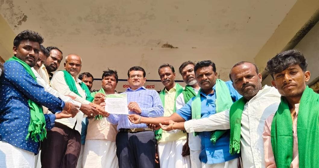 ಸಾಲ ವಸೂಲಾತಿ ನೆಪದಲ್ಲಿ ರೈತರ ಭೂಮಿಯನ್ನು ಅವೈಜ್ಞಾನಿಕವಾಗಿ ಹರಾಜು ಮಾಡುತ್ತಿರುವ ಹಾಗೂ ರೈತರಿಗೆ ಕೈಕೋಳ ಹಾಕಿಸಿ ಜೈಲಿಗೆ ಕಳುಹಿಸಿರುವುದನ್ನು ಖಂಡಿಸಿ ಕೋಡಿಹಳ್ಳಿ ಚಂದ್ರಶೇಖರ ಬಣದ ರಾಜ್ಯ ರೈತ ಸಂಘ ಹಾಗೂ ಹಸಿರು ಸೇನೆ ಕಾರ್ಯಕರ್ತರು ಸೋಮವಾರ ಕನಕಗಿರಿಯಲ್ಲಿ ಮನವಿ ಸಲ್ಲಿಸಿದರು.