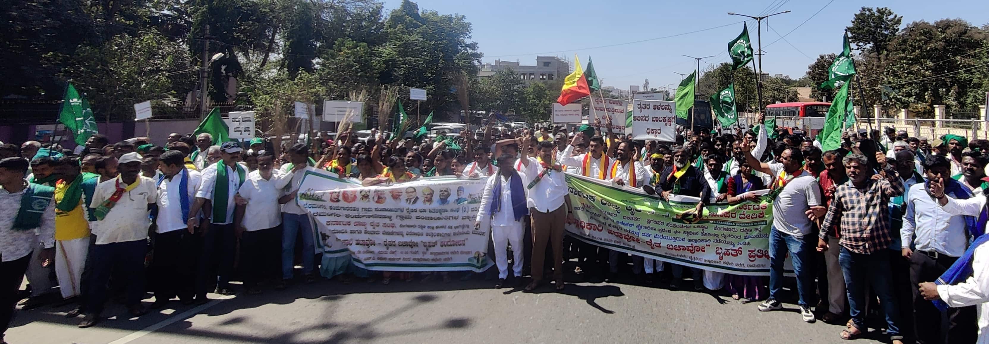 ಎಪಿಎಂಸಿಗಳಲ್ಲಿ ನಿಲ್ಲದ ಕಮಿಷನ್ ದಂದೆ ಕೂಡಲೇ ನಿಲ್ಲಿಸಬೇಕು. ಆನೇಕಲ್ ತಾಲೂಕು ಸರ್ಜಾಪುರ ಭಾಗದ 2500 ಎಕರೆ ಕೃಷಿ ಭೂಮಿಯನ್ನು ಕೆಐಡಿಬಿಗೆ ಭೂ ಸ್ವಾಧೀನ ಹೊರಟಿರುವ ರಾಜ್ಯ ಸರ್ಕಾರದ ಅವೈಜ್ಞಾನಿಕ ನೀತಿಯನ್ನು ಕೈಬಿಡಬೇಕು. ಕಾಡು ಪ್ರಾಣಿಗಳು ಮತ್ತು ಮಾನವ ಸಂಘರ್ಷವನ್ನು ತಪ್ಪಿಸಬೇಕು. ಕೃಷಿ ಪಂಪ್ ಸೆಟ್ಗಳ ಸಕ್ರಮಕ್ಕೆ ಸಲ್ಲಿಸಿರುವ ಅರ್ಜಿಗಳನ್ನು ತಕ್ಷಣ ವಿಲೇವಾರಿ ಮಾಡಬೇಕು.ಬೀದಿನಾಯಿಗಳ ಸಮಸ್ಯೆ ನಿವಾರಿಸಬೇಕು, ಫಾರಂ ನಂ.50, 53ರಲ್ಲಿ ಅಕ್ರಮ ಸಾಗುವಳಿಯ ಸಕ್ರಮ ಕೋರಿ ಸಲ್ಲಿಕೆಯಾದ ಅರ್ಜಿಗಳನ್ನು ಸರ್ಕಾರದ ಆದೇಶದನ್ವಯ ಪರಿಗಣಿಸಬೇಕು. ಜಲ ಜೀವನ್ ಮಿಷನ್ ಯೋಜನೆ ಕಾಮಗಾರಿ ಕಳಪೆಯಿಂದ ಕೂಡಿದ್ದು, ಸೂಕ್ತ ತನಿಖೆ ನಡೆಸಬೇಕು. ರೈತರು, ಕನ್ನಡ ಹಾಗೂ ದಲಿತ ಪರ ಹೋರಾಟಗಾರರ ಮೇಲಿನ ಮೊಕದ್ದಮೆ ವಾಪಸ್ ಪಡೆಯಬೇಕು ಎಂದು ರೈತರು ಒತ್ತಾಯಿಸಿದರು.