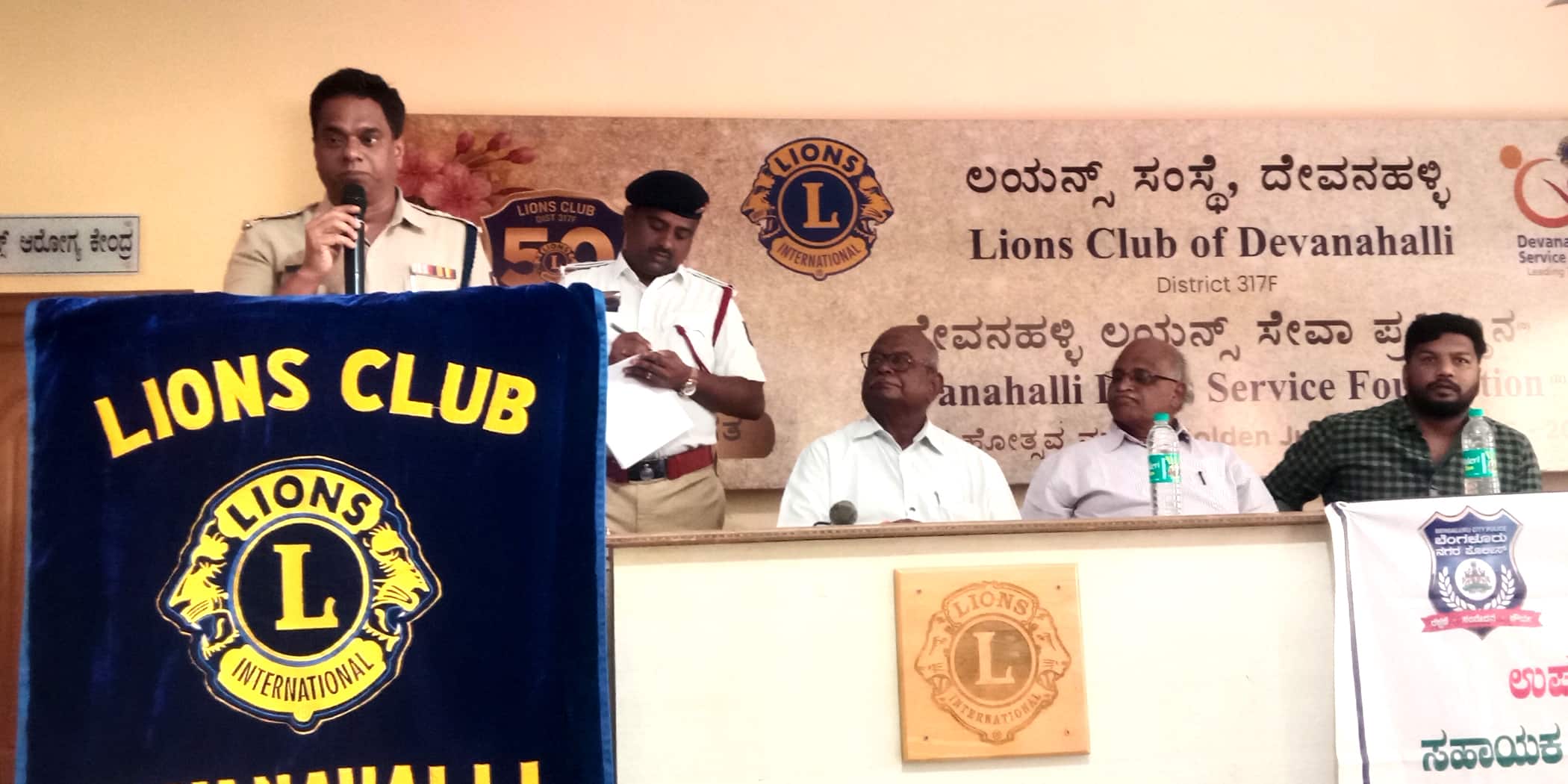 ದೇವನಹಳ್ಳಿ ಅತಿವೇಗವಾಗಿ ಬೆಳೆಯುತ್ತಿದೆ ಅದಕ್ಕೆ ತಕ್ಕಂತೆ ವಾಹನ ದಟ್ಟಣೆಯೂ ಸಹ ಹೆಚ್ಚಾಗುತ್ತಿದೆ. ಅದಾಗ್ಯೂ ಕೂಡ ಸಿಬ್ಬಂದಿ ಕಡಿಮೆ ಇದ್ದರು ಸಹ ಇರುವ ಸಿಬ್ಬಂದಿಯೇ ಕೆಲಸ ನಿರ್ವಹಿಸುತ್ತಿದ್ದಾರೆ. ಹೊಸ ಬಸ್ ನಿಲ್ದಾಣದಲ್ಲಿ ಹಾಗೂ ಚಿಕ್ಕಸಣ್ಣೆ ಬಳಿ ಸಿಗ್ನಲ್ ಅಳವಡಿಕೆ ಮಾಡಲಾಗುವುದು ಅಗತ್ಯವಿರುವ ಕಡೆ ಸಂಚಾರಿ ನಾಮಫಲಕಗಳ ಅಳವಡಿಕೆ ಮಾಡಲಾಗುವುದು ಲಯನ್ಸ್ ಸಂಸ್ಥೆ ಅವರು ಸಹ ನಾಮಫಲಗಳ ಅಳವಡಿಕೆ ಮಾಡಲು ಅನುಮತಿ ಕೇಳಿದ್ದಾರೆ ಸಂಬಂಧಪಟ್ಟ ಇಲಾಖೆಯಿಂದ ಅನುಮತಿ ಪಡೆದು ನಾಮಫಲಕಗಳನ್ನು ಅಳವಡಿಸಲಾಗುವುದು. ದೇವನಹಳ್ಳಿ ಪಟ್ಟಣದಲ್ಲಿ ಸಂಚಾರಿ ನಿಯಮಗಳ ಬಗ್ಗೆ ಸಾರ್ವಜನಿಕರಲ್ಲಿ ಹಾಗೂ ಶಾಲಾ ಕಾಲೇಜು ಹಂತದಲ್ಲಿ ವ್ಯಾಪಕ ಪ್ರಚಾರ ಮಾಡಿ ಅರಿವು ಮೂಡಿಸುವ ಕೆಲಸ ಮಾಡಲಾಗುವುದು ಎಂದರು. ಸಾರ್ವಜನಿಕರಿಂದ ಬಂದ ಪ್ರಮುಖ ದೂರುಗಳು:ಪಟ್ಟಣದ ಹೊಸ ಬಸ್ ನಿಲ್ದಾಣದಲ್ಲಿ ವಾಹನ ದಟ್ಟಣೆ ನಿಯಂತ್ರಣಕ್ಕೆ ಸಿಗ್ನಲ್ ಅಳವಡಿಕೆ, ಚಿಕ್ಕಸಜ್ಜೆ ಬಳಿ ಸಿಗ್ನಲ್ ಅಳವಡಿಕೆ ರಸ್ತೆ ಹಂಪ್ಗಳ ಅಳವಡಿಕೆ, ಫುಟ್ಪಾತ್ಗಳಲ್ಲಿನ ಅಂಗಡಿಗಳ ತೆರವು, ಹಾಗೂ ವಾಹನ ದಟ್ಟನೆ ಹೆಚ್ಚಾಗಿರುವ ಕಡೆ ಸಿಬ್ಬಂದಿ ನಿಯೋಜನೆ, ವಾಹನ ಪರವಾನಗಿ ಇಲ್ಲದೆ ೧೮ ವರ್ಷದೊಳಗಿನ ಮಕ್ಕಳ ವಾಹನ ಚಾಲನೆಗೆ ಕಡಿವಾಣ, ಶನಿವಾರ ಹಾಗೂ ಬಾನುವಾರ ನಂದಿಬೆಟ್ಟಕ್ಕೆ ತೆರಳುವ ವಾಹನಗಳ ಅತಿವೇಗಕ್ಕೆ ಕಡಿವಾಣ ಸೇರಿದಂತೆ ಅನೇಕ ಸಮಸ್ಯೆಗಳನ್ನು ಸಾರ್ವಜನಿಕರು ಸಭೆಯಲ್ಲಿ ವ್ಯಕ್ತಪಡಿಸಿದರು. ದೇವನಹಳ್ಳಿ ಸಂಚಾರಿ ಇನ್ಸ್ಪೆಕ್ಟರ್ ಮುರಳಿಧರ್ ಮಾತನಾಡಿ ಸಿಬ್ಬಂದಿಯ ಕೊರತೆ ಇದ್ದರು ಸಹ ಇರುವ ಸಿಬ್ಬಂದಿಯಿಂದಲೇ ಪಟ್ಟಣದಲ್ಲಿ ವಾಹನ ದಟ್ಟಣೆ ನಿಯಂತ್ರಣ ಮಾಡಲಾಗುತ್ತಿದೆ. ವಾಹನ ಸವಾರರು ಕಡ್ಡಾಯವಾಗಿ ಸಂಚಾರಿ ನಿಯಮಗಳನ್ನು ಪಾಲಿಸಿ ಸಹಕರಿಸಿ ಕುಡಿದು ವಾಹನ ಚಾಲನೆ ಮಾಡಿದರೆ ದಂಡ ವಿಧಿಸಲಾಗುವುದು ಮುಂದಿನ ದಿನಗಳಲ್ಲಿ ಗ್ರಾಮೀಣ ಭಾಗದಲ್ಲಿ ಸಂಚಾರ ಸಂಪರ್ಕ ಸಭೆಗಳನ್ನು ಆಯೋಜನೆ ಮಾಡಲಾಗುವುದು ಹಾಗೂ ಶಾಲಾ ಕಾಲೇಜು ವಿದ್ಯಾರ್ಥಿಗಳನ್ನೆಲ್ಲೆ ಒಂದೆಡೆ ಸೇರಿಸಿ ಜಾಗೃತಿ ಮೂಡಿಸುವ ಕೆಲಸ ಮಾಡಲಾಗುವುದು ಎಂದರು. ಲಯನ್ಸ್ ಸಂಸ್ಥೆ ಅಧ್ಯಕ್ಷ ಶಂಕರ್ ಮಾತನಾಡಿ ಸಂಚಾರಿ ಪೊಲೀಸರಿಗೆ ನಮ್ಮ ಸಹಕಾರ ಸದಾ ಇರಲಿದೆ. ಲಯನ್ಸ್ ಸಂಸ್ಥೆ ಹಾಗೂ ಸಂಚಾರಿ ಠಾಣೆಯಿಂದ ಈಗಾಗಲೇ ಅನೇಕ ಜಾಗೃತಿ ಕಾರ್ಯಕ್ರಮಗಳನ್ನು ಆಯೋಜನೆ ಮಾಡಿ ಜನರಲ್ಲಿ ಜಾಗೃತಿ ಮೂಡಿಸಲಾಗಿದೆ ಎಂದರು. ಇದೆ ವೇಳೆ ಲಯನ್ಸ್ ಸಂಸ್ಥೆ ಮಾಜಿ ಅಧ್ಯಕ್ಷ ಸತೀಶ್ಕುಮಾರ್, ಕೃಪಾಕರ್, ಭಾಸ್ಕರ್ ಶ್ರೀರಾಮಯ್ಯ, ಸಂಚಾರಿ ಸಬ್ ಇನ್ಸ್ಪೆಕ್ಟಾರ್ ಮಂಜುನಾಥ್, ಎ.ಎಸ್.ಐಗಳಾದ ನಾರಾಯಣಸ್ವಾಮಿ,ಸುರೇಶ್, ಗಿರೀಶ್ಜಾದವ್, ಮುಖ್ಯ ಪೇದೆ ಲೋಕೇಶ್, ರವಿಕುಮಾರ್, ಮುಖ್ಯಪೆದೆ ನರಸಿಂಹಮೂರ್ತಿ ಪೆದೆಗಳಾದ ಮಂಜುನಾಥ್ ಸಿಬ್ಬಂದಿವರ್ಗದವರು ಇದ್ದರು.