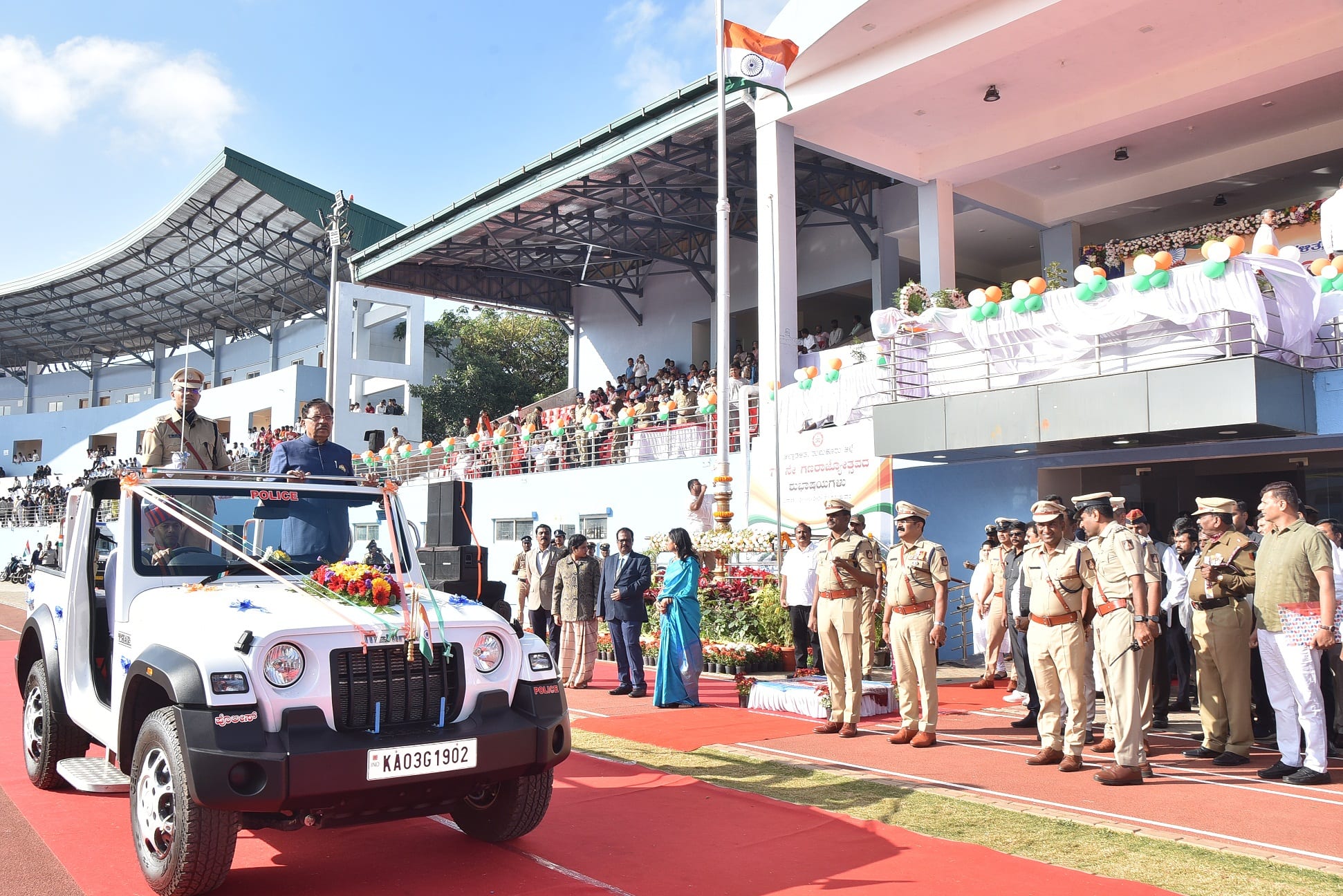 ತ್ರಿವಿಧ ದಾಸೋಹಿ, ಪದ್ಮಭೂಷಣ, ಲಿಂಗೈಕ್ಯ ಡಾ. ಶಿವಕುಮಾರ ಸ್ವಾಮೀಜಿಯವರನ್ನು ಸ್ಮರಿಸಿದ ಸಚಿವ ಡಾ. ಜಿ. ಪರಮೇಶ್ವರ್ ಅವರು, ಸಂವಿಧಾನ ರಚನಕಾರರಲ್ಲಿ ಒಬ್ಬರಾದ ಕರ್ನಾಟಕದ ಬೆನಗಲ್ ನರಸಿಂಗರಾವ್ ಅವರು ಸಹ ಉತ್ತಮ ಅಂಶಗಳನ್ನು ನಮ್ಮ ಸಂವಿಧಾನಕ್ಕೆ ಸೇರಿಸಿದ್ದಾರೆ. ಹಾಗಾಗಿ ನಮ್ಮ ಸಂವಿಧಾನವು ಅತ್ಯಂತ ವಿಭಿನ್ನವಾದುದು. ಪ್ರಪಂಚದ ಹಲವಾರು ಸಂವಿಧಾನಗಳನ್ನು ಅಧ್ಯಯನ ಮಾಡಿ, ಭಾರತೀಯ ಸಮಾಜಕ್ಕೆ ಪೂರಕವಾಗುವ ಉತ್ತಮ ಅಂಶಗಳನ್ನು ಸಂವಿಧಾನದಲ್ಲಿ ಅಳವಡಿಸಿಕೊಳ್ಳಲಾಗಿದೆ ಎಂದರು.ಸಮಾರಂಭದ ಅಧ್ಯಕ್ಷತೆಯನ್ನು ಶಾಸಕ ಜ್ಯೋತಿಗಣೇಶ್ ವಹಿಸಿದ್ದರು. ಗ್ರಾಮಾಂತರ ಶಾಸಕ ಬಿ. ಸುರೇಶ್ಗೌಡ, ವಿಧಾನ ಪರಿಷತ್ ಸದಸ್ಯರಾದ ಆರ್. ರಾಜೇಂದ್ರ, ಬಿಎಂಟಿಸಿ ನಿಗಮದ ಉಪಾಧ್ಯಕ್ಷ ನಿಕೇತ್ರಾಜ್ ಮರ್ಯಚ, ಜಿಲ್ಲಾಧಿಕಾರಿ ಶುಭಕಲ್ಯಾಣ್, ಜಿಲ್ಲಾ ಪೊಲೀಸ್ ವರಿಷ್ಠಾಧಿಕಾರಿ ಅಶೋಕ್ ಕೆ.ವಿ., ಅಪರ ಜಿಲ್ಲಾಧಿಕಾರಿ ಡಾ. ಎನ್. ತಿಪ್ಪೇಸ್ವಾಮಿ, ಉಪವಿಭಾಗಾಧಿಕಾರಿ ನಾಹಿದಾ ಜಮ್ ಜಮ್, ಮಹಾನಗರ ಪಾಲಿಕೆ ಆಯುಕ್ತೆ ಶುಭ, ತಹಶೀಲ್ದಾರ್ ರಾಜೇಶ್ವರಿ ಸೇರಿದಂತೆ ಅನೇಕ ಗಣ್ಯರು ಭಾಗವಹಿಸಿದ್ದರು.ಇದೇ ಸಂದರ್ಭದಲ್ಲಿ ಜಿಲ್ಲಾ ಸಶಸ್ತ್ರ ಪೊಲೀಸ್ ಪಡೆ, ಮಹಿಳಾ ಪೊಲೀಸ್ ತಂಡ, ಪೊಲೀಸ್ ಬ್ಯಾಂಡ್ ತಂಡ, ಗೃಹ ರಕ್ಷದ ದಳ, ಅರಣ್ಯ ಇಲಾಖೆ ತಂಡ, ಕಲ್ಪತರು ಪಡೆ, ಪೌರ ಕರ್ಮಿಿಕರ ತಂಡ, ವಿಕಲಚೇತನರ ತಂಡ, ವಿವಿಧ ಶಾಲಾ ಮಕ್ಕಳ ಭಾರತ್ ಸ್ಕೌಟ್ಸ್ ಮತ್ತು ಗೈಡ್ ತಂಡಗಳು ಸೇರಿದಂತೆ ಸುಮಾರು 25 ತುಕಡಿಗಳಿಂದ ಆಕರ್ಷಕ ಪಥ ಸಂಚಲನ ನಡೆಯಿತು.