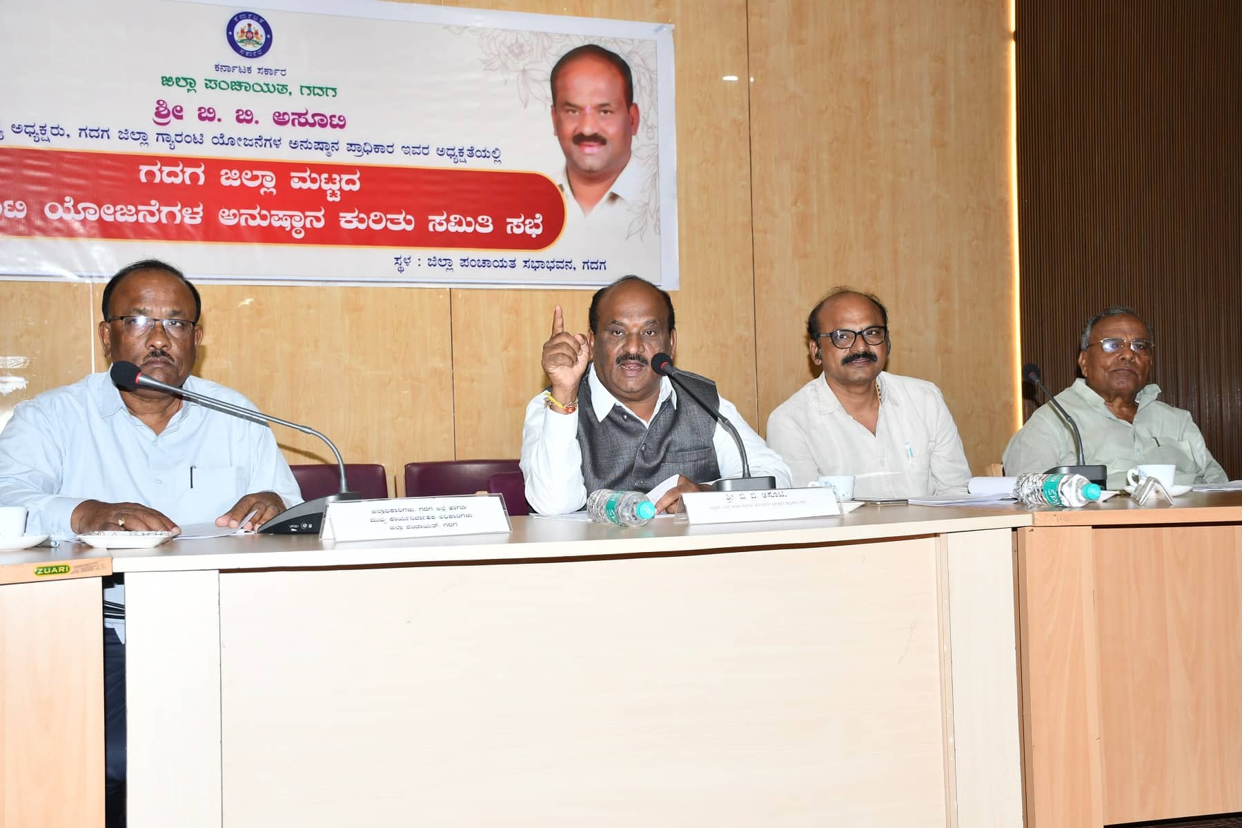 ಗದಗ: ರಾಜ್ಯದಲ್ಲಿಯೇ ಗದಗ ಜಿಲ್ಲೆಯು ಪಂಚ ಗ್ಯಾರಂಟಿ ಯೋಜನೆಗಳ ಅನುಷ್ಠಾನದಲ್ಲಿ ಶೇ. 99.4ರಷ್ಟು ಗುರಿ ಸಾಧಿಸಿ ಪ್ರಥಮ ಸ್ಥಾನದಲ್ಲಿದೆ. ಈ ಸಾಧನೆಗೆ ಜಿಲ್ಲೆಯ ಗ್ಯಾರಂಟಿ ಯೋಜನೆಗಳ ಇಲಾಖಾಧಿಕಾರಿಗಳು ಜಿಲ್ಲಾ ಹಾಗೂ ತಾಲೂಕು ಮಟ್ಟದ ಸಮಿತಿಯ ಸದಸ್ಯರು ಕಾರಣೀಭೂತರಾಗಿದ್ದಾರೆ ಎಂದು ಜಿಲ್ಲಾಧ್ಯಕ್ಷ ಬಿ.ಬಿ. ಅಸೂಟಿ ತಿಳಿಸಿದರು.ನಗರದ ಜಿಪಂ ಸಭಾಂಗಣದಲ್ಲಿ ಮಂಗಳವಾರ ಜರುಗಿದ ಜಿಲ್ಲಾ ಮಟ್ಟದ ಗ್ಯಾರಂಟಿ ಯೋಜನೆಗಳ ಅನುಷ್ಠಾನ ಕುರಿತು ನಡೆದ ಸಭೆಯ ಅಧ್ಯಕ್ಷತೆ ವಹಿಸಿ ಮಾತನಾಡಿದರು.