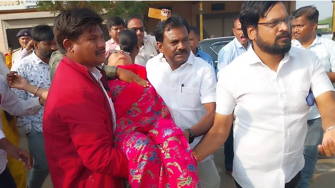 ಗದಗ: ವಿವಿಧ ಬೇಡಿಕೆಗಳ ಈಡೇರಿಕೆಗೆ ಆಗ್ರಹಿಸಿ ನಗರದಲ್ಲಿ ನಡೆಯುತ್ತಿರುವ ಅತಿಥಿ ಉಪನ್ಯಾಸಕರ ಧರಣಿ ಸತ್ಯಾಗ್ರಹ ಗುರುವಾರ 4ನೇ ದಿನಕ್ಕೆ ಕಾಲಿಟ್ಟಿದ್ದು, ಈ ವೇಳೆ 1 ಗಂಟೆಗೂ ಅಧಿಕ ಸಮಯ ಗದಗ- ಹುಬ್ಬಳ್ಳಿ ರಸ್ತೆ ತಡೆದು ಪ್ರತಿಭಟನೆ ನಡೆಸಲಾಯಿತು. ಪ್ರತಿಭಟನೆಯ ಸಮಯದಲ್ಲಿ ಉಪನ್ಯಾಸಕಿಯೊಬ್ಬರು ದಿಢೀರ್ ಅಸ್ವಸ್ಥರಾಗಿದ್ದು, ಆಸ್ಪತ್ರೆಗೆ ದಾಖಲಿಸಲಾಯಿತು. ಗದಗ- ಹುಬ್ಬಳ್ಳಿ ರಸ್ತೆಯನ್ನು ತಡೆದು ಹೋರಾಟ ನಡೆಸುವ ವೇಳೆ ಪೊಲೀಸರು ಮತ್ತು ಅತಿಥಿ ಉಪನ್ಯಾಸಕರ ಮಧ್ಯೆ ತೀವ್ರ ವಾಗ್ವಾದ ನಡೆಯಿತು. ಹುಲಕೋಟಿಯ ಕೆ.ಎಚ್. ಪಾಟೀಲ ಕಾಲೇಜಿನ ಅತಿಥಿ ಉಪನ್ಯಾಸಕಿ ನೂರಜಹಾನ ಕದಾಂಪುರ ತೀವ್ರ ಅಸ್ವಸ್ಥರಾಗಿ ಪ್ರಜ್ಞಾಹೀನರಾದರು. ಕೂಡಲೇ ಅವರನ್ನು ಆ್ಯಂಬುಲೆನ್ಸ್ ಇರದ ಕಾರಣ ಪೊಲೀಸರ ವಾಹನದಲ್ಲೇ ಕರೆದುಕೊಂಡು ಜಿಲ್ಲಾಸ್ಪತ್ರೆಗೆ ದಾಖಲಿಸಿ ಚಿಕಿತ್ಸೆ ನೀಡಲಾಯಿತು. ಆಸ್ಪತ್ರೆಯಲ್ಲಿ ಚೇತರಿಸಿಕೊಂಡಿದ್ದಾರೆಂದು ತಿಳಿದುಬಂದಿದೆ.