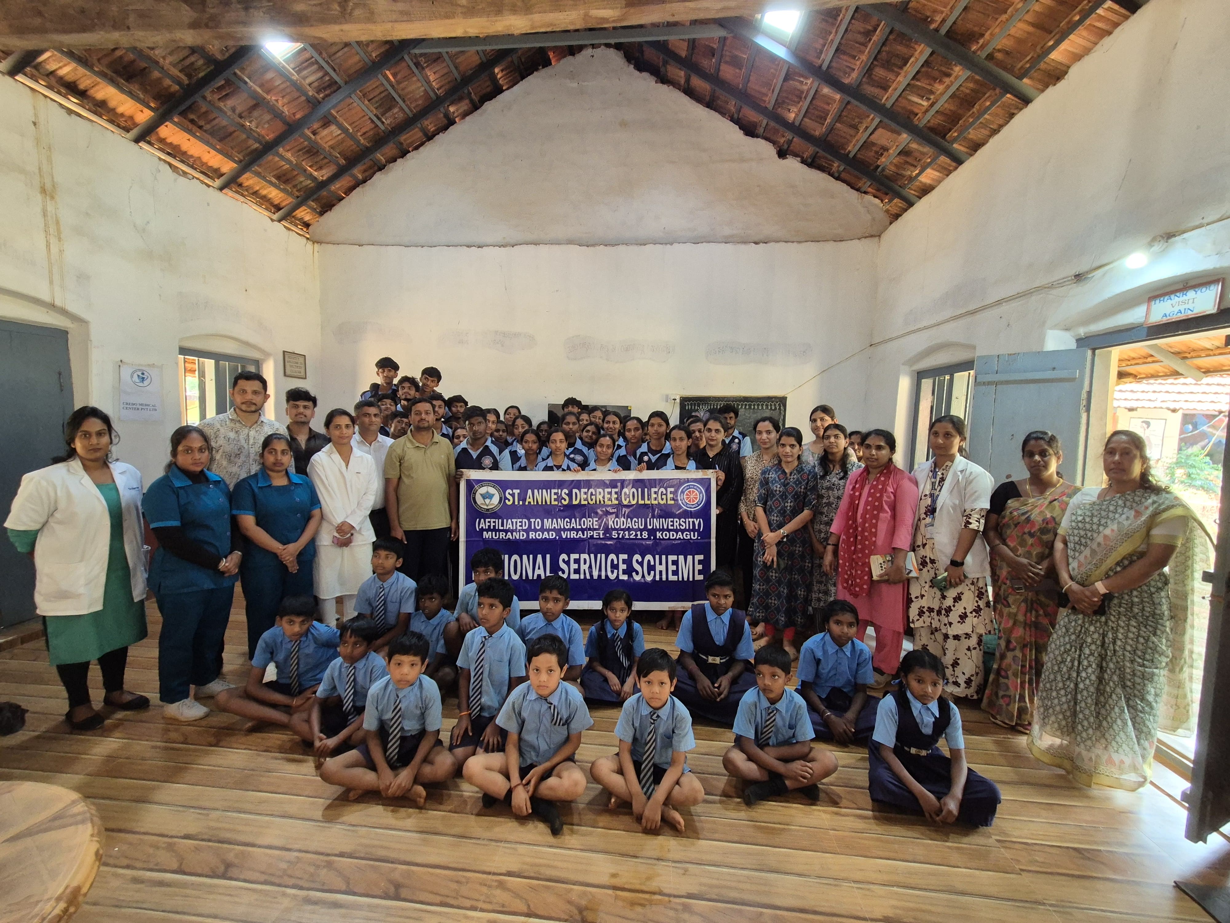 ಎನ್ ಎಸ್ ಎಸ್ ವಾರ್ಷಿಕ ಶಿಬಿರದ ಪ್ರಯುಕ್ತ ಆರೋಗ್ಯ ಜಾಗೃತಿ ಕಾರ್ಯಕ್ರಮದಡಿ ಈ ಆರೋಗ್ಯ ತಪಾಸಣಾ ಶಿಬಿರವನ್ನು ಆಯೋಜಿಸಲಾಗಿತ್ತು. ಸರ್ಕಾರಿ ಹಿರಿಯ ಪ್ರಾಥಮಿಕ ಶಾಲೆಯ ಮಕ್ಕಳು, ಶಿಬಿರಾರ್ಥಿಗಳು, ಶಿಕ್ಷಕರು, ಉಪನ್ಯಾಸಕರು ಹಾಗೂ ಗ್ರಾಮಸ್ಥರು ಈ ಶಿಬಿರದಲ್ಲಿ ಪಾಲ್ಗೊಂಡು ಆರೋಗ್ಯ, ದಂತ ಹಾಗೂ ಕಣ್ಣಿನ ತಪಾಸಣೆಯನ್ನು ಮಾಡಿಸಿದರು. ಎನ್ ಎಸ್ ಎಸ್ ಶಿಬಿರಾರ್ಥಿಗಳು ಸಾರ್ವಜನಿಕರಲ್ಲಿ ಆರೋಗ್ಯ ಜಾಗೃತಿ ಮೂಡಿಸಿದರು. ಈ ಸಂದರ್ಭ ಸೈಂಟ್ ಆನ್ಸ್ ಪದವಿ ಕಾಲೇಜಿನ ಪ್ರಾಂಶುಪಾಲರಾದ ತೃಪ್ತಿ ಬೋಪಣ್ಣ, ಎನ್ ಎಸ್ ಎಸ್ ಶಿಬಿರಾಧಿಕಾರಿ ಬಿ. ಎನ್. ಶಾಂತಿಭೂಷಣ್, ಕೊಡಗು ದಂತ ವೈದ್ಯಕೀಯ ಕಾಲೇಜಿನ ವೈದ್ಯರಾದ ಡಾ. ಪ್ರವೀಣ ಪಿ. ಗಾಂವ್ಕರ್, ಕ್ರೆಡೋ ಮೆಡಿಕಲ್ ಪ್ರೈವೇಟ್ ಲಿಮಿಟೆಡ್ ನ ವೈದ್ಯರಾದ ಡಾ. ರಕ್ಷಾ, ಡಾ. ಅಗರ್ವಾಲ್ ಕ್ಲಿನಿಕ್ ನ ನಿರ್ವಾಹಕರಾದ ಅರ್ಜುನ್ ದೇವಯ್ಯ, ಸಿಬ್ಬಂದಿಗಳು, ಶಾಲಾ ಮುಖ್ಯ ಶಿಕ್ಷಕಿ ಫ್ಯಾನ್ಸಿ ಲೋಬೋ ಮತ್ತಿತರರಿದ್ದರು.