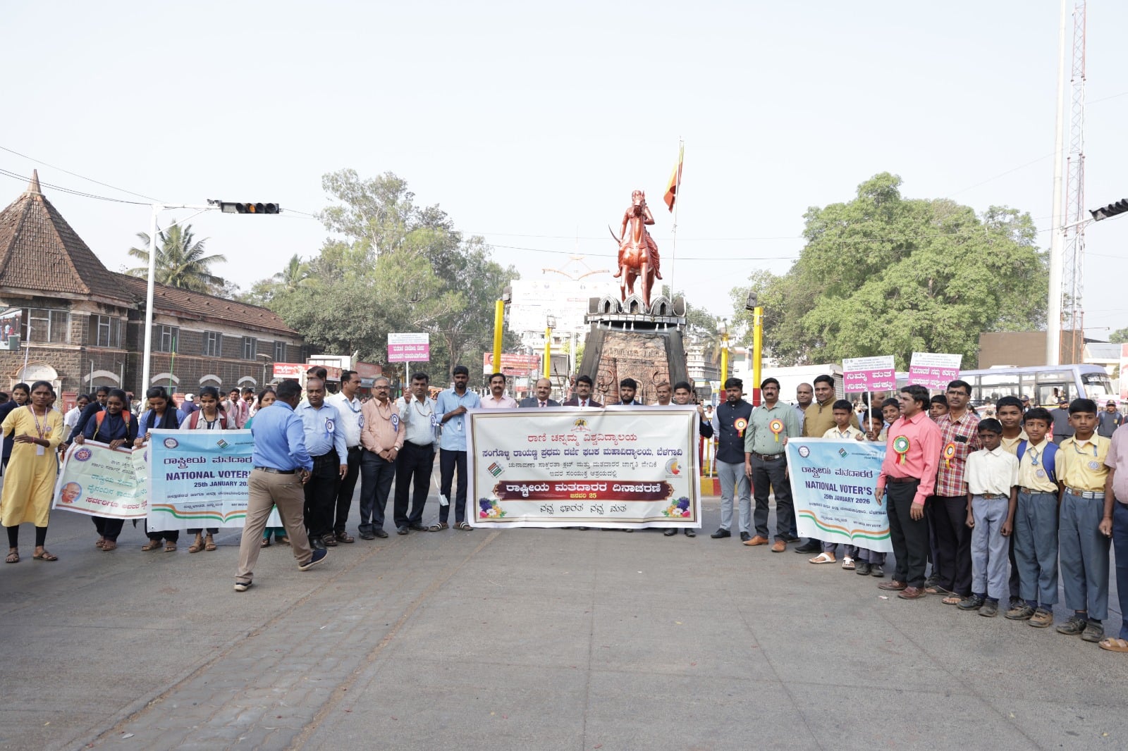 ಜಿಲ್ಲಾಧಿಕಾರಿಗಳ ಕಚೇರಿ ಆವರಣದಲ್ಲಿ 16ನೇ ರಾಷ್ಟ್ರೀಯ ಮತದಾರರ ದಿನಾಚರಣೆ-2026 ಪ್ರಯುಕ್ತ ಮತದಾನ ಕುರಿತು ವಿಶೇಷ ಅಭಿಯಾನಕ್ಕೆ ಜಿಲ್ಲಾ ಕಾನೂನು ಸೇವೆಗಳ ಪ್ರಾಧಿಕಾರದ ಸದಸ್ಯ ಕಾರ್ಯದರ್ಶಿ ಸಂದೀಪ ಪಾಟೀಲ ಚಾಲನೆ ನೀಡಿದರು.ಜಾಗೃತಿ ಜಾಥಾ ಚನ್ನಮ್ಮ ವೃತ್ತದಿಂದ ಕೊಲ್ಲಾಪುರ ಸರ್ಕಲ್ ಮಾರ್ಗವಾಗಿ ಕುಮಾರ ಗಂಧರ್ವ ರಂಗ ಮಂದಿರದವರೆಗೆ ತಲುಪಿತು. ಜಾಗೃತಿ ಜಾಥಾ ಕಾರ್ಯಕ್ರಮದಲ್ಲಿ ವಿವಿಧ ಕಾಲೇಜು ವಿದ್ಯಾರ್ಥಿಗಳು ನಮ್ಮ ಮತ, ನಮ್ಮ ಹಕ್ಕು, ಕಡ್ಡಾಯ ಮತದಾನ, ನಿಮ್ಮ ಮತ ನಿಮ್ಮ ಭವಿಷ್ಯ, ಹಣ ಪಡೆಯಬೇಡಿ ಮತ ಮಾರಬೇಡಿ ಎಂಬ ವಿವಿಧ ಜಾಗೃತಿ ಫಲಕಗಳನ್ನು ಪ್ರದರ್ಶಿಸಿದರು.-----
