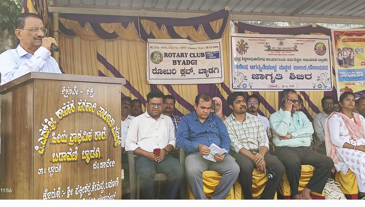 ವಿಶೇಷ ಚೇತನ ಮಕ್ಕಳಿಗೆ ರೋಟರಿಯಿಂದ ಸಹಕಾರ: ರೋಟರಿ ಸಂಸ್ಥೆ ಮಾಜಿ ಅಧ್ಯಕ್ಷ ಮಂಜುನಾಥ ಉಪ್ಪಾರ ಮಾತನಾಡಿ, ಹಿಂದಿನಿಂದಲೂ ಸಂಸ್ಥೆಯು ವಿಶೇಷಚೇತನ ಮಕ್ಕಳಿಗೆ ನಿರಂತರವಾಗಿ ಸಹಕಾರ ನೀಡುತ್ತಿದ್ದು ವೀಲಚೇರ್ ಸೇರಿದಂತೆ ವಿವಿಧ ಪರಿಕರಗಳನ್ನ ನೀಡುತ್ತಾ ಬಂದಿದೆ. ಮುಂದೆಯೂ ಸಹ ಇಂತಹ ಮಕ್ಕಳ ಶ್ರೇಯೋಭಿವೃದ್ಧಿಗೆ ಶ್ರಮಿಸಲಿದೆ ಎಂದರು.ಪ್ರಾಸ್ತಾವಿಕವಾಗಿ ಮಾತನಾಡಿದ ಕ್ಷೇತ್ರ ಶಿಕ್ಷಣಾಧಿಕಾರಿ ಎಸ್.ಜಿ.ಕೋಟಿ, ಜಿಲ್ಲೆಯಲ್ಲಿ ವಿಶೇಷ ಚೇತನರಿಗೆ ಯುಡಿಐಡಿ ಕಾರ್ಡ್ ನೀಡುವಲ್ಲಿ ಬ್ಯಾಡಗಿ ತಾಲೂಕು ಜಿಲ್ಲೆಯಲ್ಲಿ ಮೊದಲ ಸ್ಥಾನದಲ್ಲಿದೆ. ಆರೋಗ್ಯ ಇಲಾಖೆ ಸಿಬ್ಬಂದಿ ಸಹಕಾರದಿಂದಾಗಿ ಇದು ಸಾಧ್ಯವಾಗಿದ್ದು, ಇವರ ಸಾಧನೆಯನ್ನು ಕ್ಷೇತ್ರ ಶಿಕ್ಷಣಾಧಿಕಾರಿಗಳ ಕಾರ್ಯಾಲಯವು ಮುಕ್ತವಾಗಿ ಸ್ವಾಗತಿಸುತ್ತದೆ ಎಂದರು.