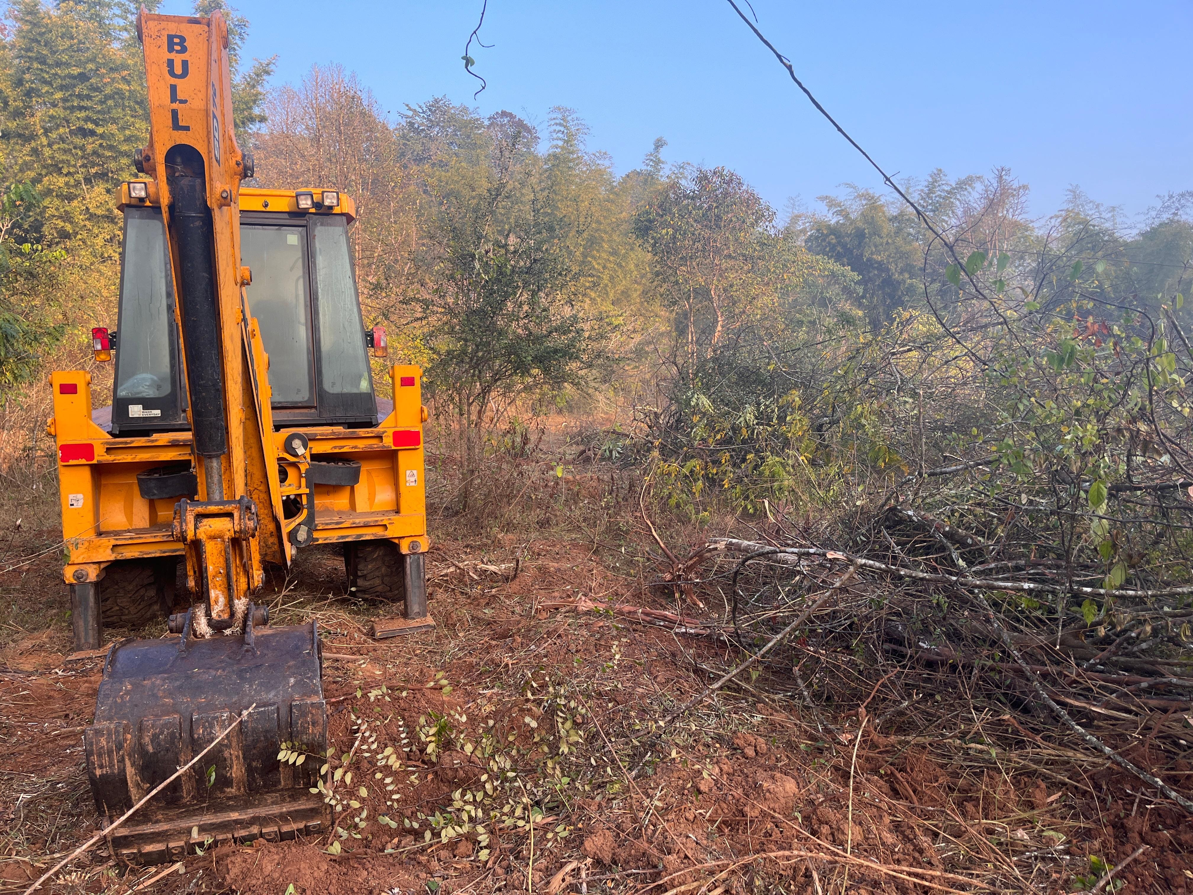 ಅಭಯಾರಣ್ಯದಲ್ಲಿ ಜೆಸಿಬಿ ಬಳಕೆ ಮಾಡಿ ಕಳೆ ಕಿತ್ತು ಹಾಕುತ್ತಿರುವುದು.