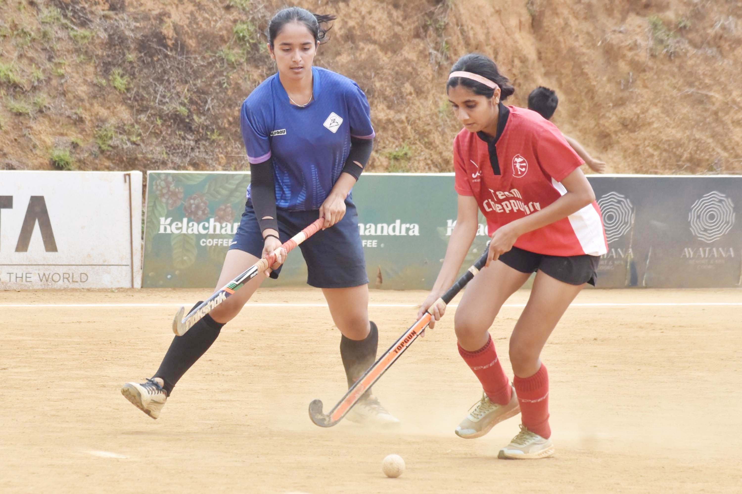 ಇಲ್ಲಿನ ಜನರಲ್ ಕೆ..ಎಸ್. ತಿಮ್ಮಯ್ಯ ಕ್ರೀಡಾಂಗಣದಲ್ಲಿ ಆಯೋಜಿಸಲಾಗಿರುವ ಚೇನಂಡ ಕೊಡವ ಕೌಟುಂಬಿಕ ಹಾಕಿ ಪಂದ್ಯಾವಳಿಯಲ್ಲಿ ಮಂಗಳವಾರ ನಡೆದ ಫ್ರೀ ಕ್ವಾಟರ್ ಫೈನಲ್ ಪಂದ್ಯಗಳಲ್ಲಿ