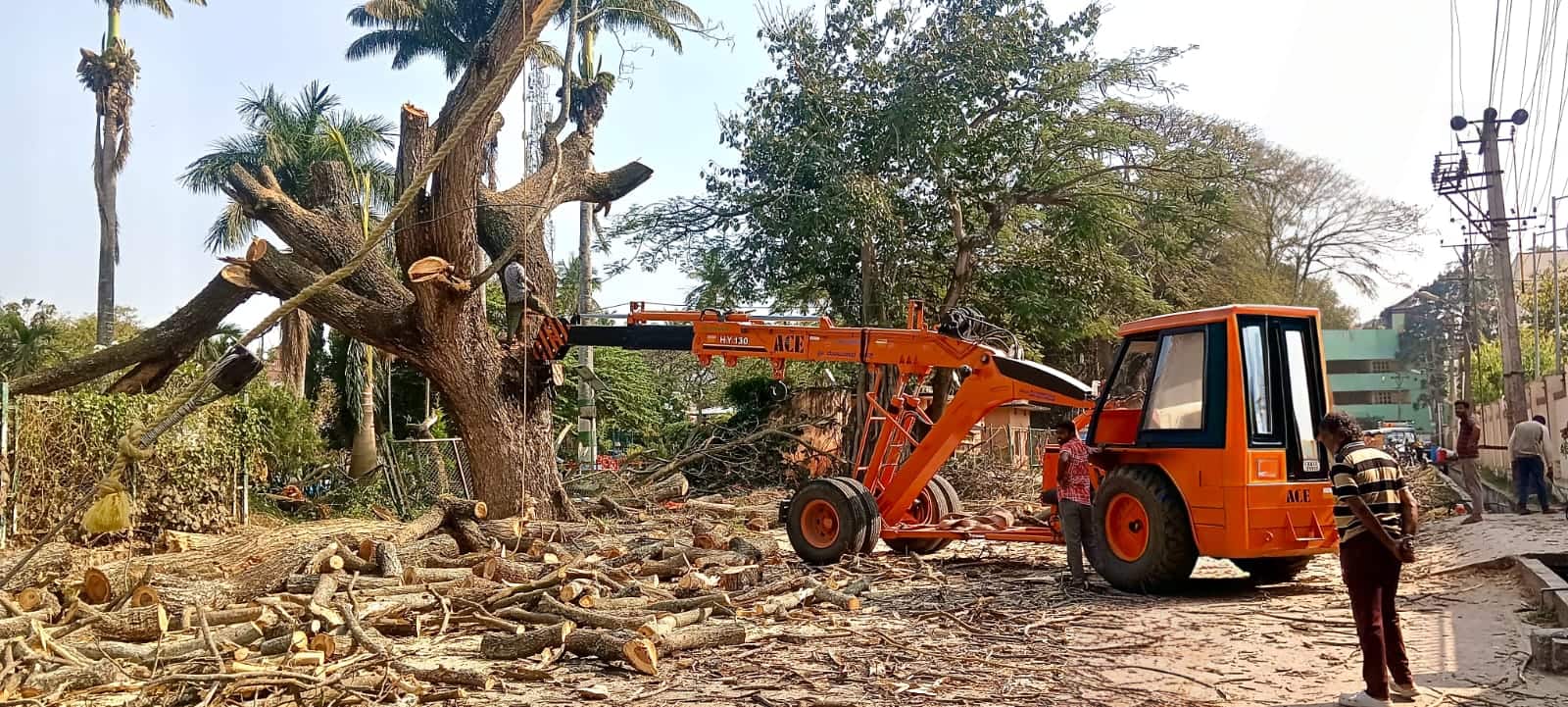 ಪಟ್ಟಣದ ಮಹಾರಾಜ ಪಾರ್ಕ್ ಪಕ್ಕದಲ್ಲಿದ್ದ ಹತ್ತಾರು ವರ್ಷಗಳಿಂದ ಈ ಮರಗಳು ಬೃಹದಾಕಾರವಾಗಿ ಬೆಳೆದು ದೊಡ್ಡ ದೊಡ್ಡ ಕೊಂಬೆಗಳು ಸುತ್ತಲೂ ಹರಡಿಕೊಂಡಿದ್ದವು. ಮರವು ಹಳೆಯಾಗಿದ್ದು, ಈ ಮರದಲ್ಲಿನ ಹಲವು ಕೊಂಬೆಗಳು ಓಡಾಡುವ ಸಾರ್ವಜನಿಕರು ಹಾಗೂ ವಾಹನಗಳ ಮೇಲೆ ಬಿದ್ದು ಅವಘಡ ಸಂಭವಿಸುವ ಸಾಧ್ಯತೆ ಹೆಚ್ಚಿತ್ತು. ಜತೆಗೆ ಕಳೆದ ವಾರದ ಹಿಂದೆ ಸಂಚರಿಸುತ್ತಿದ್ದ ವಾಹನದ ಮೇಲೆ ಸಣ್ಣ ಕೊಂಬೆಗಳು ಬಿದ್ದು ಅವಘಡ ಸೃಷ್ಟಿಯಾಗಿತ್ತು. ಆದರೆ ಯಾವುದೇ ಅನಾಹುತ ನಡೆದಿರಲಿಲ್ಲ. ಈ ಘಟನೆ ಸಂಬಂಧ ಸಂಸದ ಶ್ರೇಯಸ್ ಎಂ.ಪಟೇಲ್ ಅವರಿಗೆ ಕಾರ್ಯಕರ್ತರು ಮತ್ತು ವಾಹನ ಚಾಲಕರು ದೂರು ನೀಡಿದ ಹಿನ್ನೆಲೆಯಲ್ಲಿ ಸಂಸದರು ಅರಣ್ಯ ಇಲಾಖೆ ಅಧಿಕಾರಿಗಳಿಗೆ ಕರೆ ಮಾಡಿ ಈ ಬೃಹತ್ ಮರದ ಕೊಂಬೆಗಳು ಕೆಳಗೆ ಬೀಳುತ್ತಿರುವುದನ್ನು ತಪ್ಪಿಸಲು ಕ್ರಮಕೈಗೊಳ್ಳಬೇಕೆಂದು ಮಾಹಿತಿ ನೀಡಿದರು ಎಂಬ ಸೂಚನೆ ಪ್ರಕಾರ ಮರಗಳನ್ನು ಅರಣ್ಯ ಇಲಾಖೆ ಸಿಬ್ಬಂದಿ ತೆರವುಗೊಳಿದರು. ತೆರವು ಕಾರ್ಯದ ವೇಳೆ ವಾಹನ ಸಂಚಾರವನ್ನು ಸ್ಥಗಿತಗೊಳಿಸಲಾಗಿತ್ತು ಹಾಗೂ ಪಟ್ಟಣದ ವಿದ್ಯುತ್ ಸಂಪರ್ಕ ಕಡಿತಗೊಳಿಸಲಾಗಿತ್ತು.