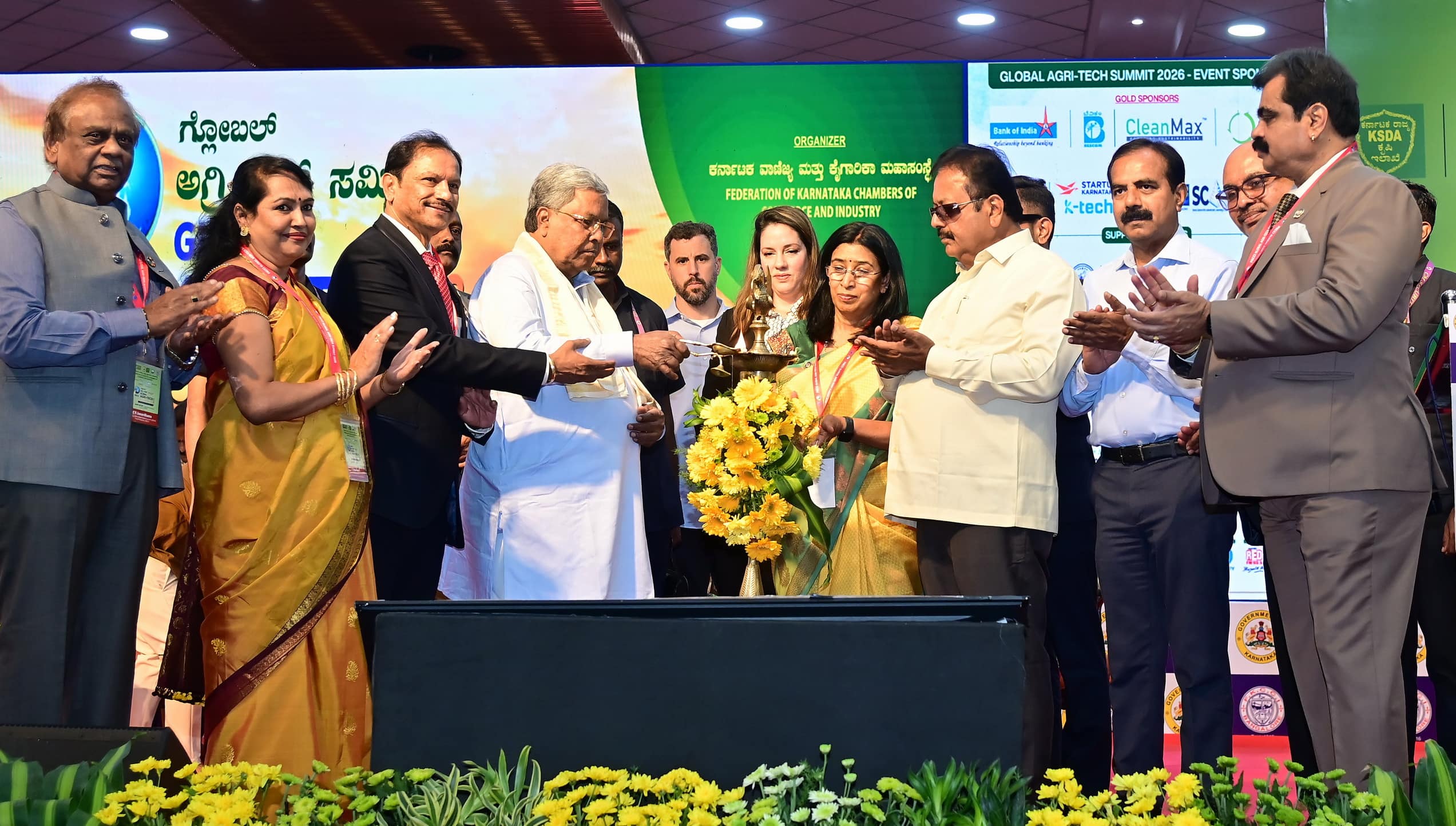ಎಫ್ಕೆಸಿಸಿಐನಿಂದ ಶುಕ್ರವಾರ ಅರಮನೆ ಮೈದಾನದಲ್ಲಿ ಏರ್ಪಡಿಸಲಾಗಿದ್ದ ಗ್ಲೋಬಲ್ ಅಗ್ರಿಟೆಕ್ ಸಮ್ಮಿಟ್-2026ಕ್ಕೆ ಚಾಲನೆ ನೀಡಿ ಸಿದ್ದರಾಮಯ್ಯ ಮಾತನಾಡಿದರು.