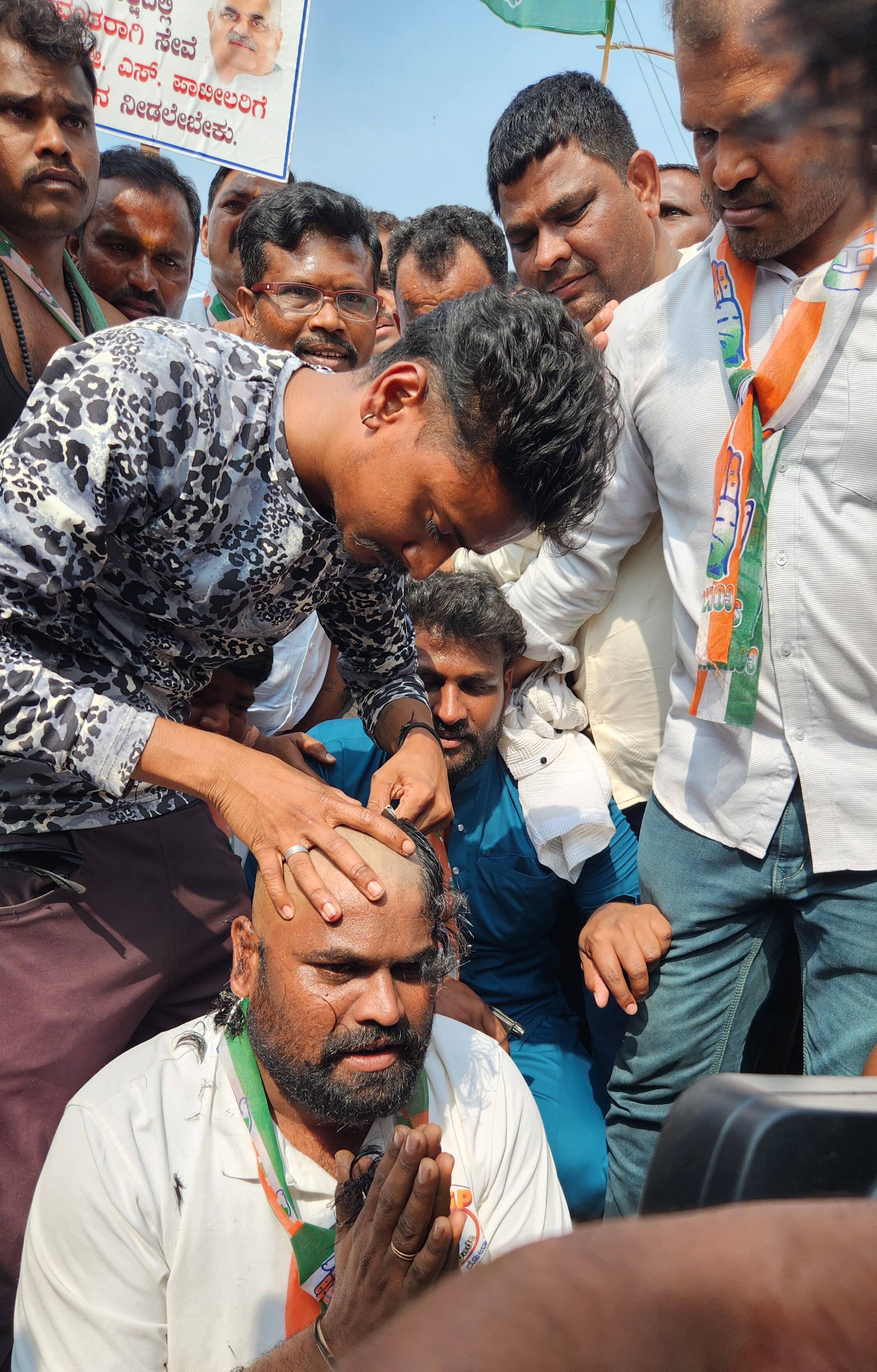 ಪಾದಯಾತ್ರೆಯೂ ಮುಲ್ಲನಬಾವಿ ತಲುಪುತಿದ್ದಂತೆ ಅಭಿಮಾನಿ ಶಹಬ್ಬಾಜ ಗದಗಕರ ಕೇಶಮುಂಡನ ಮಾಡಿಕೊಳ್ಳುವ ಮೂಲಕ ಶಾಸಕ ಜಿ.ಎಸ್. ಪಾಟೀಲರಿಗೆ ಸಚಿವ ಸ್ಥಾನ ನೀಡುವಂತೆ ಒತ್ತಾಯಿಸಿದರು.
