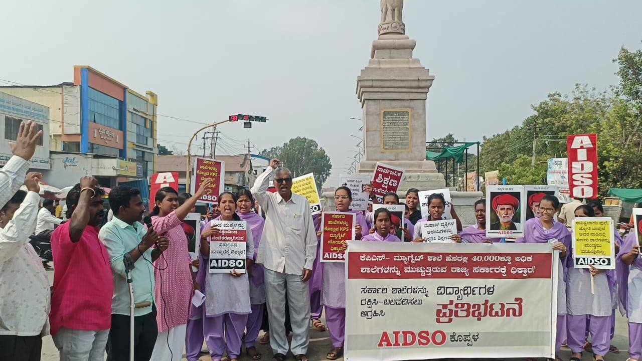 ಎಐಡಿಎಸ್ಒ ರಾಜ್ಯ ಕಾರ್ಯದರ್ಶಿ ಮಂಡಳಿ ಸದಸ್ಯ ಸಿಂಧೂ ಕೌದಿ ಮಾತನಾಡಿ, ರಾಜ್ಯ ಸರ್ಕಾರ ಕೆಪಿಎಸ್ ಮ್ಯಾಗ್ನೆಟ್ ಹೆಸರಿನಲ್ಲಿ 40,000ಕ್ಕೂ ಹೆಚ್ಚು ಸರ್ಕಾರಿ ಶಾಲೆ ಮುಚ್ಚಲು ಸಿದ್ಧತೆ ನಡೆಸಿರುವುದರ ಹಿಂದೆ ಉಚಿತ ಮತ್ತು ಸಾರ್ವತಿಕ ಶಿಕ್ಷಣದ ನಮ್ಮ ನವೋದಯ ಚಿಂತಕರು ಕ್ರಾಂತಿಕಾರಿಗಳು ಕಷ್ಟಪಟ್ಟು ಗಳಿಸಿದ ವ್ಯವಸ್ಥೆ ನಾಶಪಡಿಸುವ ಒಂದು ಪ್ರಯತ್ನ ಅಡಗಿದೆ ಎಂದರು.