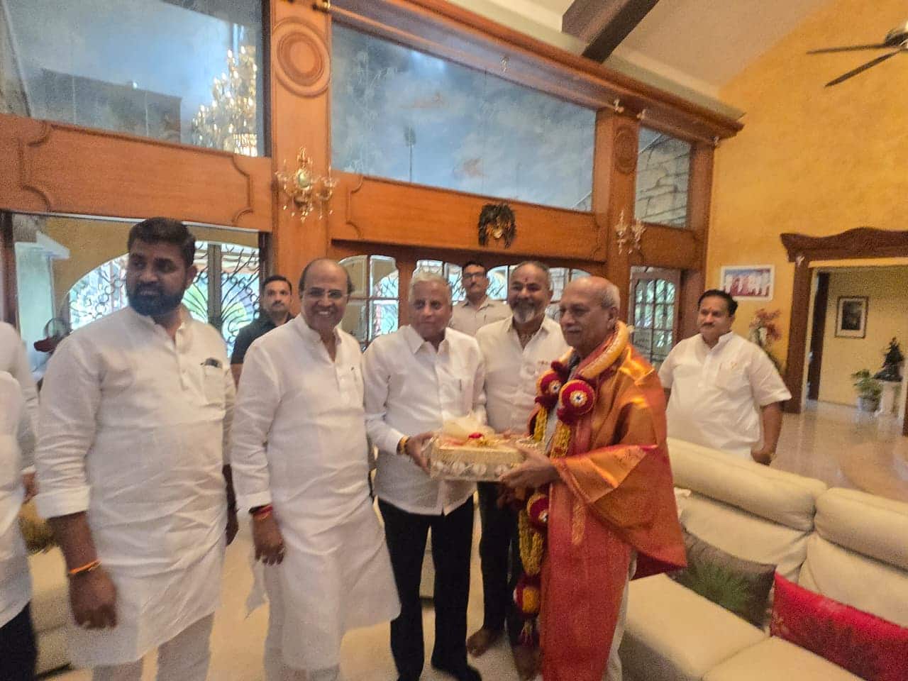 ಕನ್ನಡಪ್ರಭ ವಾರ್ತೆ ಬೆಳಗಾವಿ ಡಾ.ಪ್ರಭಾಕರ ಕೋರೆ ಅವರಿಗೆ ಭಾರತ ಸರಕಾರ ಪ್ರತಿಷ್ಠಿತ ನಾಗರಿಕ ಸನ್ಮಾನವಾದ ಪದ್ಮಶ್ರೀ ಪ್ರಶಸ್ತಿ ಬಂದ ಹಿನ್ನಲೆಯಲ್ಲಿ ರೈಲ್ವೆ ಇಲಾಖೆ ರಾಜ್ಯ ಸಚಿವ ವಿ.ಸೋಮಣ್ಣ ಅವರ ಸ್ವಗೃಹಕ್ಕೆ ಆಗಮಿಸಿ ಅಭಿನಂದಿಸಿದರು. ಈ ವೇಳೆ ಕುಶಲೋಪಹರಿ ವಿಚಾರಿಸಿದ ವಿ.ಸೋಮಣ್ಣ ಅವರು ಶಿಕ್ಷಣ, ಕೃಷಿ ಹಾಗೂ ಆರೋಗ್ಯ ಕ್ಷೇತ್ರದಲ್ಲಿ ಡಾ.ಪ್ರಭಾಕರ ಕೋರೆಯವರ ಕೊಡುಗೆ ಅಪಾರವಾದುದು. ಅವರ ಸಮಾಜಮುಖಿ ಸೇವೆ, ಧಾರ್ಮಿಕ ಮನಸ್ಸು ಅವರನ್ನು ಎತ್ತರಕ್ಕೆ ಬೆಳೆಸಿದೆ.