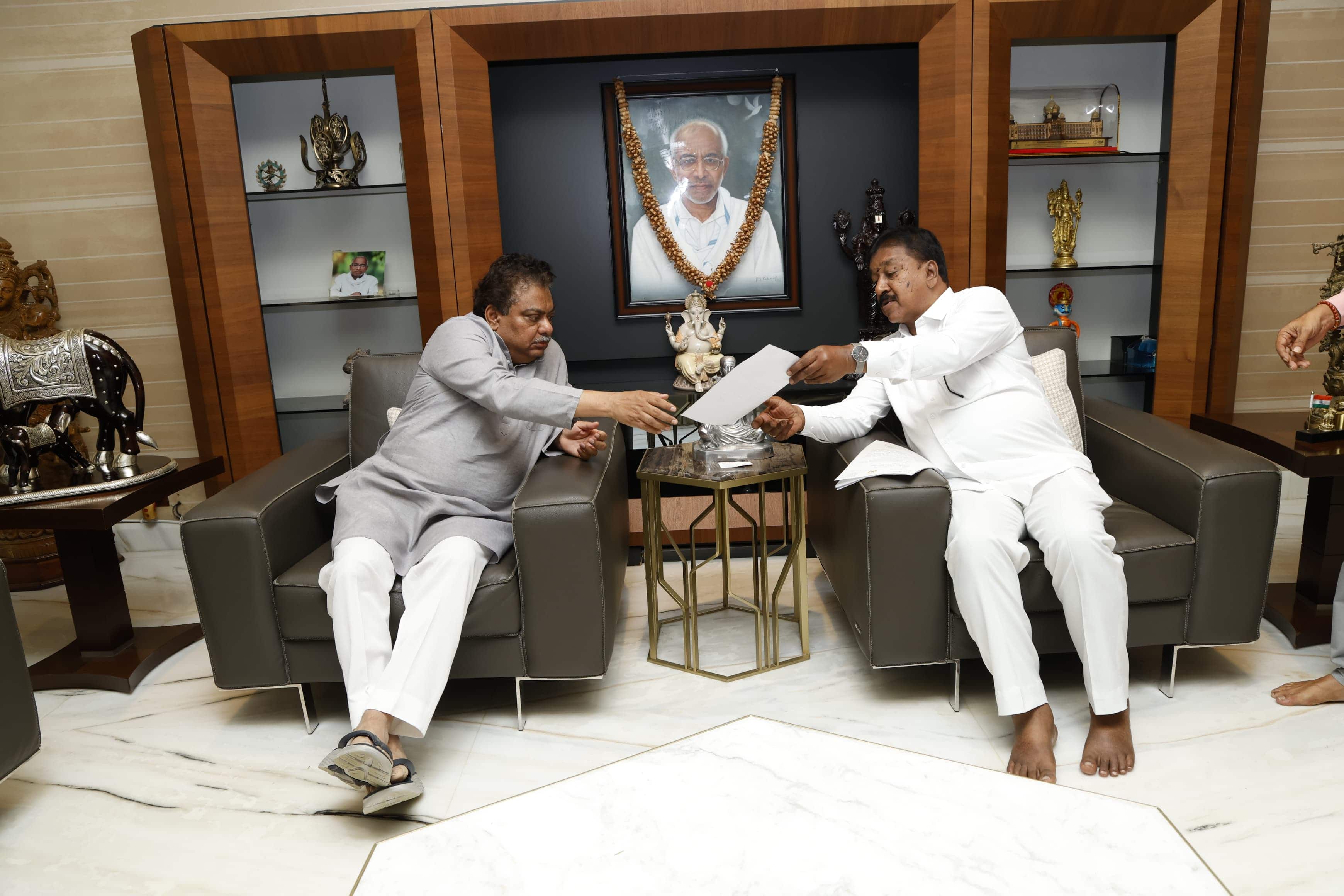 ಬೆಂಗಳೂರಿನಲ್ಲಿ ಕೈಗಾರಿಕಾ ಸಚಿವರನ್ನು ಶಾಸಕ ಎ.ಆರ್. ಕೃಷ್ಣಮೂರ್ತಿ ಅವರು ಭೇಟಿಯಾಗಿ ಮನವಿ ಸಲ್ಲಿಸಿದರು.