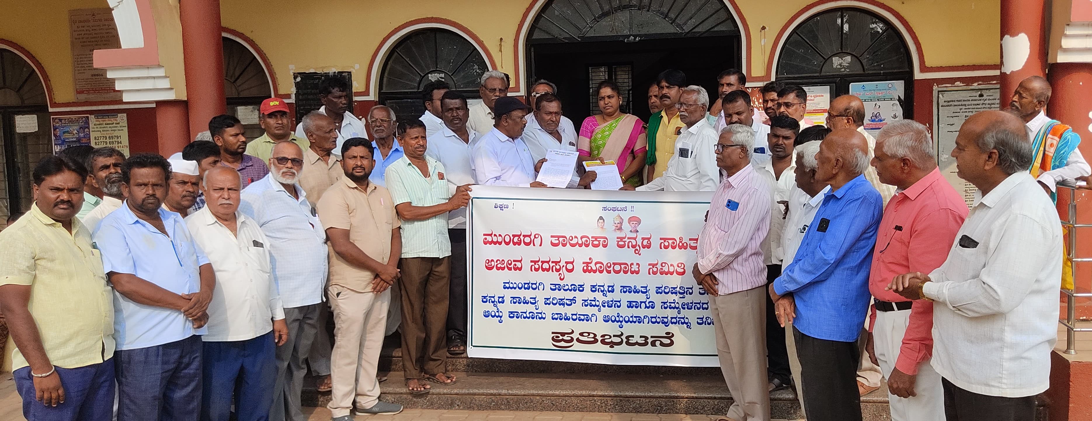 ಮುಂಡರಗಿ: ತಾಲೂಕು ಕನ್ನಡ ಸಾಹಿತ್ಯ ಪರಿಷತ್ತಿನಿಂದ ತಾಲೂಕು ಕನ್ನಡ ಸಾಹಿತ್ಯ ಸಮ್ಮೇಳನ ಹಾಗೂ ಸಮ್ಮೇಳನದ ಸರ್ವಾಧ್ಯಕ್ಷರ ಆಯ್ಕೆಯನ್ನು ಕಾನೂನುಬಾಹಿರವಾಗಿ ಮಾಡಲಾಗಿದೆ ಎಂದು ಆರೋಪಿಸಿ ಜ. 28ರಂದು ಮುಂಡರಗಿ ಬಂದ್ ಕರೆ ನೀಡಲಾಗುವುದು ಎಂದು ತಾಲೂಕು ಕನ್ನಡ ಸಾಹಿತ್ಯ ಪರಿಷತ್ ಅಜೀವ ಸದಸ್ಯರ ಹೋರಾಟ ಸಮಿತಿ ವತಿಯಿಂದ ಶುಕ್ರವಾರ ಮನವಿ ಸಲ್ಲಿಸಿದೆ.