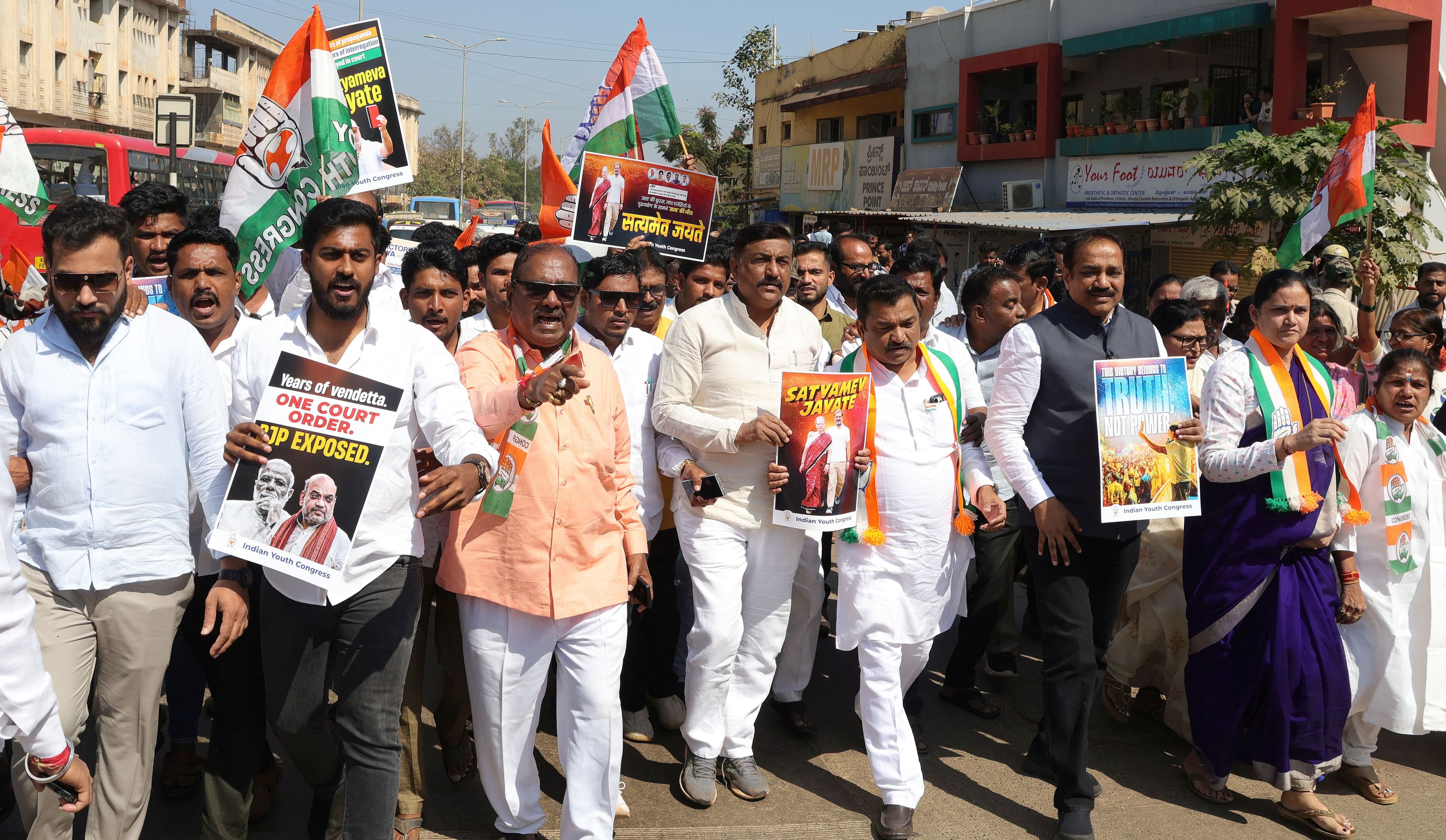 ಇಲ್ಲಿನ ಕಾರವಾರ ರಸ್ತೆಯ ಕಾಂಗ್ರೆಸ್ ಕಚೇರಿಯಿಂದ ಆರಂಭವಾದ ಪ್ರತಿಭಟನಾ ಮೆರವಣಿಗೆಯಲ್ಲಿ ನೂರಾರು ಕಾರ್ಯಕರ್ತರು ಪಾಲ್ಗೊಂಡು ಪ್ರಧಾನಿ ನರೇಂದ್ರ ಮೋದಿ ಹಾಗೂ ಬಿಜೆಪಿ ವಿರುದ್ಧ ಘೋಷಣೆ ಕೂಗಿ ಆಕ್ರೋಶ ವ್ಯಕ್ತಪಡಿಸಿದರು. ಬಿಜೆಪಿ ಕಚೇರಿಯ ಅನತಿ ದೂರದಲ್ಲಿ ಪೊಲೀಸರು ಹಾಕಲಾಗಿದ್ದ ಬ್ಯಾರಿಕೇಡ್ ವರೆಗೆ ಆಗಮಿಸಿದ ಕೈ ಕಾರ್ಯಕರ್ತರನ್ನು ತಡೆಯಲು ಯತ್ನಿಸಿದ ಪೊಲೀಸರೊಂದಿಗೆ ಕೆಲಕಾಲ ವಾಗ್ವಾದ ನಡೆಸಿ ಬ್ಯಾರಿಕೇಡ್ ಹಾರಲು ಯತ್ನಿಸಿದರು. ಈ ವೇಳೆ ಪೊಲೀಸರು 50ಕ್ಕೂ ಹೆಚ್ಚು ಜನರನ್ನು ವಶಕ್ಕೆ ಪಡೆದರು.ಈ ವೇಳೆ ಮಹಾನಗರ ಕಾಂಗ್ರೆಸ್ ಜಿಲ್ಲಾಧ್ಯಕ್ಷ ಅಲ್ತಾಫ ಹಳ್ಳೂರ ಮಾತನಾಡಿ, ನ್ಯಾಷನಲ್ ಹೆರಾಲ್ಡ್ ಪ್ರಕರಣದಲ್ಲಿ ದೆಹಲಿ ನ್ಯಾಯಾಲಯವು ಜಾರಿ ನಿರ್ದೇಶನಾಲಯ ಸಲ್ಲಿಸಿದ್ದ ದೂರಿನ ಬಗ್ಗೆ ಯಾವುದೇ ಕ್ರಮ ತೆಗೆದುಕೊಳ್ಳಲು ನಿರಾಕರಿಸುವ ಮೂಲಕ ಬಿಜೆಪಿ ಬಣ್ಣವನ್ನು ಬಯಲು ಮಾಡಿದೆ. ಇದೇ ರೀತಿ ಕಾಂಗ್ರೆಸ್ ನಾಯಕರ ಮೇಲೆ ಬಿಜೆಪಿ ಸುಳ್ಳು ಪ್ರಕರಣ ದಾಖಲಿಸುವ ಮೂಲಕ ಮಾನಸಿಕ ಹಿಂಸೆ ನೀಡುತ್ತಿದೆ. ನ್ಯಾಯಾಲಯವು ಸತ್ಯದ ಪರವಾಗಿ ತೀರ್ಪು ನೀಡುವ ಮೂಲಕ ಬಿಜೆಪಿಗೆ ತಕ್ಕ ಪಾಠ ಕಲಿಸಿದೆ ಎಂದರು.