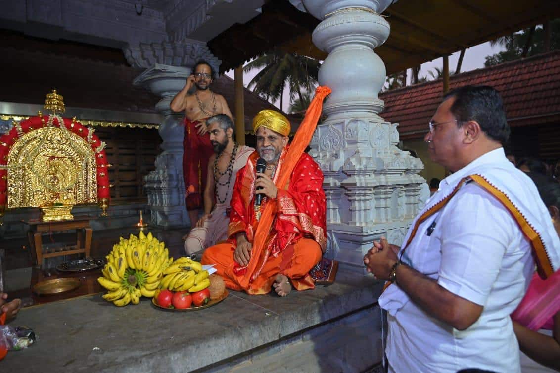 ಉಡುಪಿ: ಪಡುಬಿದ್ರಿ ಸಮೀಪದ ಹೆಜಮಾಡಿ ಗ್ರಾಮದ ಶ್ರೀ ಮಹಾಲಿಂಗೇಶ್ವರ ದೇವರ ಬಲಿ ಮೂರ್ತಿಗೆ ಉಡುಪಿ ಶ್ರೀ ಕೃಷ್ಣ ಮಠದ ವಿಶ್ವಗೀತಾ ಪರ್ಯಾಯೋತ್ಸವದ ಸ್ಮರಣಾರ್ಥವಾಗಿ ಭಕ್ತಿಪೂರ್ವಕವಾಗಿ ಸ್ವರ್ಣ ಅಟ್ಟೆ ಹಾಗೂ ಪ್ರಭಾವಳಿಯನ್ನು ಸಮರ್ಪಿಸಲಾಯಿತು. ಪುತ್ತಿಗೆ ಮಠದ ಶ್ರೀ ಸುಗುಣೇಂದ್ರ ತೀರ್ಥ ಶ್ರೀಪಾದರು ಹಾಗೂ ಭಗವದ್ಭಕ್ತರ ಸಹಕಾರದಿಂದ ಈ ಸ್ವರ್ಣಖಚಿತ ಅಟ್ಟೆ–ಪ್ರಭಾವಳಿಯನ್ನು ದೇಣಿಗೆಯಾಗಿ ನೀಡಲಾಗಿದ್ದು, ಈ ಸಂಬಂಧ ವಿಶೇಷ ಧಾರ್ಮಿಕ ವಿಧಿ ವಿಧಾನಗಳು ನೆರವೇರಿದವು. ಅಶ್ವತ್ಥ ಕಟ್ಟೆಯಿಂದ ಆರಂಭವಾದ ಭವ್ಯ ಮೆರವಣಿಗೆ ಗ್ರಾಮದ ಪ್ರಮುಖ ರಸ್ತೆಗಳಲ್ಲಿ ಸಂಚರಿಸಿ ದೇವಸ್ಥಾನಕ್ಕೆ ಆಗಮಿಸಿ ದೇವಾಲಯಕ್ಕೆ ಪ್ರದಕ್ಷಿಣೆ ಹಾಕಿತು.