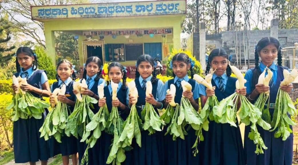 ಕುರ್ಲಿ ಸರಕಾರಿ ಹಿರಿಯ ಪ್ರಾಥಮಿಕ ಶಾಲೆ ಆವರಣದಲ್ಲಿ ಬೆಳೆದ ಸೊಪ್ಪು, ತರಕಾರಿ ಬಿಸಿಯೂಟಕ್ಕೆ ಬಳಕೆ