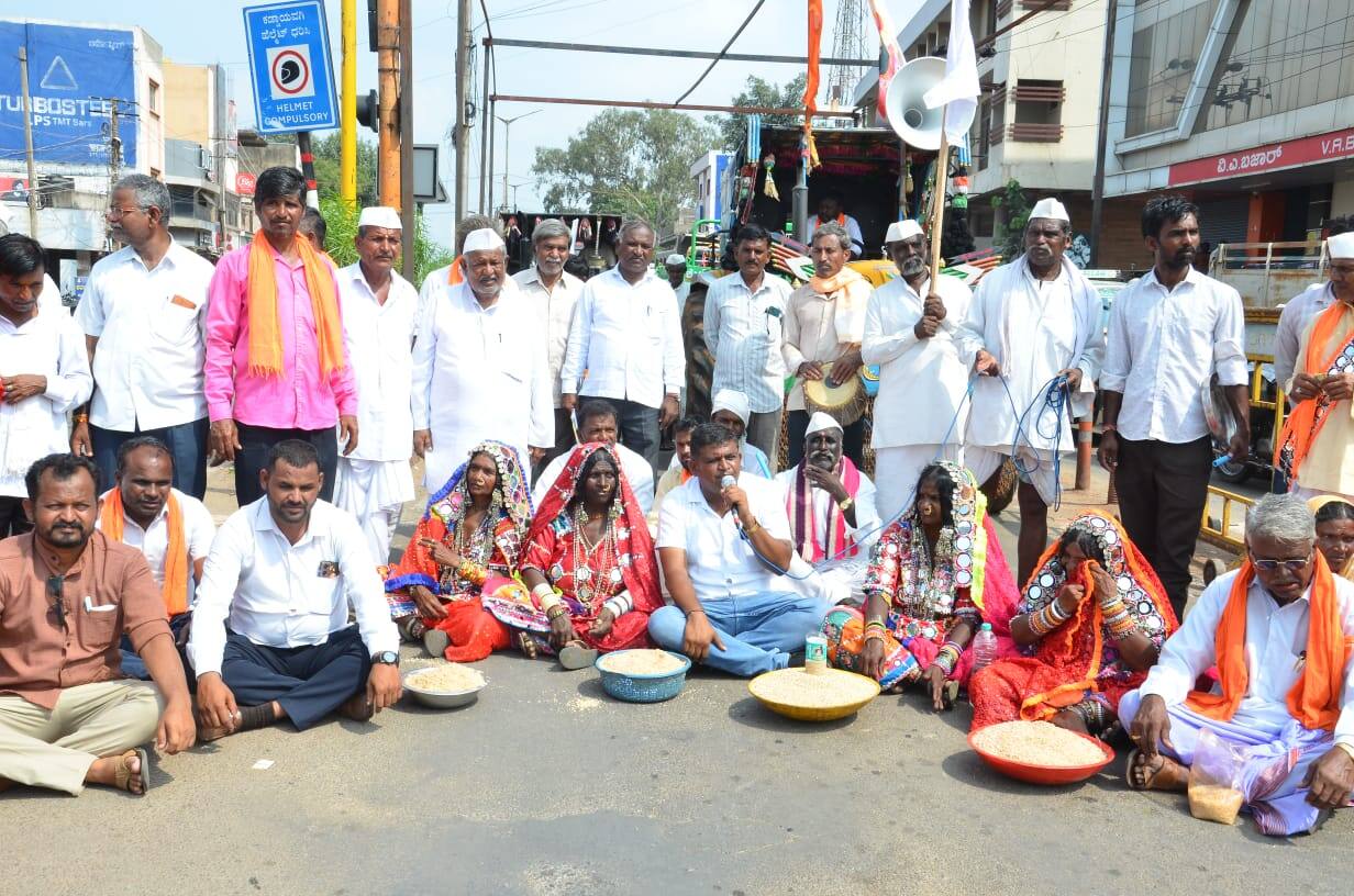 ಗದಗ: ಪರಿಶಿಷ್ಟ ಜಾತಿಗಳಲ್ಲಿನ ಅವೈಜ್ಞಾನಿಕ ಒಳಮೀಸಲಾತಿ ವರ್ಗೀಕರಣದ ವಿರುದ್ಧವಾಗಿ ಕರ್ನಾಟಕ ಬಂಜಾರ ಹಕ್ಕು ಸಂರಕ್ಷಣಾ ಸಮಿತಿ ಹಾಗೂ ಜಿಲ್ಲಾ ಬಂಜಾರ ಸಮುದಾಯದ ವಿವಿಧ ಸಂಘಟನೆಗಳ ಆಶ್ರಯದಲ್ಲಿ ನಡೆದ ಬೃಹತ್ ಪ್ರತಿಭಟನೆ ಹಾಗೂ ಅನಿರ್ದಿಷ್ಟಾವಧಿಯ ಅಹೋರಾತ್ರಿ ಧರಣಿಯಲ್ಲಿ ಬಂಜಾರರು ಲವಣ (ಉಪ್ಪು) ಮಾರಿ ಆಕ್ರೋಶ ವ್ಯಕ್ತಪಡಿಸಿದರು.ಜಿಲ್ಲೆಯ 72 ತಾಂಡಾಗಳ ಪೈಕಿ ನಿಗದಿತ ವೇಳಾಪಟ್ಟಿಯಂತೆ ಯಲಿಶಿರುಂಜ, ಅತ್ತಿಕಟ್ಟಿ ತಾಂಡಾ, ಬೂದಿಹಾಳ, ಕುಂದ್ರಳ್ಳಿ, ಯಲ್ಲಾಪುರ ತಾಂಡಾ, ನಾಗರಸಕೊಪ್ಪ, ಕಣವಿ ತಾಂಡಾಗಳ ಸಾವಿರಾರು ಬಂಜಾರರು ಪ್ರತಿಭಟನೆಯಲ್ಲಿ ಭಾಗವಹಿಸಿದ್ದರು.ಪ್ರತಿಭಟನಾಕಾರರು ಕಿತ್ತೂರು ರಾಣಿ ಚೆನ್ನಮ್ಮ ವೃತ್ತದಿಂದ ಜಿಲ್ಲಾಧಿಕಾರಿಗಳ ಕಚೇರಿವರೆಗೆ ಲವಣವನ್ನು (ಉಪ್ಪು) ಎತ್ತಿನಬಂಡಿಯಲ್ಲಿ ತಂದು, ಅಲ್ಲಲ್ಲಿ ಕುಳಿತು ಉಪ್ಪನ್ನು ಮಾರುತ್ತಾ ಬಂಜಾರ ಜನಾಂಗ ಆರ್ಥಿಕವಾಗಿ ಮತ್ತು ಶೈಕ್ಷಣಿಕವಾಗಿ ಹಿಂದುಳಿದ ಸಮುದಾಯವೆಂದು ತಮ್ಮ ಹಿಂದಿನ ಕಸಬನ್ನು ಮಾಡುತ್ತಾ ಸರ್ಕಾರದ ವಿರುದ್ಧ ಘೋಷಣೆಗಳನ್ನು ಕೂಗಿ, ಒಳಮೀಸಲಾತಿ ವರ್ಗೀಕರಣದಲ್ಲಿ ಸರ್ಕಾರ ಬಂಜಾರ ಸಮುದಾಯಕ್ಕೆ ಘೋರ ಅನ್ಯಾಯ ಮಾಡಿದೆ ಎಂದು ಖಂಡಿಸಿದರು.ಕರ್ನಾಟಕ ಬಂಜಾರ ಹಕ್ಕು ಸಂರಕ್ಷಣಾ ಸಮಿತಿಯ ರಾಜ್ಯ ಪ್ರಧಾನ ಕಾರ್ಯದರ್ಶಿ ರವಿಕಾಂತ್ ಅಂಗಡಿ ಮಾತನಾಡಿ, ಬಂಜಾರ ಜನಾಂಗ ಶೈಕ್ಷಣಿಕವಾಗಿ ಮತ್ತು ಆರ್ಥಿಕವಾಗಿ ಹಿಂದುಳಿದಿದ್ದು, ಹಿಂದಿನ ಕಾಲದಲ್ಲಿ ಬಂಜಾರ ಜನಾಂಗ ಊರಿಂದ ಊರಿಗೆ ಹೋಗಿ ತಮ್ಮ ಒಂದೊತ್ತಿನ ಚೀಲವನ್ನು ತುಂಬಿಸಲು ಲವಣವನ್ನು ಮಾರಿ ಜೀವನ ಸಾಗಿಸುತ್ತಿದ್ದರು. ಆದರೆ ಸರ್ಕಾರ ಪರಿಶಿಷ್ಟ ಜಾತಿಗಳ ಅವೈಜ್ಞಾನಿಕ ಒಳಮೀಸಲಾತಿ ವರ್ಗೀಕರಣ ಮಾಡಿ ಬಂಜಾರ ಸಮುದಾಯದ ಭವಿಷ್ಯಕ್ಕೆ ಮರಣಶಾಸನ ಬರೆದಿದೆ. ಹಾಗಾಗಿ ಸರ್ಕಾರ ಬಂಜಾರ ಸಮುದಾಯಕ್ಕೆ ಆಗಿರುವ ಅನ್ಯಾಯವನ್ನು ಕೂಡಲೇ ಸರಿಪಡಿಸಬೇಕು ಎಂದು ಆಗ್ರಹಿಸಿದರು.ಕೆ.ಸಿ. ನಭಾಪುರ, ಐ.ಎಸ್. ಪೂಜಾರ, ಟಿ.ಡಿ. ಪೂಜಾರ, ಧನುರಾಮ ತಂಬೂರಿ, ಕೃಷ್ಣಪ್ಪ ಲಮಾಣಿ, ಸಂತೋಷ ಪವಾರ, ಆಗ್ರಪ್ಪ ನಾಯಕ, ಚೆನ್ನಪ್ಪ ಕಾರಭಾರಿ, ಶಿವಪ್ಪ ಲಮಾಣಿ, ಶಶಿಕುಮಾರ ಜಾಧವ, ಧನ್ನುರಾಮ ತಂಬೂರಿ, ರಮೇಶ ಪವಾರ, ಕಿರಣ್ ರಾಠೋಡ, ಭೀಮಪ್ಪ ನಾಯಕ, ಭೋಜಪ್ಪ ಲಮಾಣಿ, ವಿಠ್ಠಲ ಕಾರಭಾರಿ, ಹಾಮಜಪ್ಪ ಬಡಿಗೇರ, ಕುಶಾಲ್ ರಾಠೋಡ, ಧಾಮಲಪ್ಪ ನಾಯಕ, ಲಕ್ಷ್ಮಣ ನಾಯಕ, ಪರಮೇಶ್ ಲಮಾಣಿ, ಲಕ್ಷ್ಮಣ ಲಮಾಣಿ, ಭೋಜಪ್ಪ ನಾಯಕ, ದ್ಯಾಮಣ್ಣ ಕಾರಭಾರಿ, ಹರಿಯಪ್ಪ, ಉಮೇಶ ನಾಯಕ, ಪರಮೇಶ ಕಾರಭಾರಿ, ನರಸಪ್ಪ ಡಾವ, ಶೇಖಪ್ಪ ನಾಯಕ, ಗೆಮಪ್ಪ ಕಾರಭಾರಿ, ಗೋವಿಂದ ಲಮಾಣಿ ಇದ್ದರು.