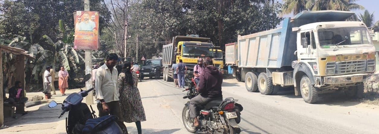 ರಸ್ತೆಯಲ್ಲಿ ಸಂಚರಿಸಲು ಭಯಇತ್ತೀಚೆಗೆ ಮಹಿಳಾ ಪೇದೆಯೊಬ್ಬರು ಸ್ಕೂಟಿಯಲ್ಲಿ ಹೋಗುತ್ತಿದ್ದಾಗ ಟಿಪ್ಪರ್ ನಿಂದ ಕಲ್ಲು ಬಿದ್ದು ಆಸ್ಪತ್ರೆ ಪಾಲಾಗಿದ್ದರು. ಶಾಲಾ-ಕಾಲೇಜು ಹಾಗೂ ಹೆಚ್ಚು ಜನಸಂದಣಿ ಇರುವ ಪ್ರದೇಶಗಳಲ್ಲಿ ಕರ್ಕಶ ಹಾರ್ನ್ ಮಾಡುವ ಟಿಪ್ಪರ್ಗಳು ವಿದ್ಯಾರ್ಥಿಗಳಲ್ಲಿ ಭಯ ಹುಟ್ಟಿಸುತ್ತಿವೆ. ವಾಹನಗಳ ಅಬ್ಬರಕ್ಕೆ ಮಕ್ಕಳು ರಸ್ತೆಯಲ್ಲಿ ಓಡಾಡಲು ಭಯಪಡುತ್ತಿದ್ದಾರೆ. ಕೂಡಲೆ ಟಿಪ್ಪರ್ ಗಳವರು ಧೂಳು ಎಳದಂತೆ ರಸ್ತೆಗೆ ಮತ್ತು ಎಂ ಸ್ಯಾಂಡ್ ಗೆ ನೀರು ಸಿಂಪಡಿಸ ಬೇಕು. ಓವರ್ ಲೋಡ್ ಹಾಕಬಾರದು, ಅತಿಯಾದ ವೇಗದಲ್ಲಿ ಸಾಗ ಬಾರದು ಎಂದು ಒತ್ತಾಯಿಸಿದರು.