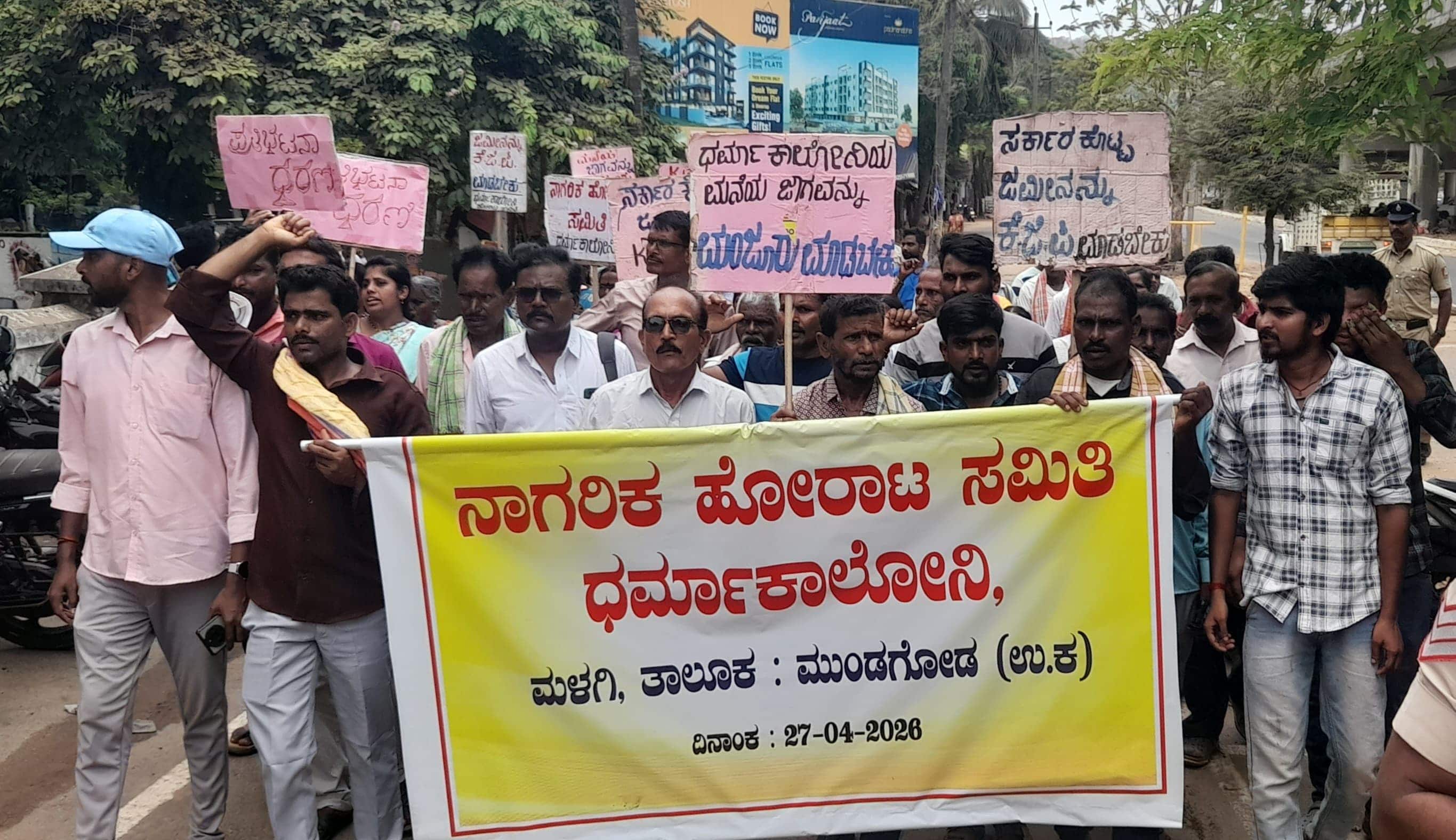 ಮುಂಡಗೋಡ ತಾಲೂಕಿನ ಮಳಗಿ ಗ್ರಾಪಂ ವ್ಯಾಪ್ತಿಯ ಧರ್ಮಾ ಕಾಲನಿಯ ನಿವಾಸಿಗಳು ತಮ್ಮ ದಶಕಗಳ ಬೇಡಿಕೆಯಾದ ಕೃಷಿ ಜಮೀನು ಮತ್ತು ಮನೆಗಳಿಗೆ ಹಕ್ಕುಪತ್ರ ನೀಡುವಂತೆ ಆಗ್ರಹಿಸಿ ಸೋಮವಾರ ಕಾರವಾರದಲ್ಲಿ ಬೃಹತ್ ಪ್ರತಿಭಟನಾ ರ್ಯಾಲಿ ನಡೆಸಿದರು. ಕಾರವಾರ ಬಸ್ ನಿಲ್ದಾಣದಿಂದ ಜಿಲ್ಲಾಧಿಕಾರಿ ಕಚೇರಿಯವರೆಗೆ ಮೆರವಣಿಗೆ ನಡೆಸಿದ ಧರ್ಮಾಕಾಲನಿ ನಾಗರಿಕರ ಹೋರಾಟ ಸಮಿತಿಯ ಪದಾಧಿಕಾರಿಗಳು ಹಾಗೂ ಗ್ರಾಮಸ್ಥರು, ಸರ್ಕಾರದ ನಿರ್ಲಕ್ಷ್ಯ ಧೋರಣೆಯ ವಿರುದ್ಧ ತೀವ್ರ ಆಕ್ರೋಶ ವ್ಯಕ್ತಪಡಿಸಿ ಜಿಲ್ಲಾಧಿಕಾರಿಗೆ ಮನವಿ ಸಲ್ಲಿಸಿದರು.ಪ್ರತಿಭಟನೆಯನ್ನುದ್ದೇಶಿಸಿ ಮಾತನಾಡಿದ ಹೋರಾಟ ಸಮಿತಿಯ ಸಂಚಾಲಕ ಗಣಪತಿ ಹೆಗಡೆ, 1964ರಲ್ಲಿ ಧರ್ಮಾ ಜಲಾಶಯ ನಿರ್ಮಾಣವಾದಾಗ ಮನೆ-ಮಠ ಹಾಗೂ ಭೂಮಿ ಕಳೆದುಕೊಂಡ ಕುಟುಂಬಗಳಿಗೆ ಸರ್ಕಾರವು ಜನಗೇರಿ ಮತ್ತು ವೀರಾಪುರ ಗ್ರಾಮಗಳ ಅರಣ್ಯ ಪ್ರದೇಶದಲ್ಲಿ ಪುನರ್ವಸತಿ ಕಲ್ಪಿಸಿತ್ತು. ಅಂದು ಭೂಮಿಯನ್ನು ಅಳತೆ ಮಾಡಿ ಜಂಟಿ ಪಹಣಿ ನೀಡಲಾಗಿತ್ತಲ್ಲದೆ, ಮಳಗಿ ಗ್ರಾಪಂನಿಂದ ಮನೆ ನಂಬರ್ ನೀಡಲಾಗಿತ್ತು. ಆದರೆ, ಇಂದಿನವರೆಗೂ ಕೆಜೆಪಿ ಪ್ರಕ್ರಿಯೆ ನಡೆಯದ ಕಾರಣ, ಈಗ ಅರಣ್ಯ ಇಲಾಖೆಯು ಈ ಜಮೀನು ತಮಗೆ ಸೇರಿದ್ದೆಂದು ವಾದಿಸುತ್ತಿದೆ. ಇಲಾಖೆಯ ಈ ಕ್ರಮದಿಂದ ನಿರಾಶ್ರಿತರು ಆತಂಕಕ್ಕೊಳಗಾಗಿದ್ದಾರೆ ಎಂದು ವಿವರಿಸಿದರು.ಕಂದಾಯ ಇಲಾಖೆ ಹಾಗೂ ಜನಪ್ರತಿನಿಧಿಗಳ ಗಮನಕ್ಕೆ ಹಲವು ಬಾರಿ ತಂದರೂ ಯಾವುದೇ ಪ್ರಯೋಜನವಾಗಿಲ್ಲ ಎಂದು ದೂರಿದ ಪ್ರತಿಭಟನಾಕಾರರು, ಕೂಡಲೇ ಜಂಟಿ ಪಹಣಿ ಪದ್ಧತಿಯನ್ನು ರದ್ದುಗೊಳಿಸಿ, ಪ್ರತಿಯೊಬ್ಬ ರೈತನ ಹೆಸರಿಗೆ ಪ್ರತ್ಯೇಕ ಪಹಣಿ ನೀಡಬೇಕು ಎಂದು ಒತ್ತಾಯಿಸಿದರು. ಅಲ್ಲದೆ, ಎಲ್ಲಾ ನಿವಾಸಿಗಳಿಗೆ ಅಧಿಕೃತ ನಿವೇಶನ ಹಕ್ಕುಪತ್ರ ವಿತರಿಸಲು ಜಿಲ್ಲಾಡಳಿತವು ತಕ್ಷಣವೇ ಸರ್ವೆ ಕಾರ್ಯ ನಡೆಸಿ ನಕ್ಷೆ ತಯಾರಿಸಬೇಕು ಎಂದು ಆಗ್ರಹಿಸಿದರು.ಸಮಿತಿಯ ಸಲಹೆಗಾರ ರಾಮಾಂಜನಪ್ಪ ಆಲ್ದಳ್ಳಿ ಮಾತನಾಡಿ, ಸರ್ಕಾರಿ ವ್ಯವಸ್ಥೆಯ ಜಡ್ಡುಗಟ್ಟಿದ ಧೋರಣೆಯಿಂದಾಗಿ ಧರ್ಮಾ ಕಾಲನಿಯ ಜನರು ದಶಕಗಳಿಂದ ಮೂಲಭೂತ ಸೌಲಭ್ಯಗಳಿಂದ ವಂಚಿತರಾಗಿದ್ದಾರೆ. ನ್ಯಾಯಯುತ ಬೇಡಿಕೆಗಳು ಈಡೇರುವವರೆಗೂ ನಮ್ಮ ಸಂಘಟಿತ ಹೋರಾಟ ಮುಂದುವರಿಯಲಿದೆ. ಈ ಹೋರಾಟವು ಜಿಲ್ಲೆಯ ಇತರ ರೈತ ಮತ್ತು ಕಾರ್ಮಿಕರ ಹೋರಾಟಗಳಿಗೆ ಮಾದರಿಯಾಗಲಿದೆ ಎಂದರು.ಪ್ರತಿಭಟನಾಕಾರರಿಂದ ಮನವಿ ಸ್ವೀಕರಿಸಿದ ಜಿಲ್ಲಾಧಿಕಾರಿ ಕೆ.ಲಕ್ಷ್ಮಿಪ್ರಿಯಾ, ನಿರಾಶ್ರಿತರ ಬೇಡಿಕೆ ನ್ಯಾಯಯುತವಾಗಿದ್ದು, ಇವುಗಳನ್ನು ಗಂಭೀರವಾಗಿ ಪರಿಗಣಿಸಲಾಗುವುದು. ಅರಣ್ಯ ಇಲಾಖೆ ಮತ್ತು ಕಂದಾಯ ಇಲಾಖೆಯ ಅಧಿಕಾರಿಗಳೊಂದಿಗೆ ಸಮನ್ವಯ ಸಾಧಿಸಿ ಶೀಘ್ರದಲ್ಲೇ ಈ ಸಮಸ್ಯೆಗೆ ಶಾಶ್ವತ ಪರಿಹಾರ ಕಂಡುಕೊಳ್ಳುವುದಾಗಿ ಭರವಸೆ ನೀಡಿದರು.ಹೋರಾಟ ಸಮಿತಿಯ ಪ್ರಮುಖರಾದ ಜೀವನ್ ಚಕ್ರಸಾಲಿ, ದುರ್ಗಜ್ಜ, ಜಯದೇವ ನಿಲೇಕಣಿ, ವೀರೇಂದ್ರ ನಾಯ್ಕ್, ವಿನಾಯಕ್ ಎಂ. ನಾಯ್ಕ್, ಚೌಡಪ್ಪ ನಾಯ್ಕ್, ಚಂದ್ರು ಹರಿಜನ, ಆನಂದ ಲಮಾಣಿ, ಗಣೇಶ್ ನಾಯ್ಕ್, ಭವಾನಿ ಶಂಕರ್ ಎಸ್. ಗೌಡ ಸೇರಿದಂತೆ ನೂರಾರು ಗ್ರಾಮಸ್ಥರು ಪಾಲ್ಗೊಂಡಿದ್ದರು.