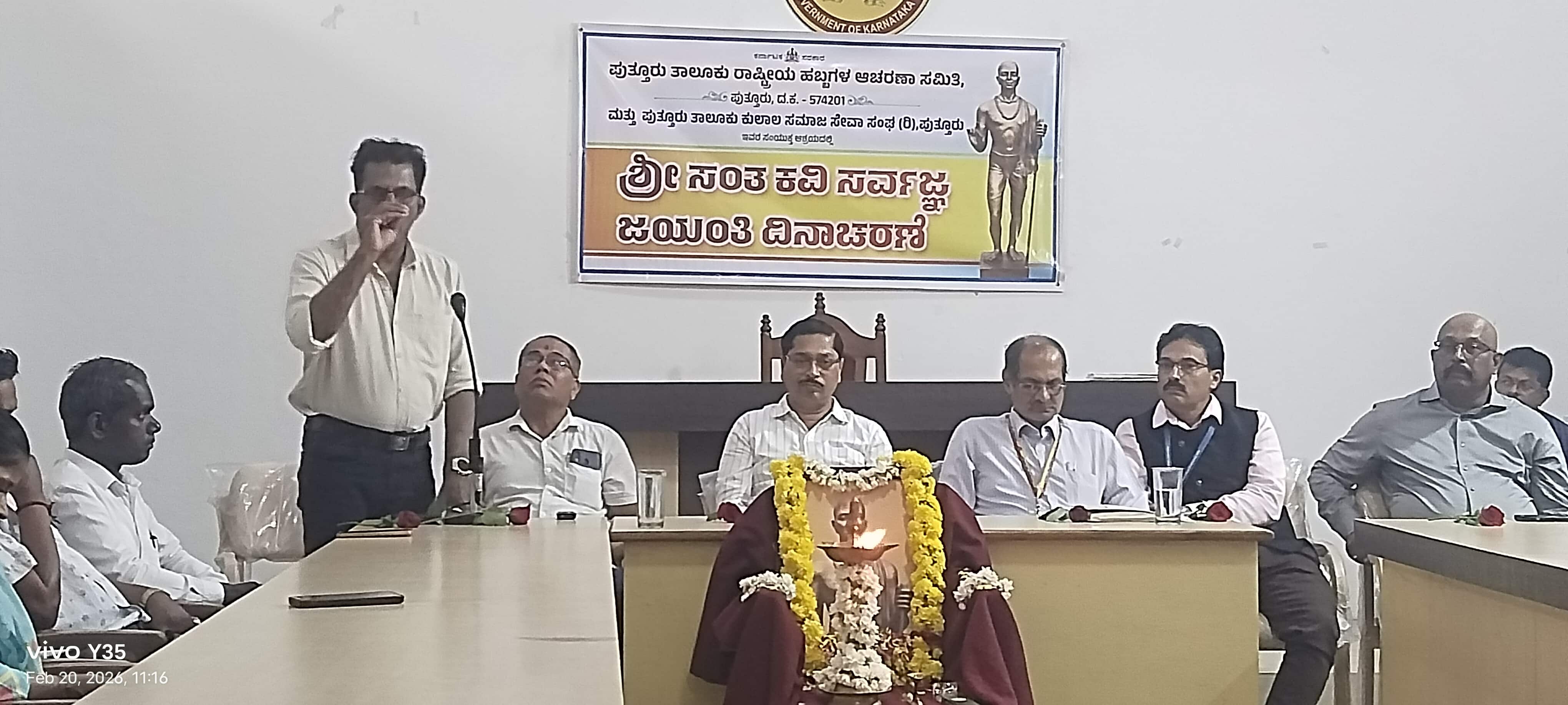 ಪುತ್ತೂರು: ಬದುಕಿನಲ್ಲಿ ಜಾತಿ ಕಂದಾಚಾರಗಳನ್ನು ದೂರ ಇಡಬೇಕಾದ ಅಗತ್ಯತೆಗಳನ್ನು ಸಮಾಜಕ್ಕೆ ತಿಳಿಸಿಕೊಟ್ಟ ಮಹಾಮೇಧಾವಿ ತತ್ವಜ್ಞಾನಿ ದಾರ್ಶನಿಕ ಸರ್ವಜ್ಞನ ಚಿಂತನೆಗಳನ್ನು ನಮ್ಮ ಬದುಕಿನಲ್ಲಿ ಅಳವಡಿಸಿಕೊಳ್ಳುವುದು ಇಂದಿನ ಪ್ರಸ್ತುತತೆ ಆಗಿದೆ. ಉತ್ತಮ ಸಮಾಜವನ್ನು ನಿರ್ಮಾಣ ಮಾಡುವ ಚಿಂತನೆಗಳು ಸರ್ವಜ್ಞ ನಮಗೆ ಕೊಟ್ಟ ದೊಡ್ಡ ಕೊಡುಗೆಯಾಗಿದೆ ಎಂದು ಪುತ್ತೂರು ತಹಸೀಲ್ದಾರ್ ಎಸ್.ಬಿ.ಕೂಡಲಗಿ ಹೇಳಿದರು. ರಾಷ್ಟ್ರೀಯ ಹಬ್ಬಗಳ ಆಚರಣಾ ಸಮಿತಿ ಹಾಗೂ ಕುಲಾಲ ಸೇವಾಸಂಘದ ಆಶ್ರಯದಲ್ಲಿ ಪುತ್ತೂರು ಆಡಳಿತ ಸೌಧದ ಸಭಾಂಗಣದಲ್ಲಿ ನಡೆದ ಸಂತ ಕವಿ ಸರ್ವಜ್ಞ ಜಯಂತಿ ದಿನಾಚರಣೆ ಉದ್ಘಾಟಿಸಿ ಅವರು ಮಾತನಾಡಿದರು.ಕಾರ್ಯಕ್ರಮದಲ್ಲಿ ನಗರ ಯೋಜನಾ ಪ್ರಾಧಿಕಾರದ ಅಧ್ಯಕ್ಷ ಅಮಳ ರಾಮಚಂದ್ರ ಅವರು ಮಾತನಾಡಿ, ಸರ್ವಜ್ಞ ಅವರ ಪ್ರತಿಯೊಂದು ತ್ರಿಪದಿಗಳೂ ಹೃದಯಕ್ಕೆ ಅತ್ಯಂತ ಸಮೀಪವಾಗಿದೆ. ಮೇಲು ಕೀಳು ಜಾತಿ ವೈಷಮ್ಯದಿಂದ ಸಮಾಜದ ಅವನತಿಯಾಗುತ್ತದೆ ಎಂಬ ಎಚ್ಚರಿಕೆಯನ್ನೂ ಅವರು ನೀಡಿದ್ದಾರೆ. ನಮ್ಮ ಬದುಕನ್ನು ಚಿಂತನೆಗೆ ಹಚ್ಚುವಂತೆ ಮಾಡಿದ ಸರ್ವಜ್ಞನ ವಚನಗಳು ಇಂದಿಗೂ ಮುಂದಿನ ಜನಾಂಗಕ್ಕೂ ಅತ್ಯಂತ ಪ್ರಸ್ತುತ. ಆದರೆ ಅವರಲ್ಲಿ ನಿಜವಾದ ಚಿಂತನೆಗಳನ್ನು ಅರಿತುಕೊಳ್ಳುವಲ್ಲಿ ಯುವಜನಾಂಗ ತಪ್ಪಿರುವುದು ನೋವಿನ ವಿಚಾರವಾಗಿದೆ ಎಂದರು.ಕಾರ್ಯಕ್ರಮದಲ್ಲಿ ಸಂಸ್ಮರಣಾ ಮಾತುಗಳನ್ನಾಡಿದ ಸಂತಫಿಲೋಮಿನಾ ಕಾಲೇಜಿನ ಪ್ರಾಧ್ಯಾಪಕ ಡಾ.ಚಂದ್ರಶೇಖರ್ ಅವರು, ದಾರ್ಶನಿಕರ ಮತ್ತು ರಾಜಾಧಿರಾಜರ ದೇದೀಪ್ಯಮಾನವಾದ ಚರಿತ್ರೆಯ ಮೂಲಕ ಭಾರತ ಜಗತ್ತಿನಲ್ಲಿಯೇ ವಿಶಿಷ್ಟಸ್ಥಾನ ಪಡೆದಿದೆ. ಕನ್ನಡದ ಕಾವ್ಯಗಳ ಜನಕನಾಗಿರುವ ಸರ್ವಜ್ಞ ಜನಸಾಮಾನ್ಯರ ಆಡುಭಾಷೆಯಲ್ಲಿ ಜಾತಿಪದ್ಧತಿ ಅನಿಷ್ಟತೆಗಳ ವಿರುದ್ಧ ಸಮರ ಸಾರಿದವರು. ಎಲ್ಲರೂ ಕಾಲಕೆಟ್ಟಿದೆ ಎಂಬ ಮಾತುಗಳನ್ನು ಆಡುತ್ತಿದ್ದಾರೆ. ಆದರೆ ಕಾಲಕೆಟ್ಟಿಲ್ಲ ಬದಲಾಗಿ ಕಾಲ ಬದಲಾಗಿದೆ. ಈ ಬದಲಾವಣೆಗೆ ನಮ್ಮನ್ನು ತೆರೆದುಕೊಳ್ಳುವ ಅಗತ್ಯತೆ ಇದೆ. ಯುವಜನತೆಗೆ ಈ ಬಗ್ಗೆ ಅರಿವು ಮೂಡಿಸುವ ಕೆಲಸ ನಡೆಯಬೇಕಾಗಿದೆ ಎಂದರು.ವೇದಿಕೆಯಲ್ಲಿ ರಾಷ್ಟ್ರೀಯ ಹಬ್ಬಗಳ ಆಚರಣಾ ಸಮಿತಿ ಸಂಚಾಲಕ ಪ್ರಭಾರ ಕ್ಷೇತ್ರ ಶಿಕ್ಷಣಾಧಿಕಾರಿ ವಿಷ್ಣುಪ್ರಸಾದ್, ಕುಲಾಲ ಸೇವಾಸಂಘದ ಅಧ್ಯಕ್ಷ ಸೇಸಪ್ಪ ಕುಲಾಲ್, ತಾಲೂಕು ಆರೋಗ್ಯಾಧಿಕಾರಿ ಡಾ.ದೀಪಕ್ ರೈ ಉಪಸ್ಥಿತರಿದ್ದರು.ಕಂದಾಯ ಇಲಾಖೆಯ ದಯಾನಂದ ಡಿ.ಟಿ ಸ್ವಾಗತಿಸಿದರು. ಉಪತಹಸೀಲ್ದಾರ್ ರವಿ ಕುಮಾರ್ ನಾಡಗೀತೆ ಹಾಡಿದರು. ಕಂದಾಯ ಇಲಾಖೆಯ ಶ್ರೀಕಲಾ ವಂದಿಸಿ ಕಾರ್ಯಕ್ರಮ ನಿರೂಪಿಸಿದರು. ಕಂದಾಯ ಇಲಾಖೆಯ ಶಿವಾನಂದ ನಾಟೇಕರ್, ರಮೇಶ್, ಜಯಪ್ರಕಾಶ್, ಸರ್ವೆ ಇಲಾಖೆಯ ಮೋಹನ್, ಪ್ರಮೋದ್ ಹಾಗೂ ಆಹಾರ ಇಲಾಖೆ ಜಿತೇಶ್, ಸಿಡಿಪಿಒ ಹರೀಶ್ ಕುಮಾರ್, ಉಪತಹಸೀಲ್ದಾರ್ ಸುಲೋಚನಾ ಮತ್ತು ವಿವಿಧ ಇಲಾಖೆಗಳ ಅಧಿಕಾರಿ, ಸಿಬ್ಬಂದಿ ಉಪಸ್ಥಿತರಿದ್ದರು.