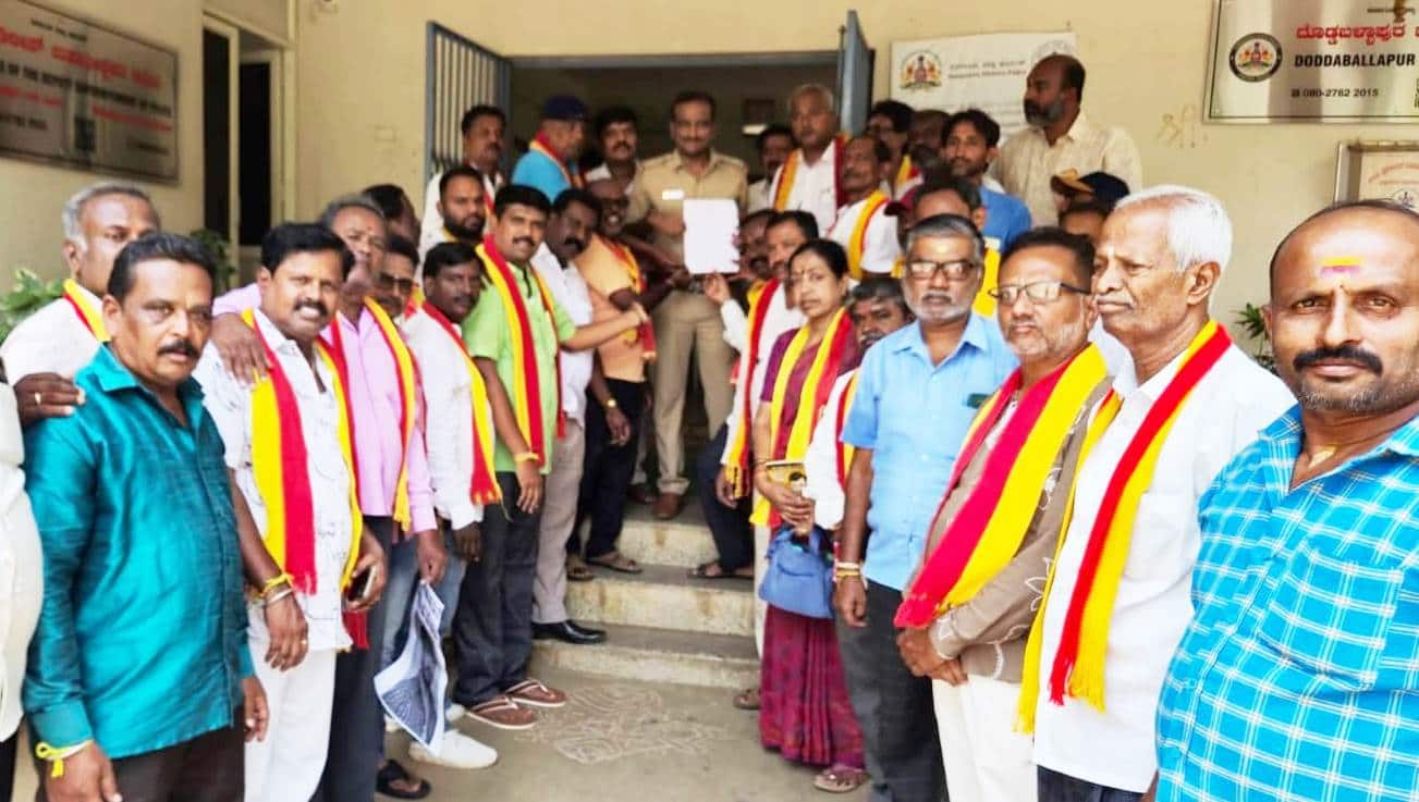 ದೊಡ್ಡಬಳ್ಳಾಪುರದಲ್ಲಿ ಡಾ.ರಾಜ್ಕುಮಾರ್ ಅಭಿಮಾನಿಗಳ ಸಂಘ, ಕನ್ನಡ ಸಂಘಟನೆಗಳಿಂದ ನಟ ಚೇತನ್ ಅಹಿಂಸಾ ಆಕ್ಷೇಪಾರ್ಹ ಹೇಳಿಕೆ ಖಂಡಿಸಿ ಪ್ರತಿಭಟನೆ ನಡೆಸಿ ಪೊಲೀಸ್ ಠಾಣೆಗೆ ದೂರು ಸಲ್ಲಿಸಲಾಯಿತು.