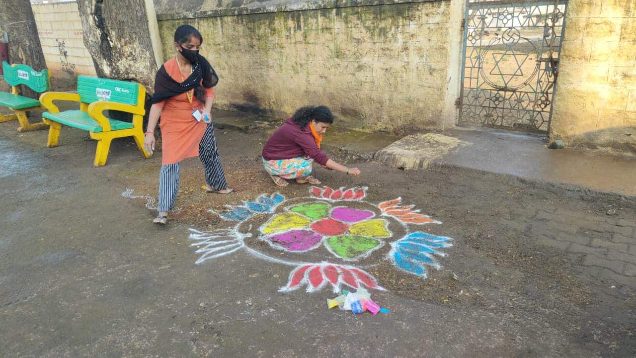 ಹೊಸಪೇಟೆ: ರಸ್ತೆ ಬದಿಯಲ್ಲಿ ಕಸ ಹಾಕುವ ಜಾಗದಲ್ಲಿ ರಂಗೋಲಿ ಬಿಡಿಸಿ, ಜನ ಕುಳಿತುಕೊಳ್ಳಲು ಆಸನದ ವ್ಯವಸ್ಥೆ ಹಾಗೂ ಹೂವಿನ ಗಿಡಗಳನ್ನು ಇಟ್ಟರೆ ಹೇಗೆ? ಕಸ ಹಾಕುವವರು ಸ್ವಚ್ಛ ಜಾಗ ನೋಡಿ ಖುಷಿಯಾಗಿ, ಕಸ ಹಾಕುವುದನ್ನು ಬಿಟ್ಟು ಬಿಡುತ್ತಾರೆ. ಇಂಥದೊಂದು ಐಡಿಯಾ ಮಾಡಿರುವ ಹೊಸಪೇಟೆ ನಗರಸಭೆ ಸಿಬ್ಬಂದಿ ಬ್ಲಾಕ್ ಸ್ಪಾಟ್ಗಳನ್ನು ಗುರುತಿಸಿ ರಂಗೋಲಿ ಬಿಡಿಸುತ್ತಿದ್ದಾರೆ.
