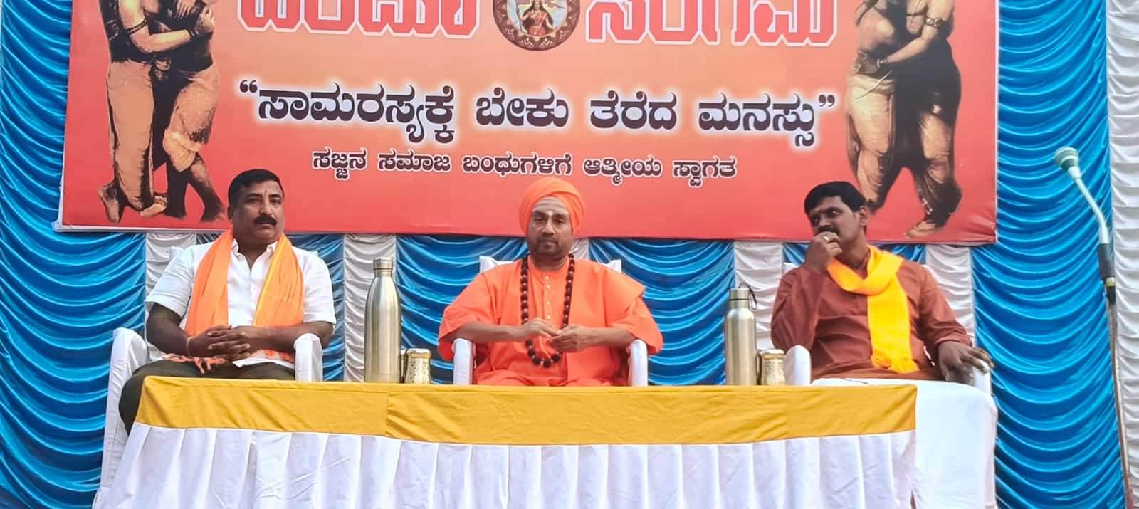 ಕಾರ್ಯಕ್ರಮದ ದಿವ್ಯ ಸಾನ್ನಿಧ್ಯ ವಹಿಸಿದ್ದ ಕುಡಿನೀರು ಕಟ್ಟೆಯ ವಿರಕ್ತ ಮಠದ ಶಿವರುದ್ರ ಸ್ವಾಮೀಜಿ ಮಾತನಾಡಿ, ಧರ್ಮೋ ರಕ್ಷತಿ ರಕ್ಷಿತಹಃ ಎಂಬ ಮಾತಿನಂತೆ ನಾವು ಧರ್ಮವನ್ನು ರಕ್ಷಿಸಿದರೆ ಅದು ನಮ್ಮನ್ನು ರಕ್ಷಿಸುತ್ತದೆ, ಸನಾತನ ಹಿಂದೂ ಧರ್ಮದ ಉಳಿವಿಗೆ ಹಿಂದೂಗಳಾದ ನಾವೆಲ್ಲಾ ಒಟ್ಟಾಗಿರಬೇಕು ಎಂದರು.ಕಾರ್ಯಕ್ರಮದ ಅಧ್ಯಕ್ಷತೆಯನ್ನು ಹಾಪ್ಕಾಮ್ಸ್ ಉಪಾಧ್ಯಕ್ಷ ಎಂ.ಎನ್.ರಾಜಶೇಖರ್ ವಹಿಸಿದ್ದರು.